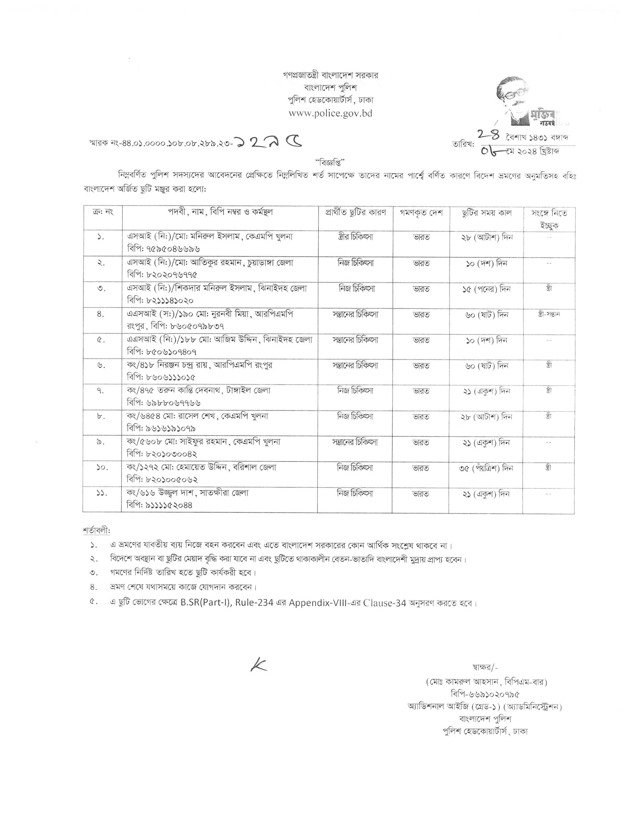বহিঃ বাংলাদেশ ছুটি, প্রজ্ঞাপন নং- ৪৭৮, তারিখঃ ০৭/০৫/২০২৪ খ্রিঃ।