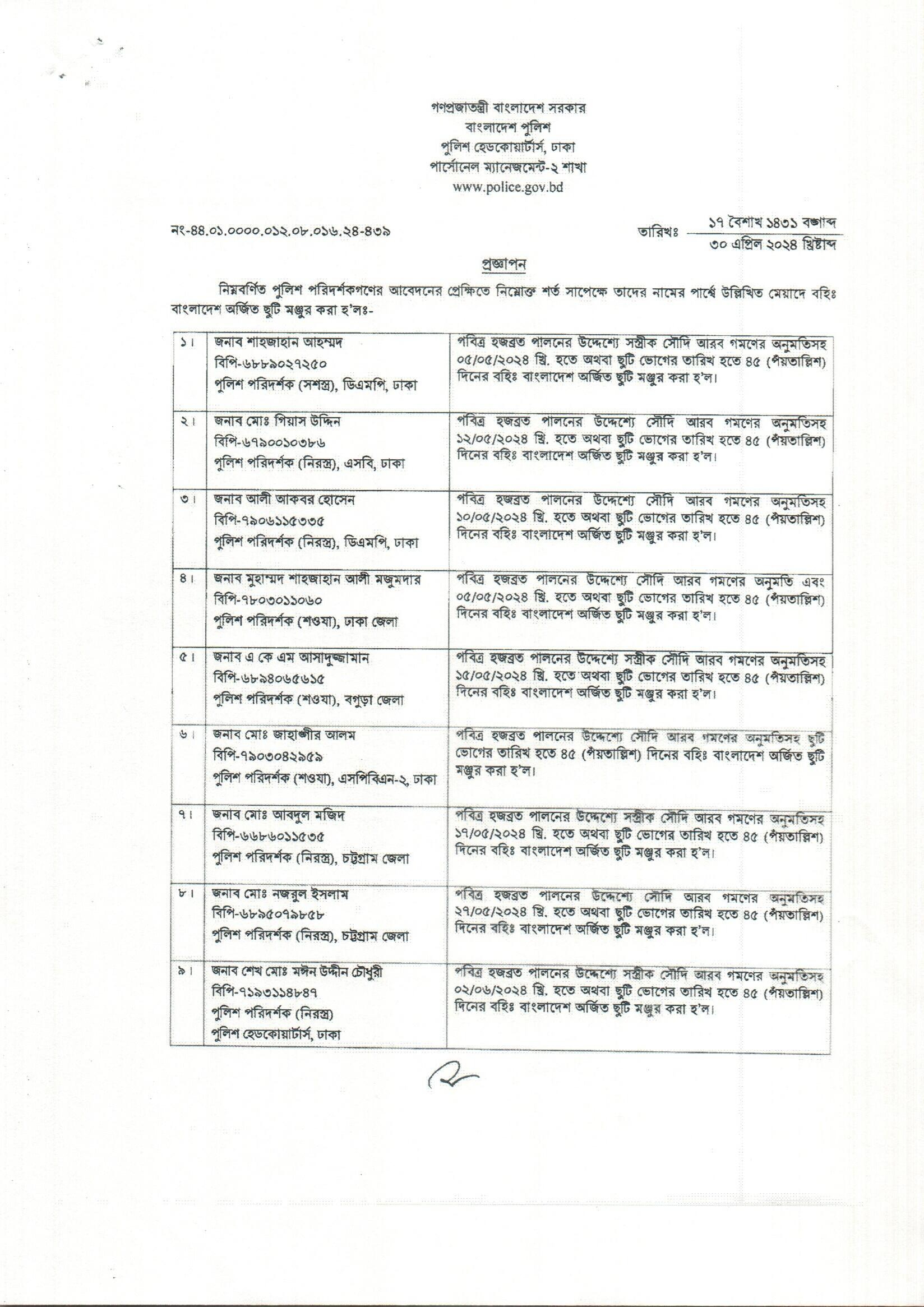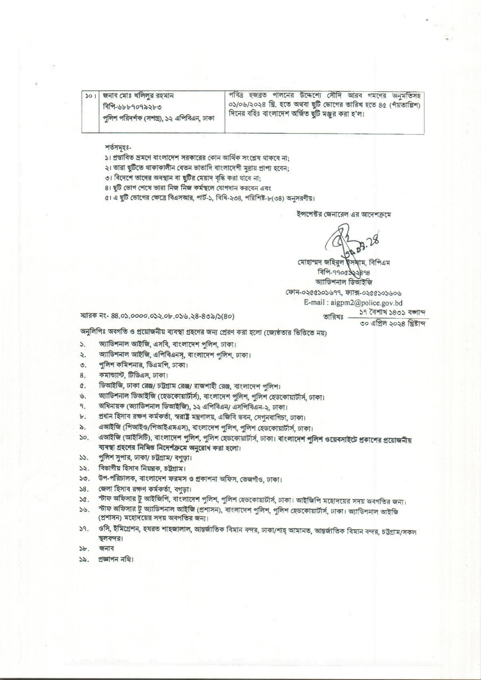 বহিঃ বাংলাদেশ ছুটি(হজ্ব), প্রজ্ঞাপন নং-৪৩৯(পৃ-২), তারিখঃ ৩০/০৪/২০২৪ খ্রিঃ।