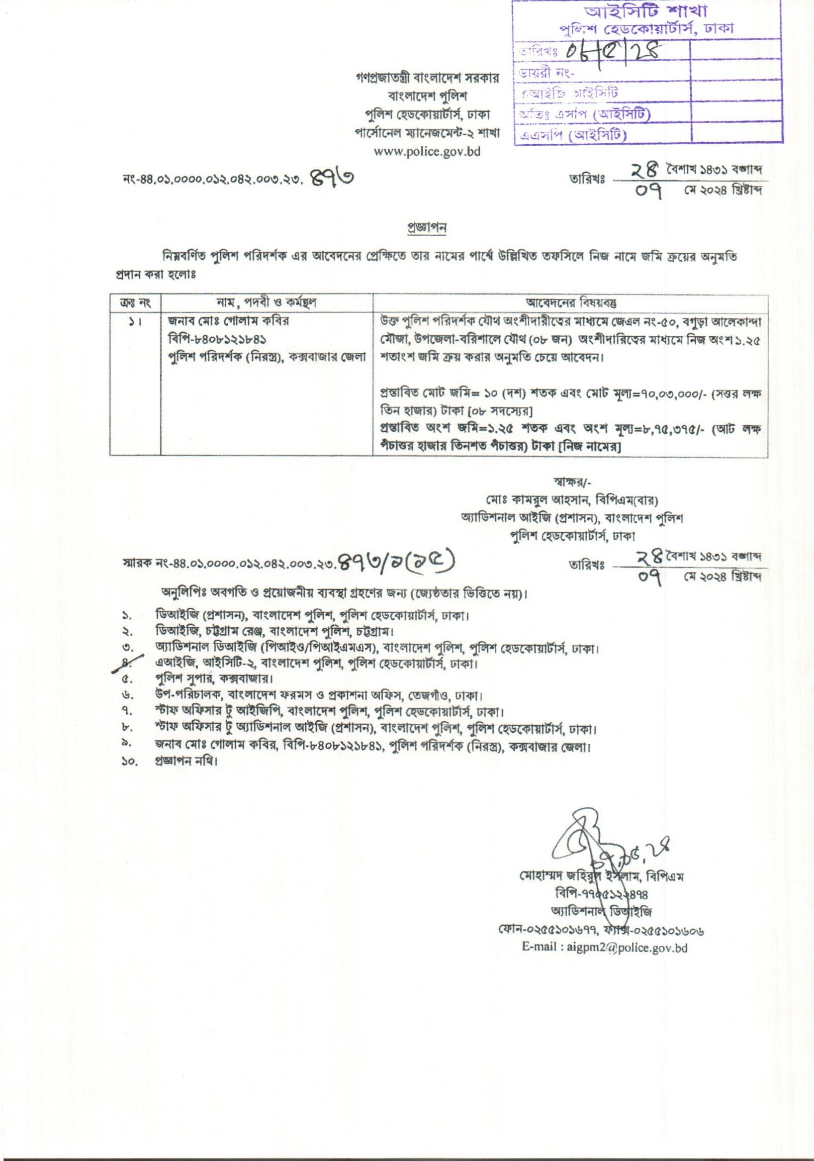 জমি ক্রয় অনুমতি, প্রজ্ঞাপন নং- ৪৭৩, তারিখঃ ০৭/০৫/২০২৪ খ্রিঃ।