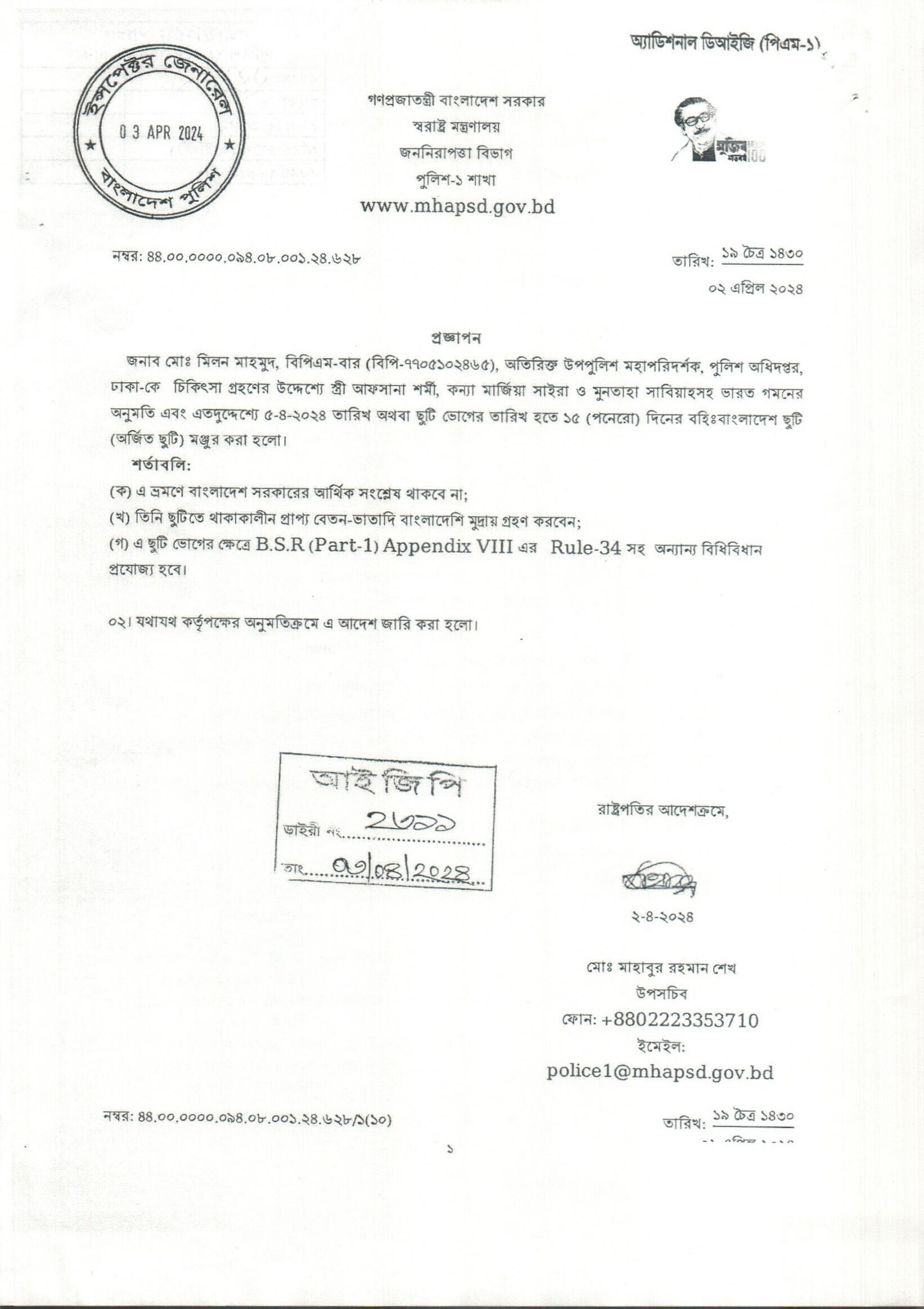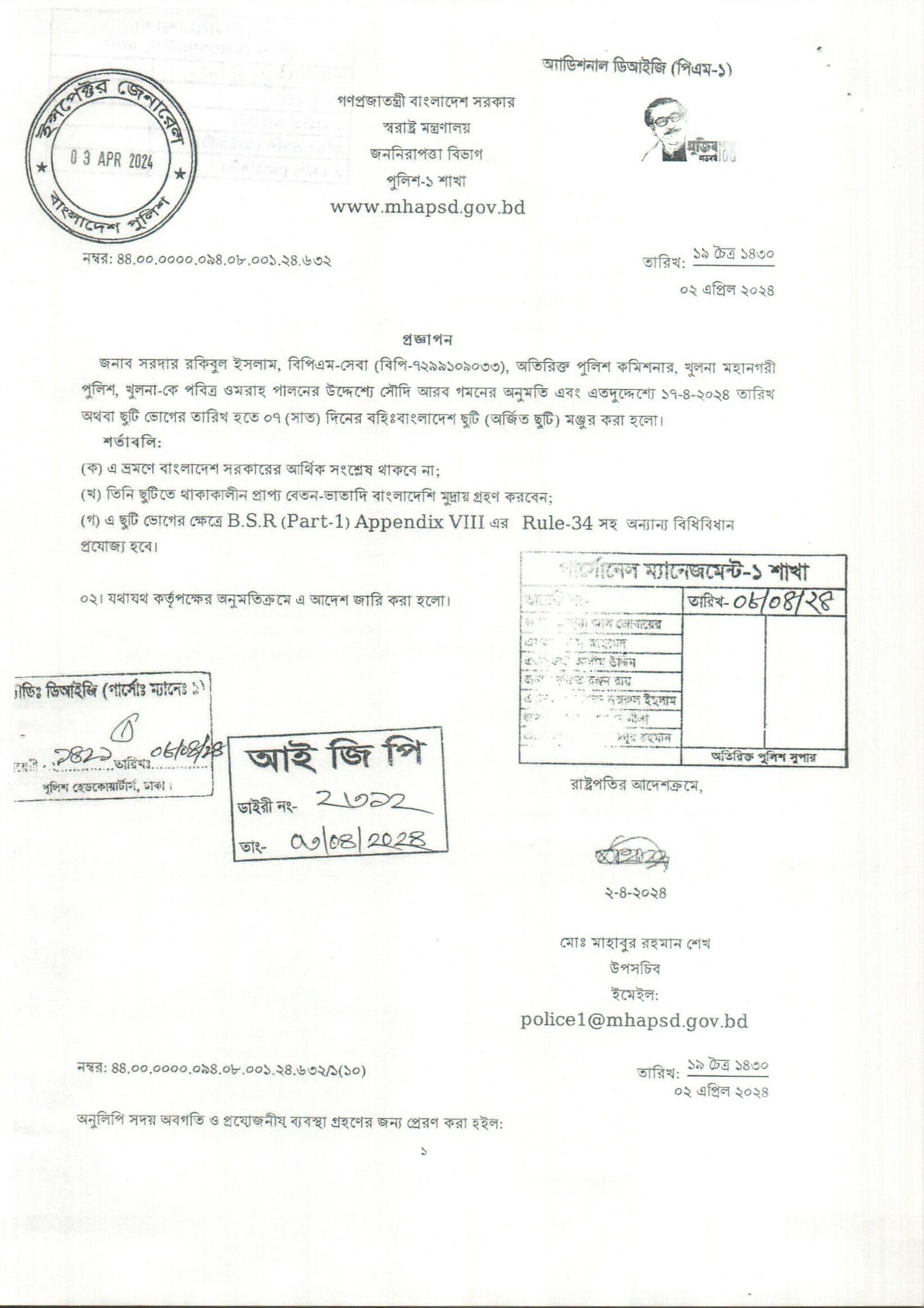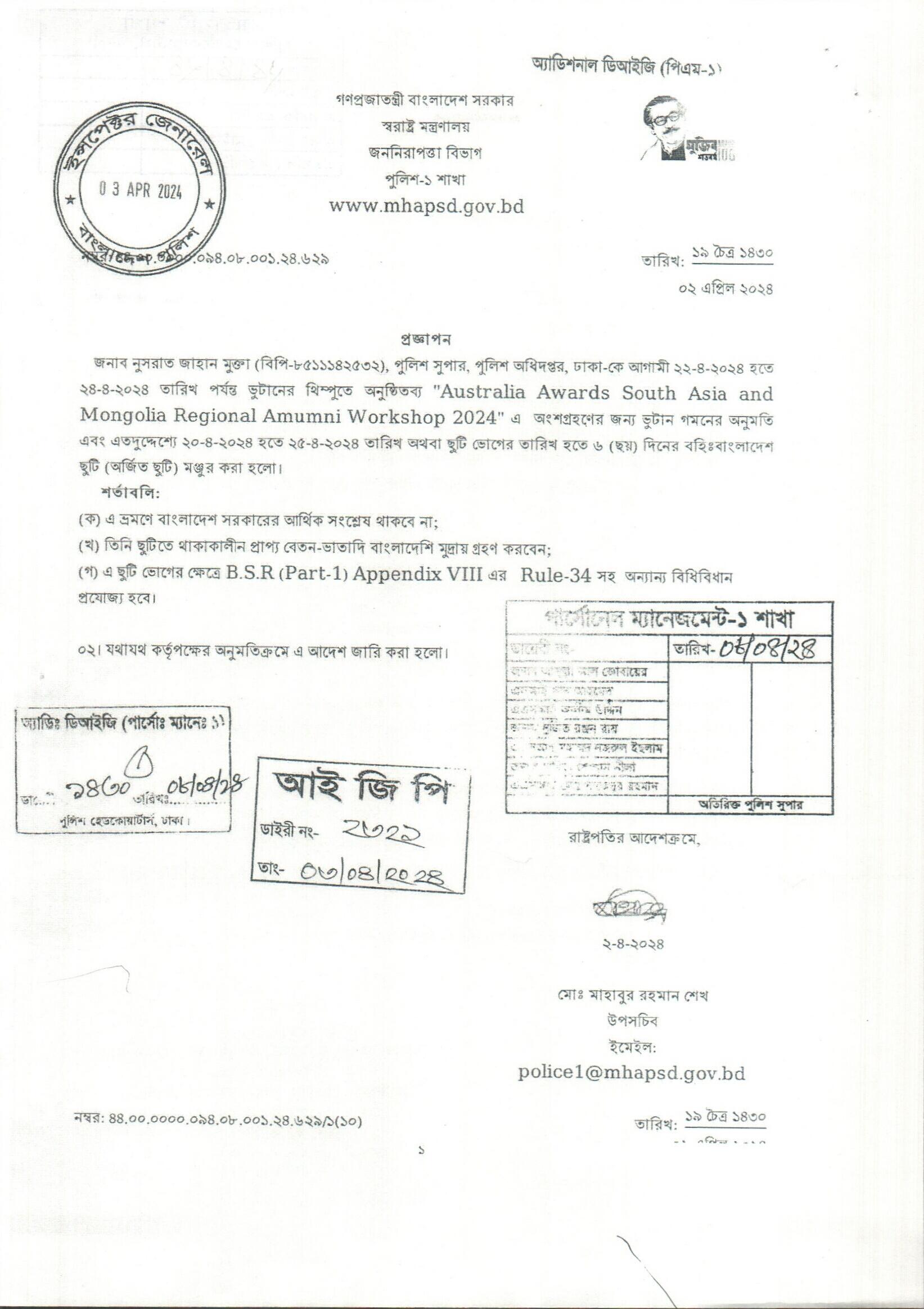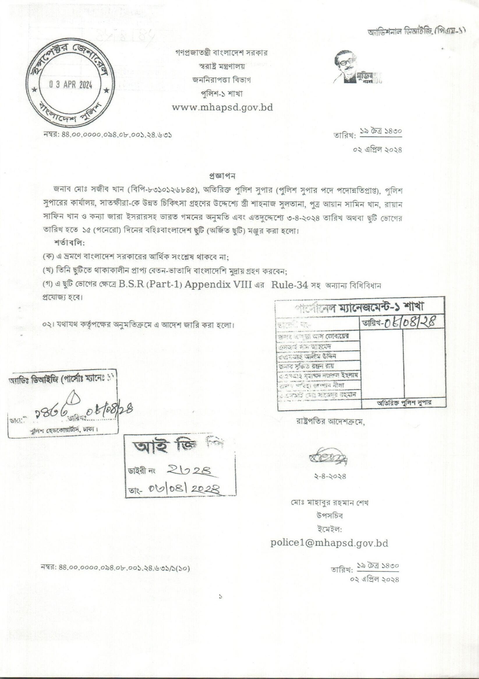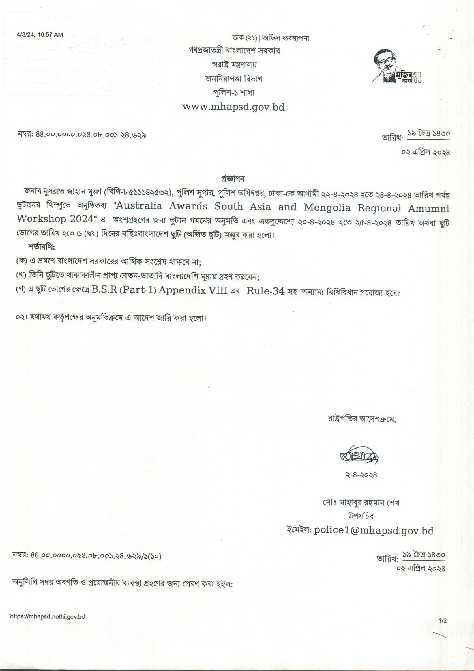 বহিঃ বাংলাদেশ ছুটি, প্রজ্ঞাপন নং- ৬৩১, তারিখঃ ০২/০৪/২০২৪ খ্রিঃ।