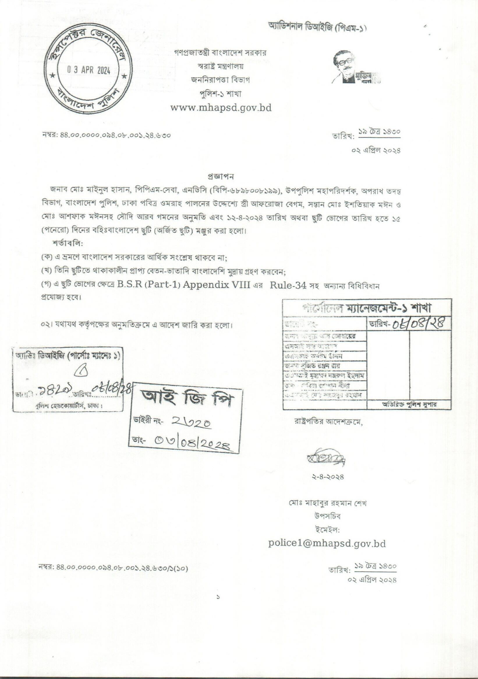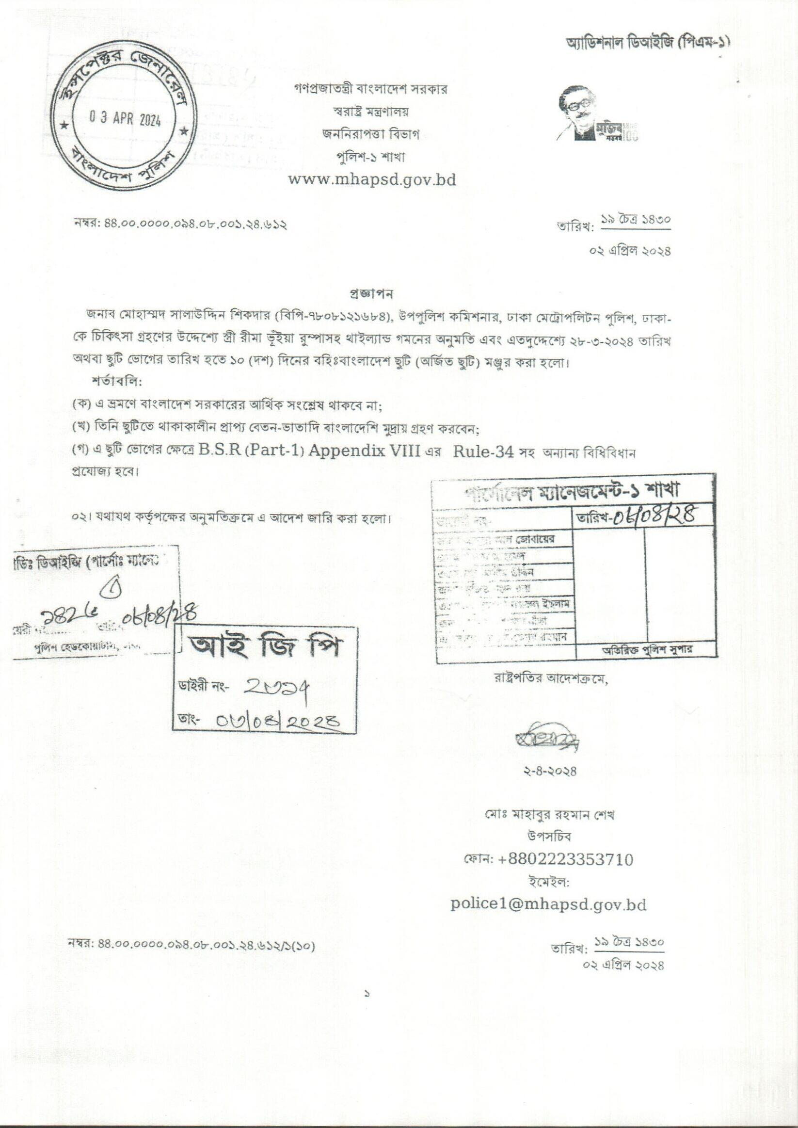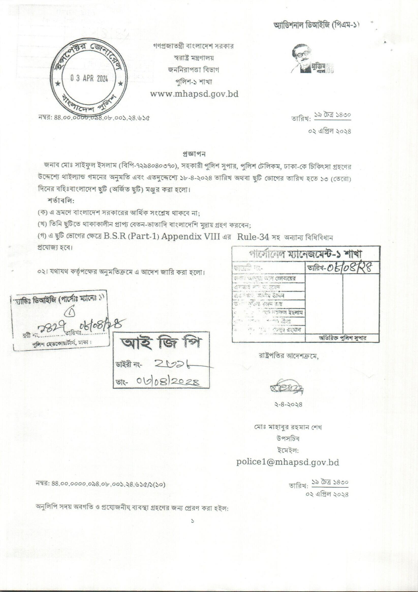 বহিঃ বাংলাদেশ ছুটি, প্রজ্ঞাপন নং- ৬৩০, তারিখঃ ০২/০৪/২০২৪ খ্রিঃ।