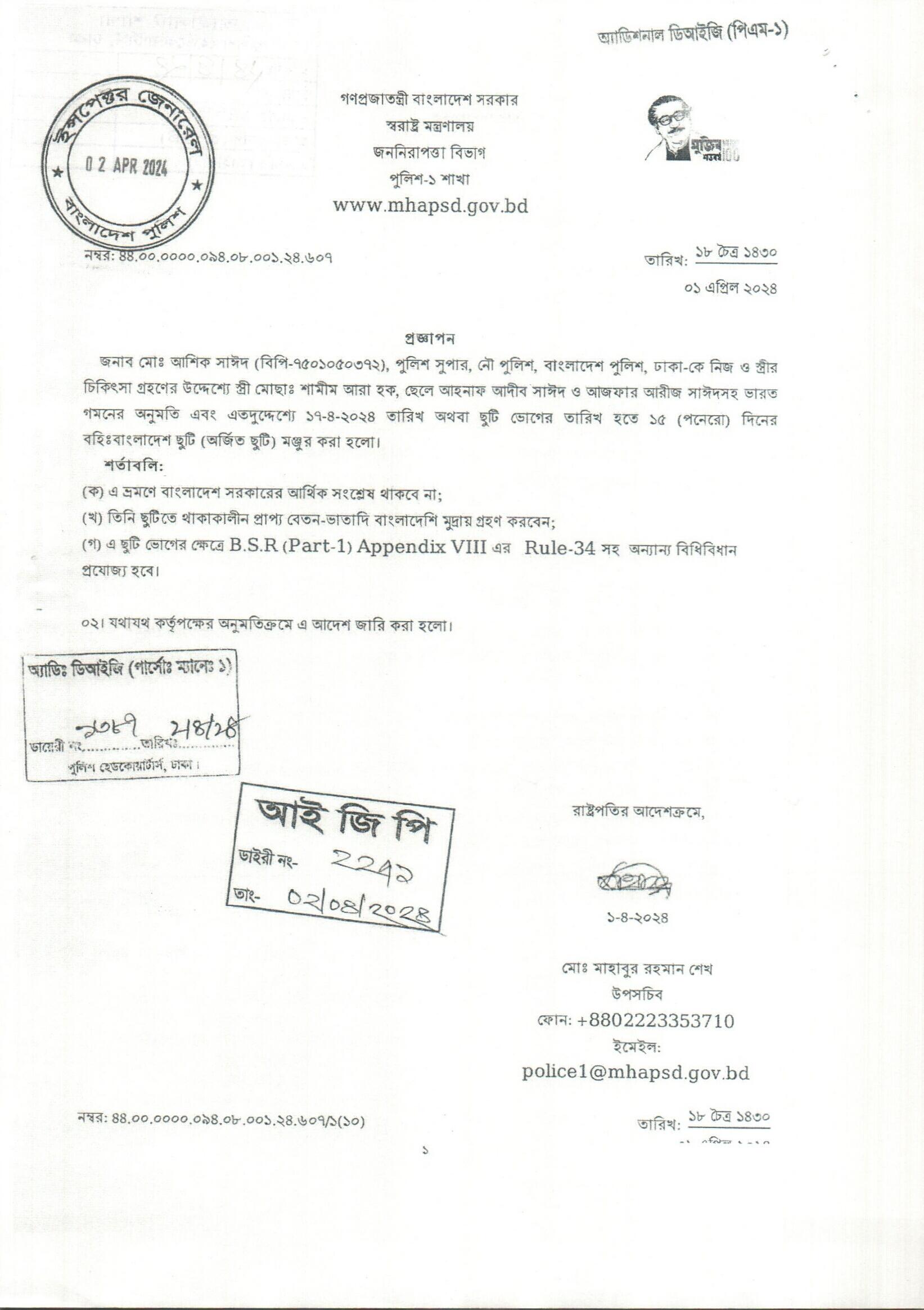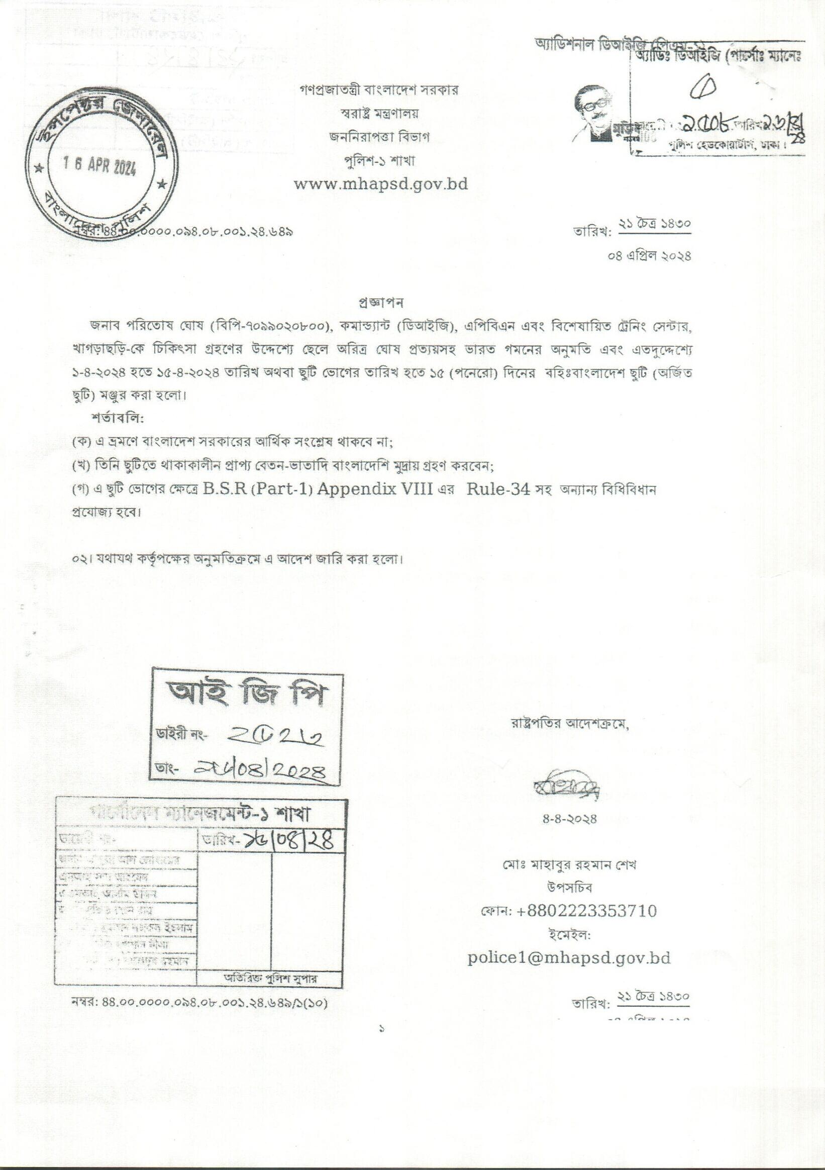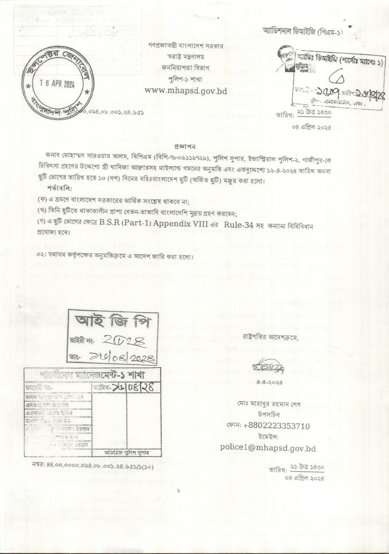 বহিঃ বাংলাদেশ ছুটি, প্রজ্ঞাপন নং- ৬৩০, তারিখঃ ০২/০৪/২০২৪ খ্রিঃ।