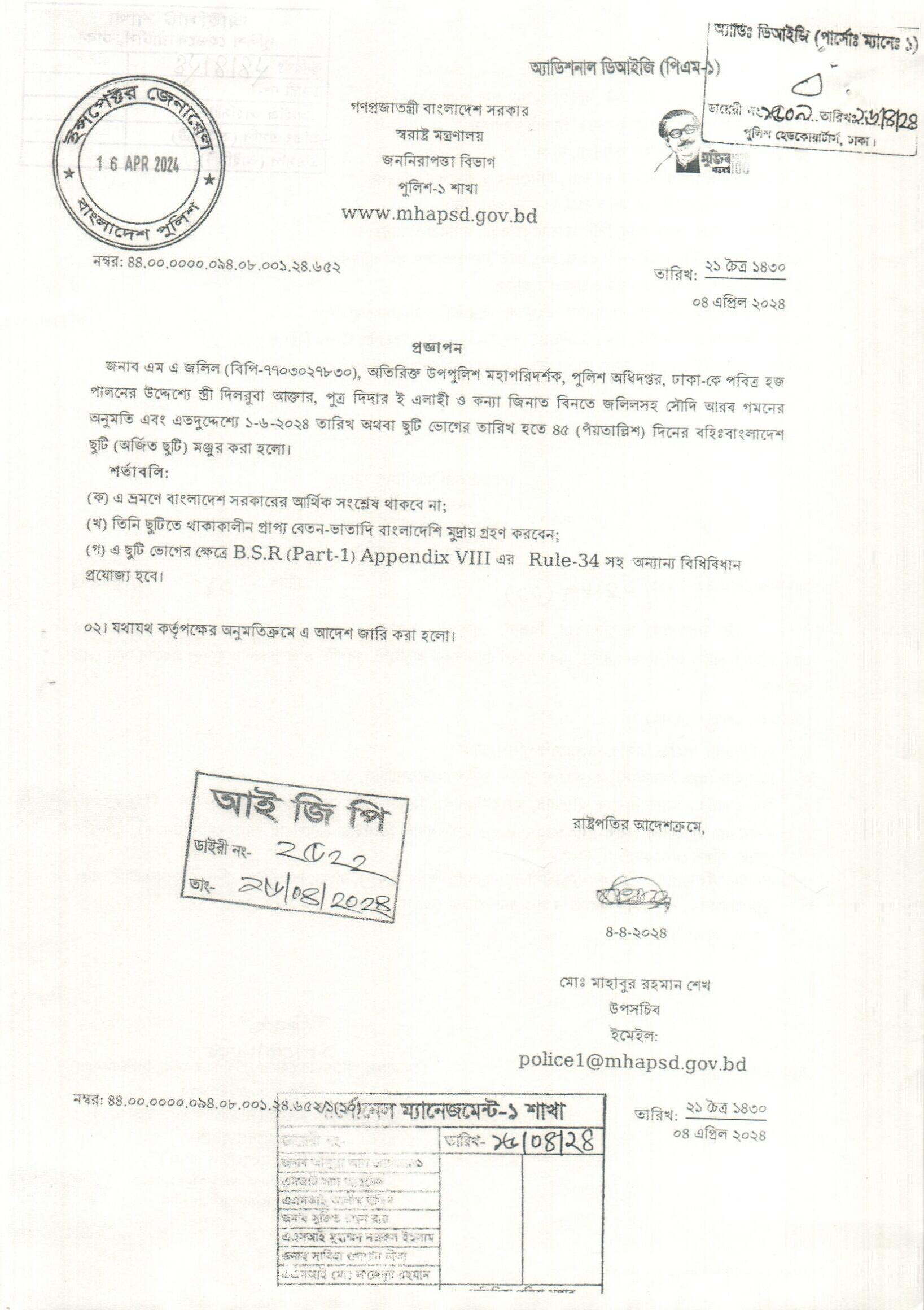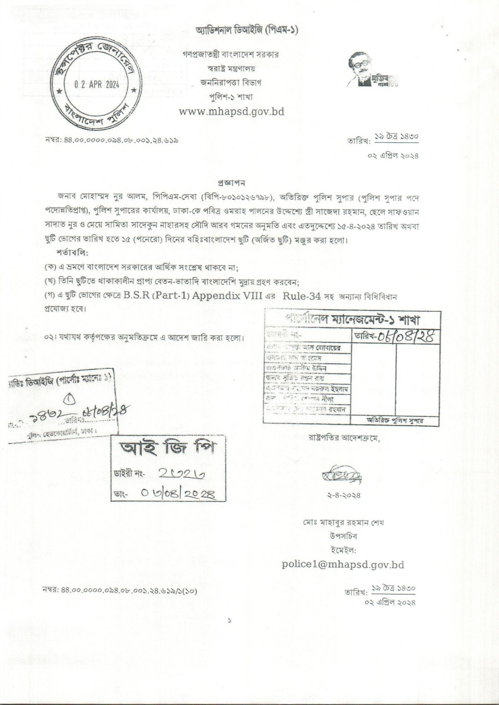 বহিঃ বাংলাদেশ ছুটি, প্রজ্ঞাপন নং- ৬০৮, তারিখঃ ০১/০৪/২০২৪ খ্রিঃ।