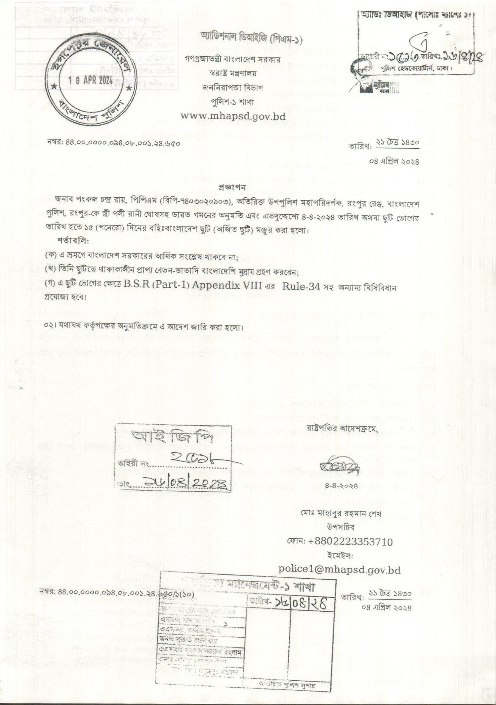 বহিঃ বাংলাদেশ ছুটি, প্রজ্ঞাপন নং- ৬৫০, তারিখঃ ০৪/০৪/২০২৪ খ্রিঃ।