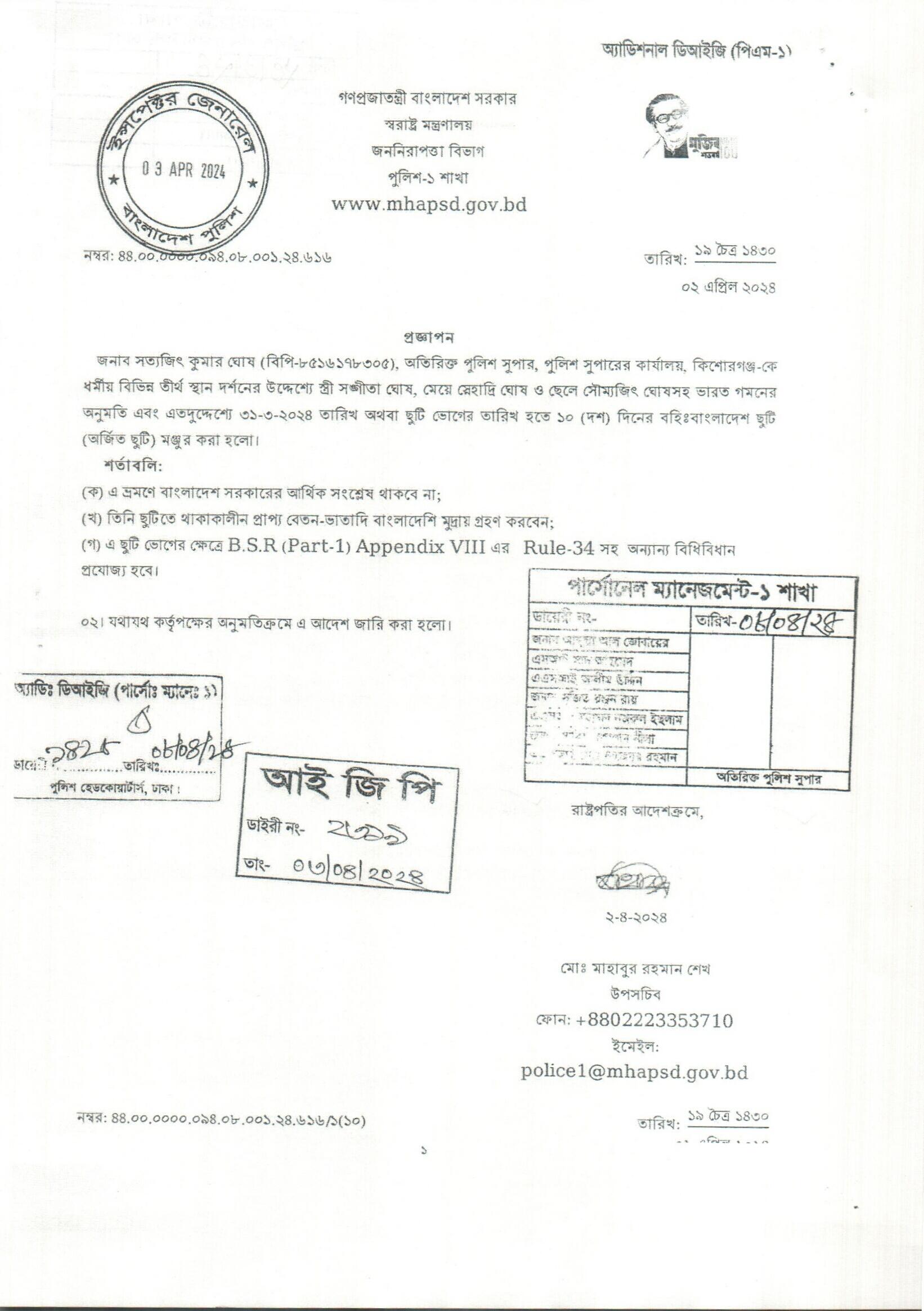 বহিঃ বাংলাদেশ ছুটি, প্রজ্ঞাপন নং- ৬১৬, তারিখঃ ০২/০৪/২০২৪ খ্রিঃ।