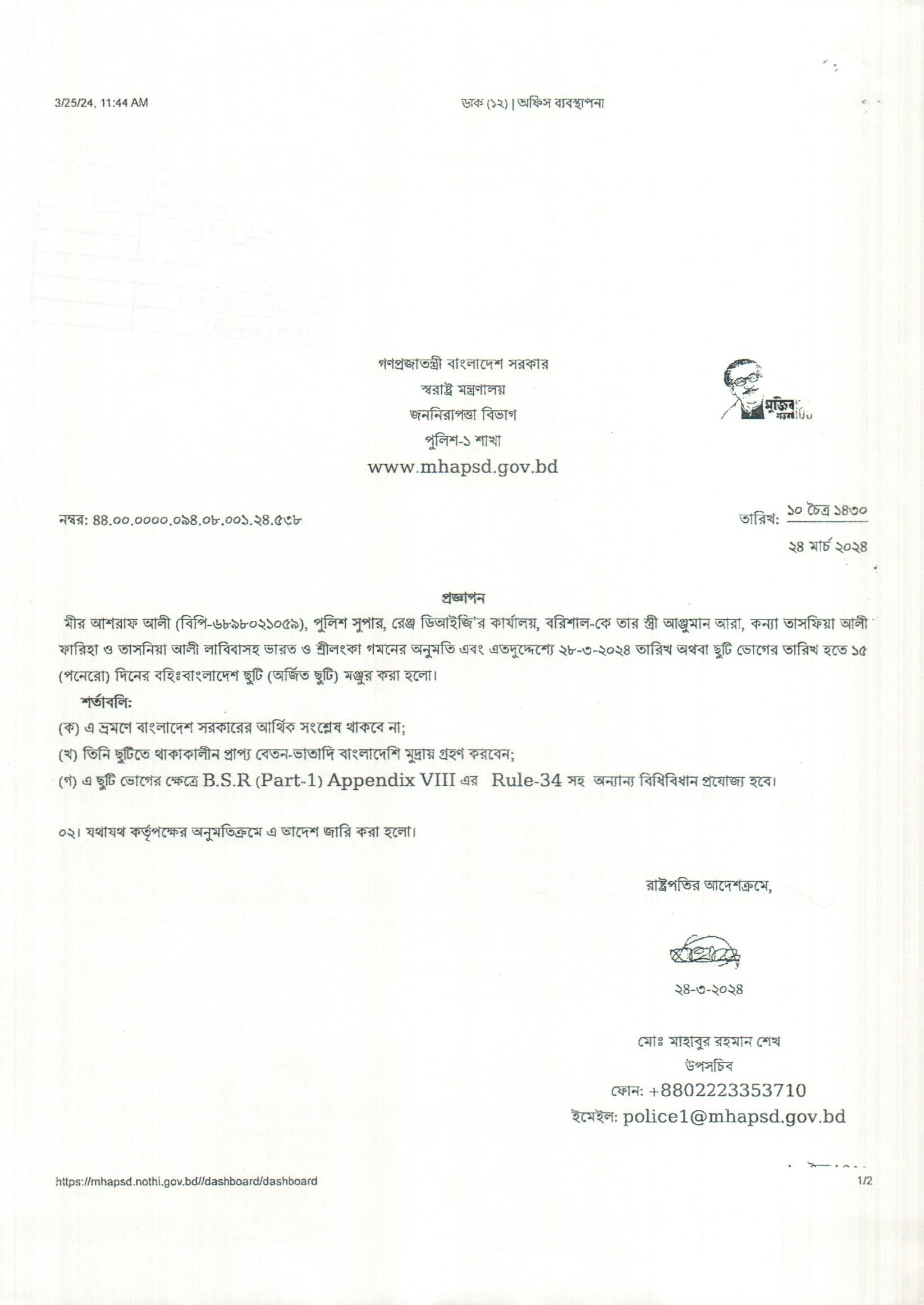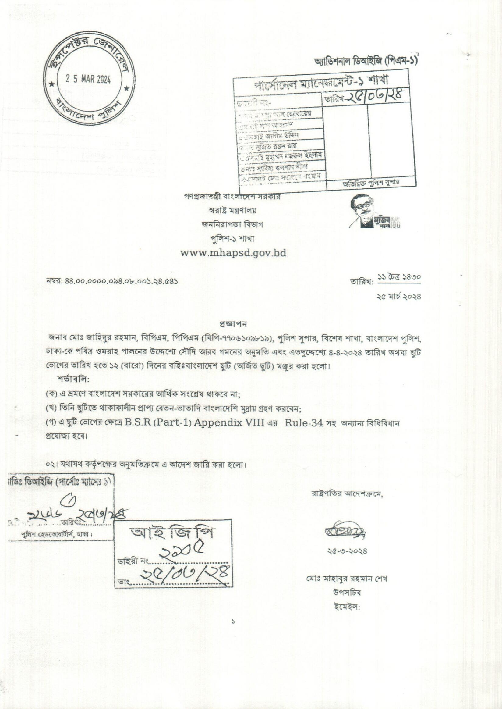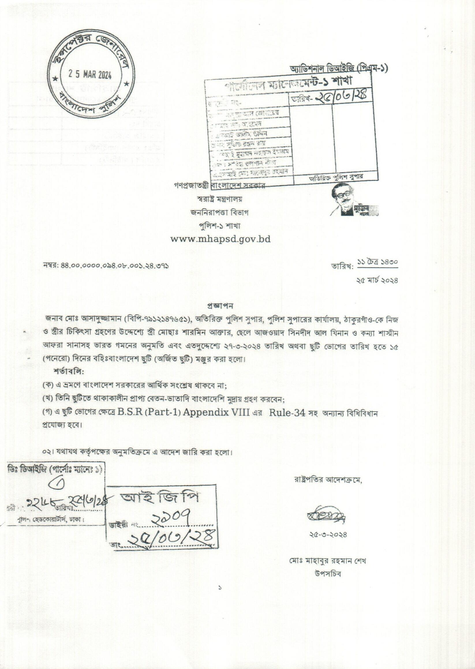 বহিঃ বাংলাদেশ ছুটি, প্রজ্ঞাপন নং- ৫৪১, তারিখঃ ২৫/০৩/২০২৪ খ্রিঃ।