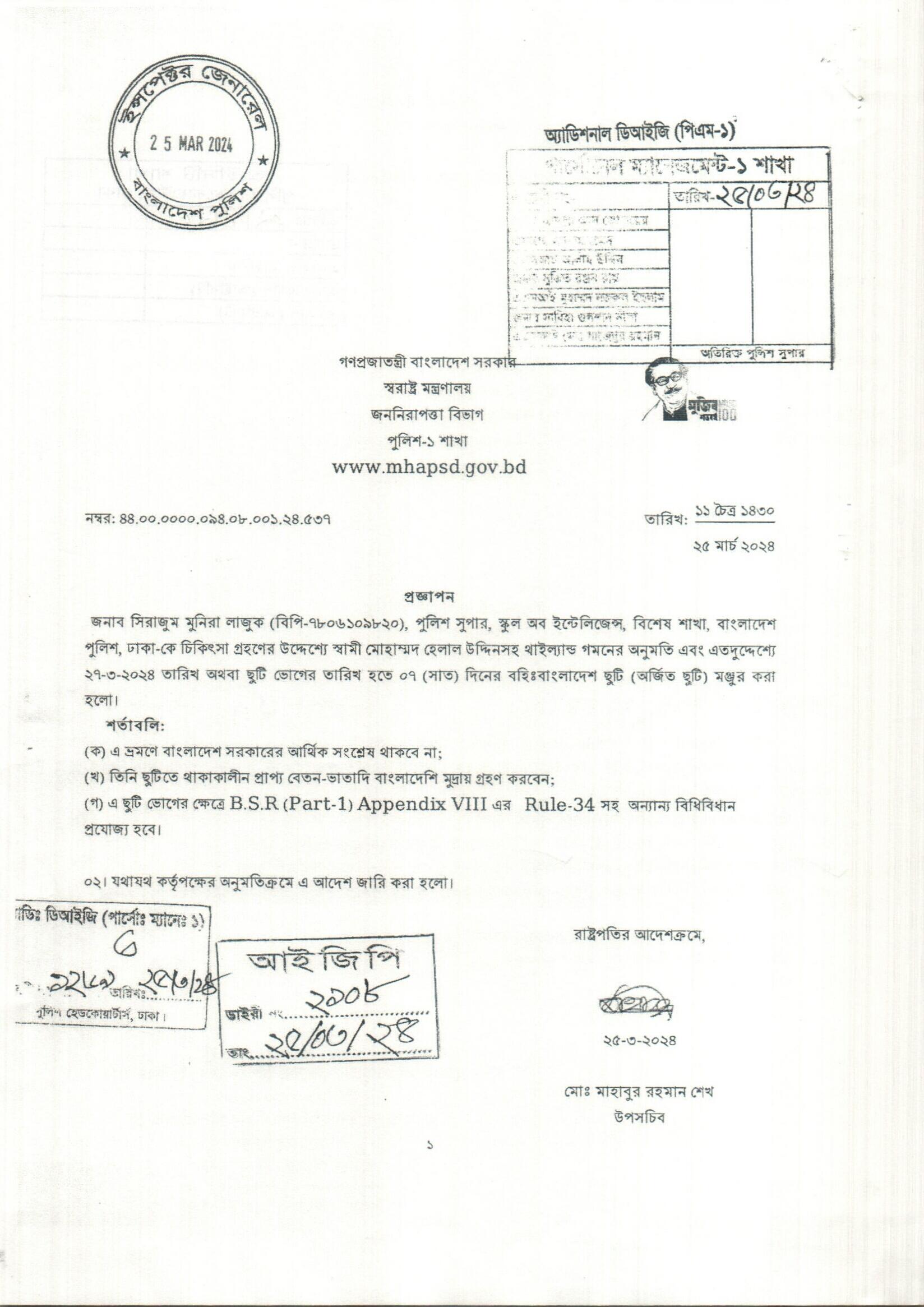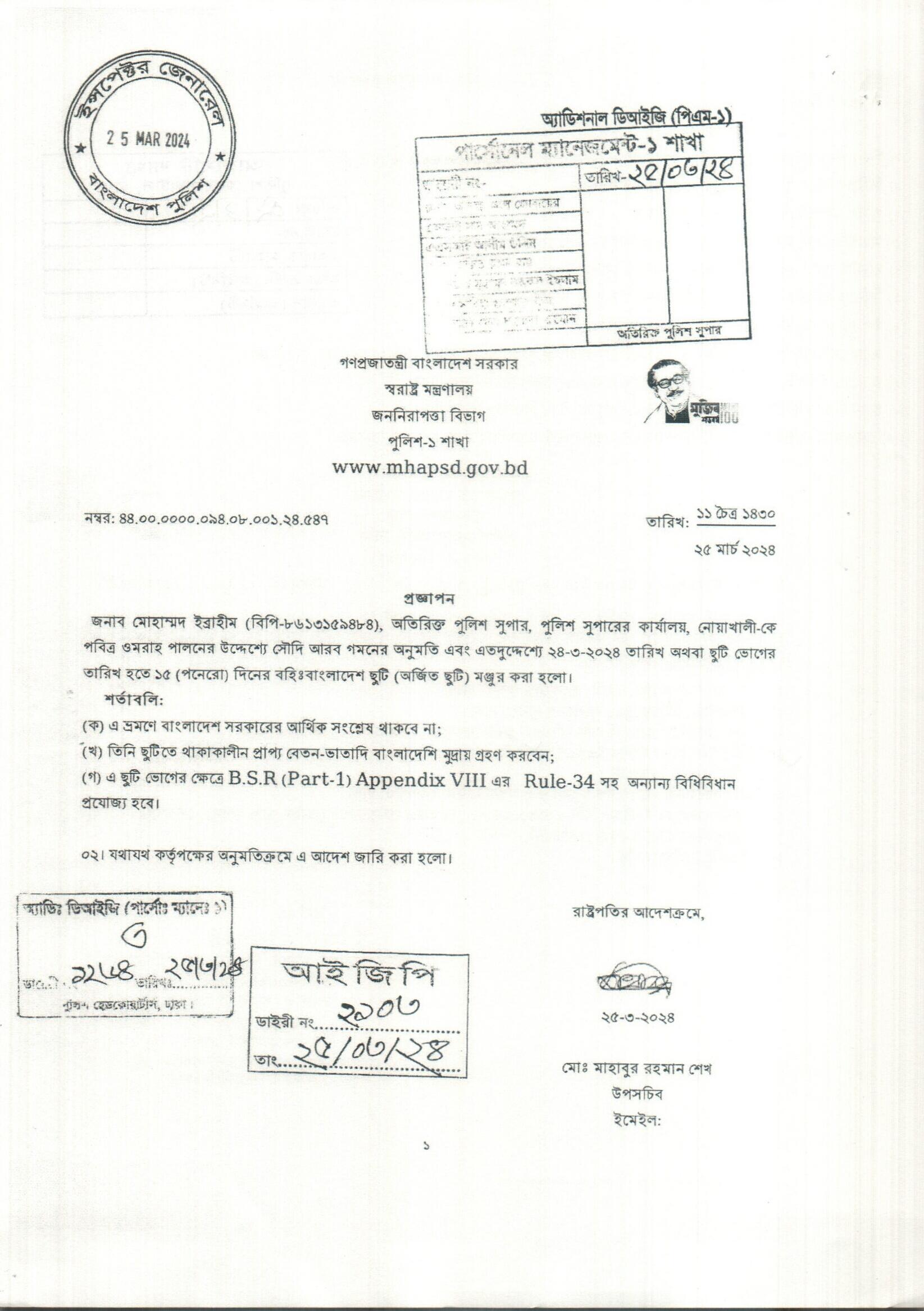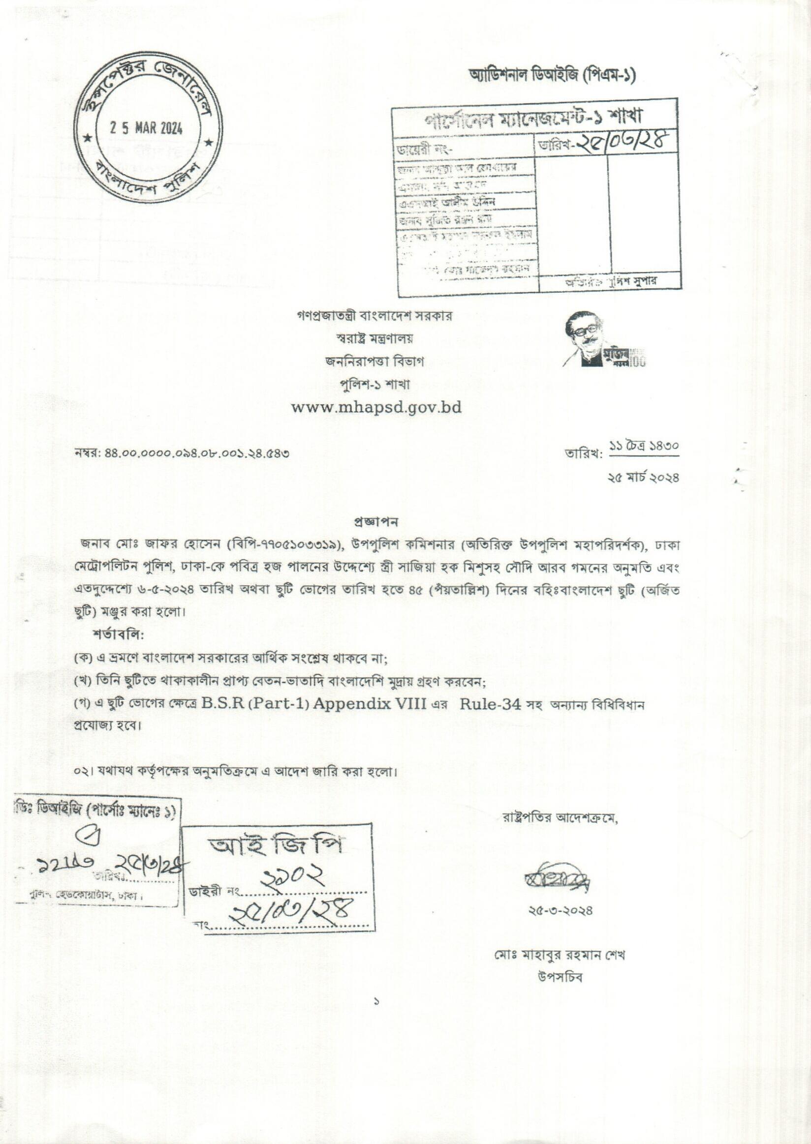 বহিঃ বাংলাদেশ ছুটি, প্রজ্ঞাপন নং- ৫৪১, তারিখঃ ২৫/০৩/২০২৪ খ্রিঃ।