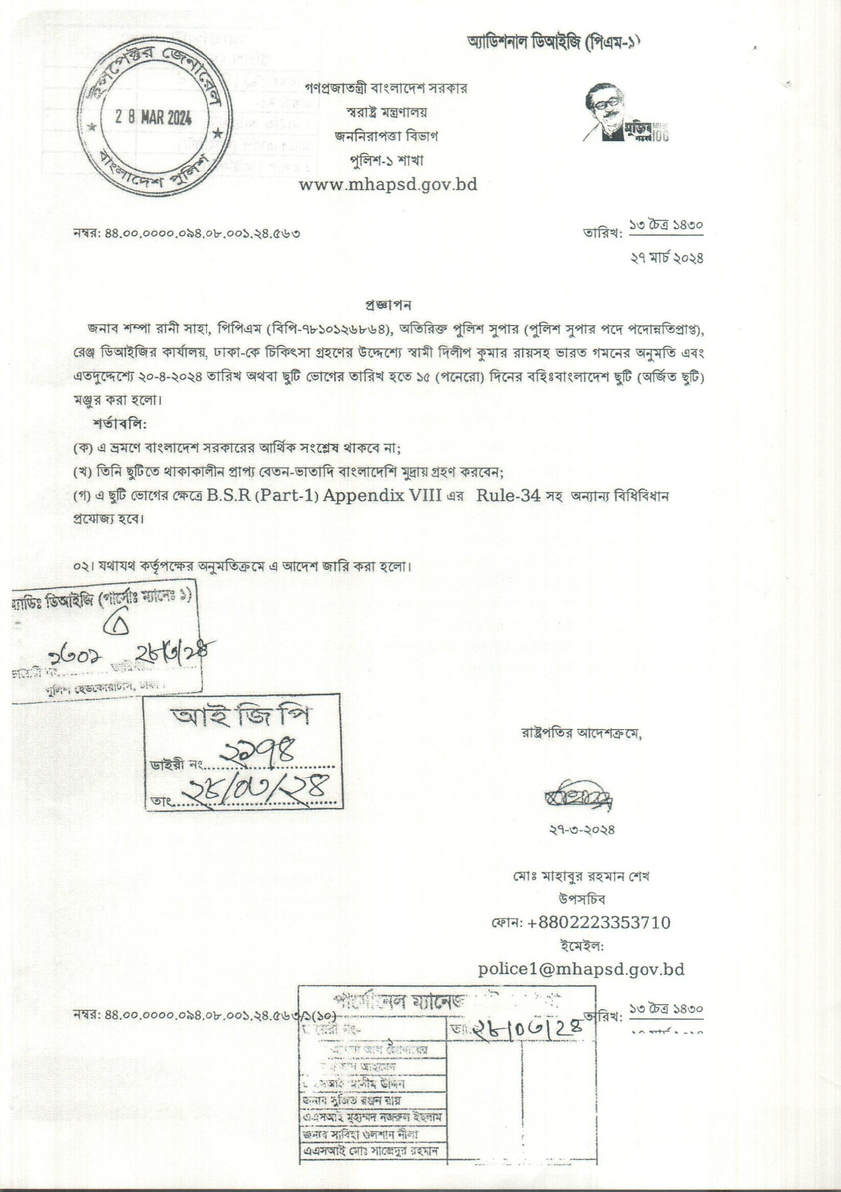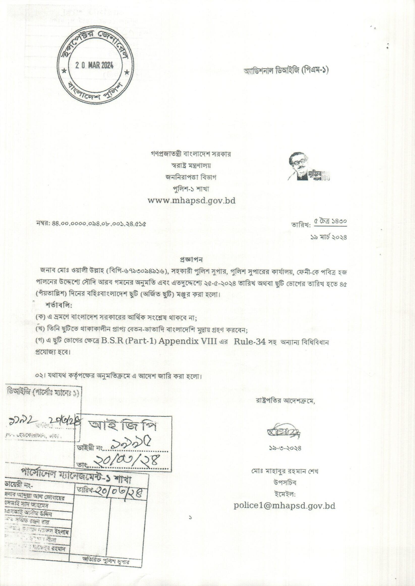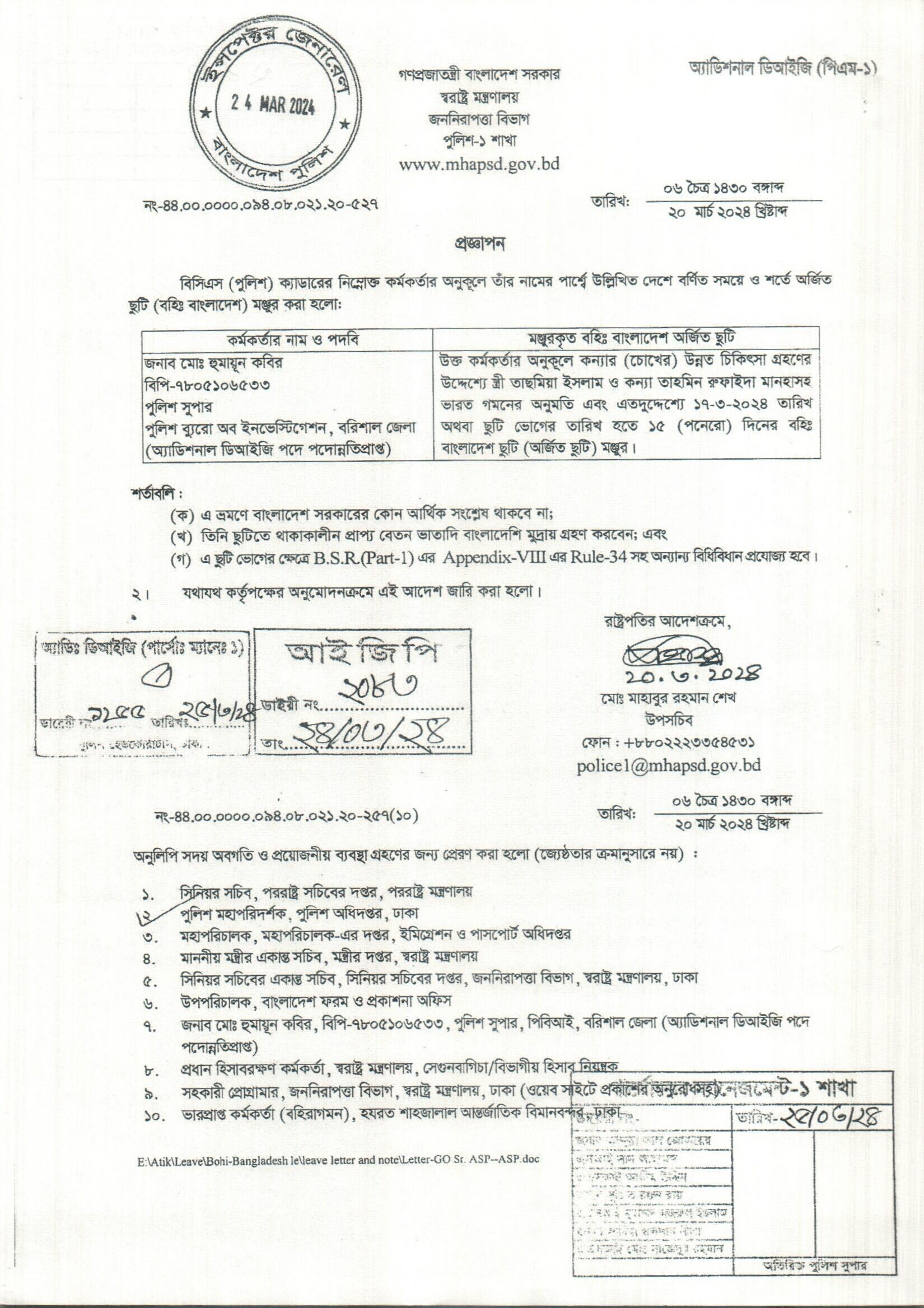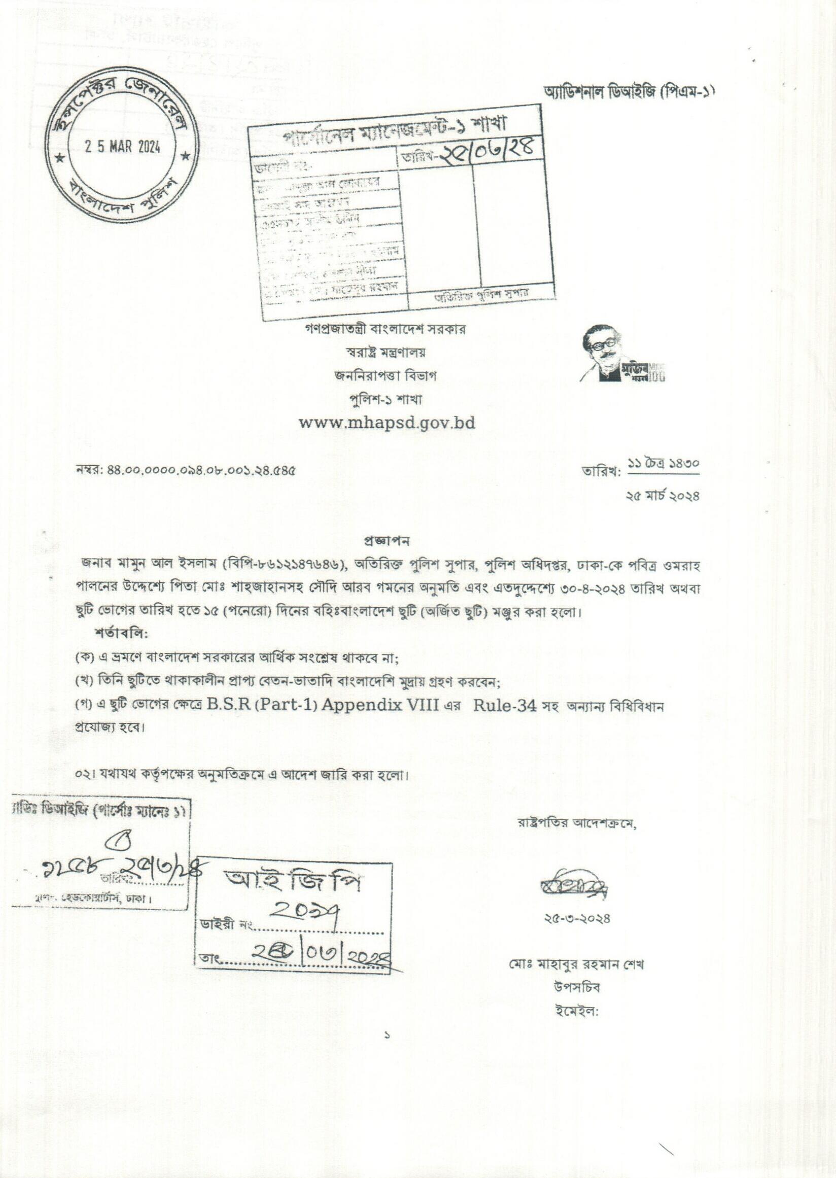 বহিঃ বাংলাদেশ ছুটি, প্রজ্ঞাপন নং- ৫৪৫, তারিখঃ ২৫/০৩/২০২৪ খ্রিঃ।