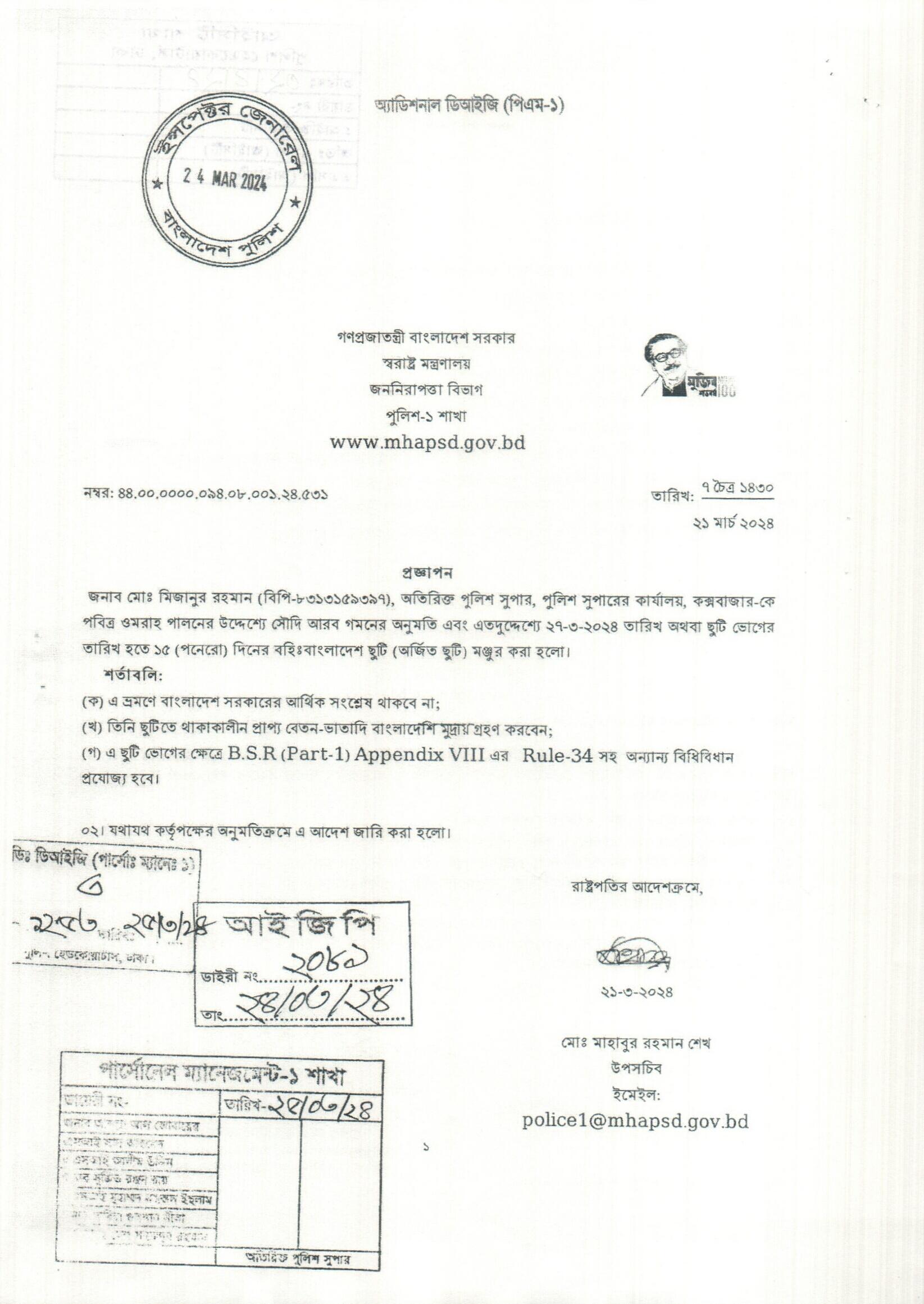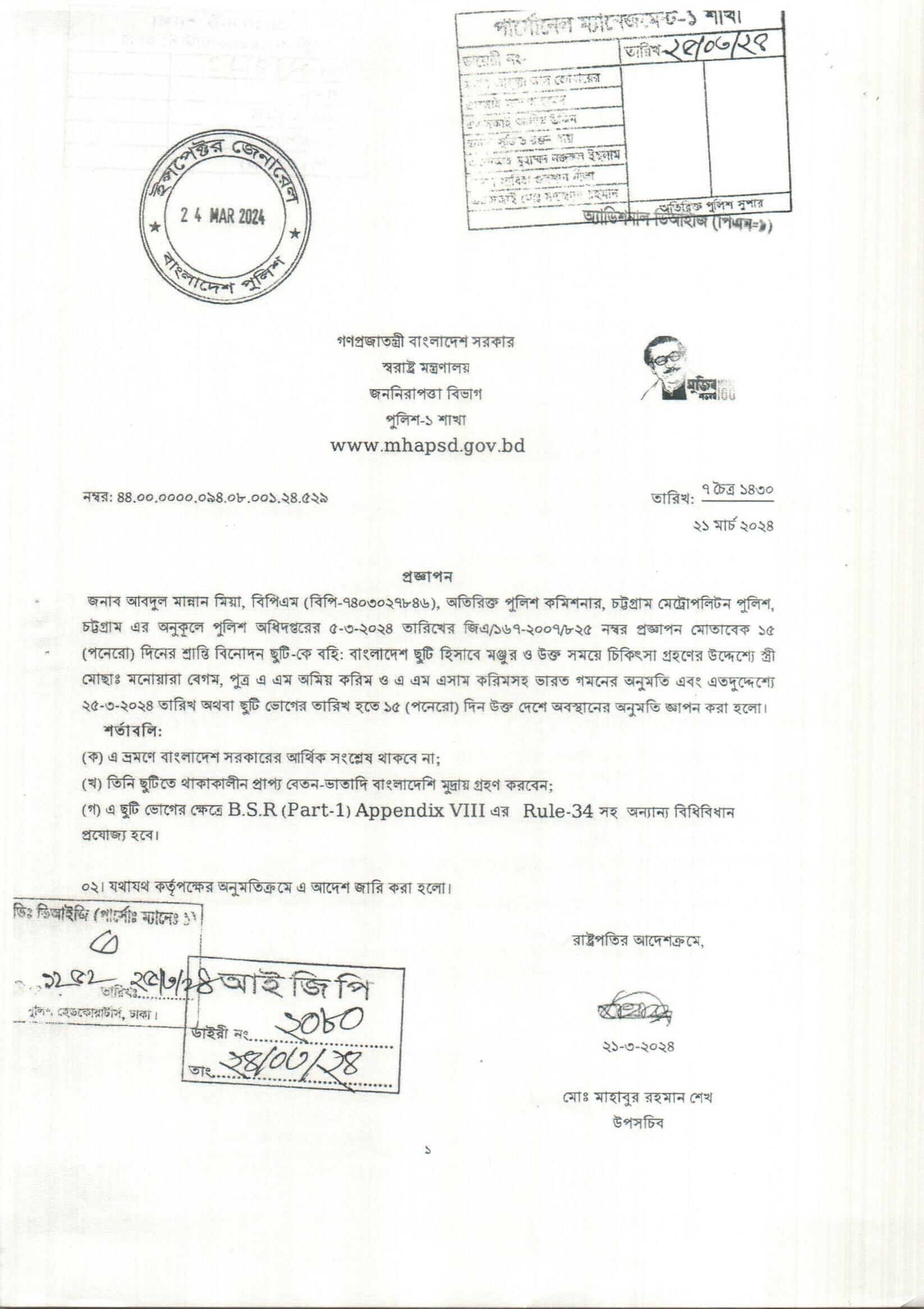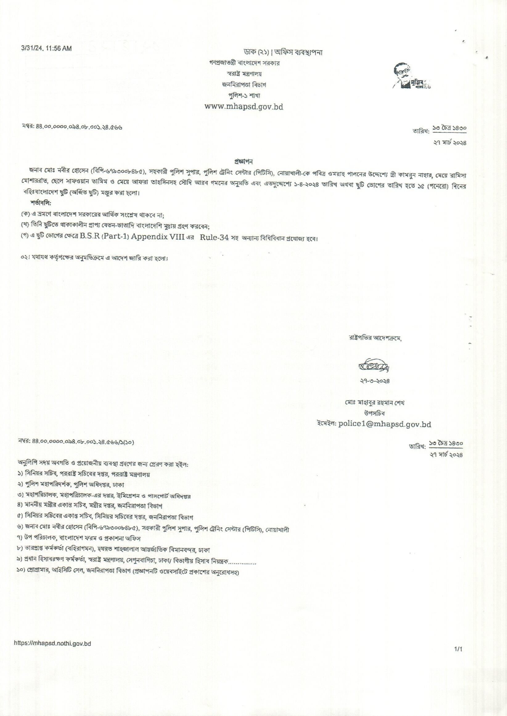 বহিঃ বাংলাদেশ ছুটি, প্রজ্ঞাপন নং- ৫৩১, তারিখঃ ২১/০৩/২০২৪ খ্রিঃ।