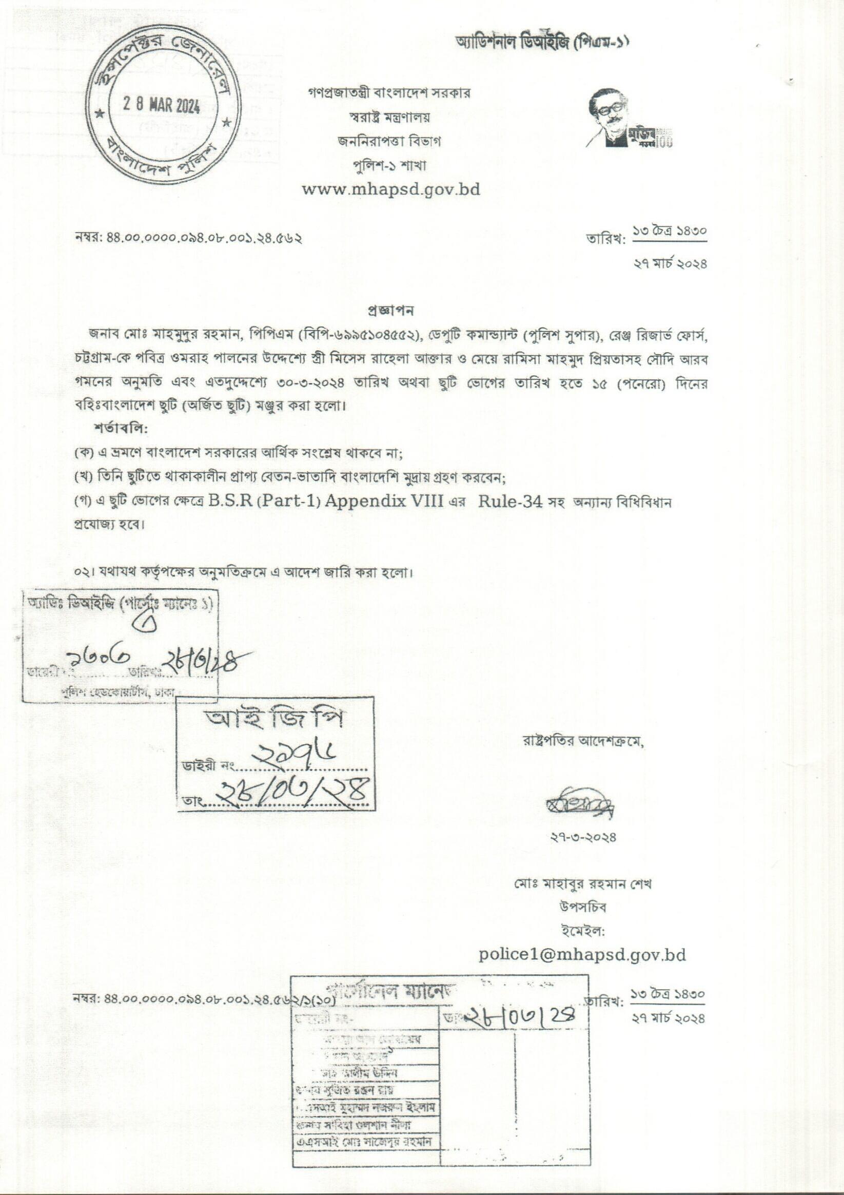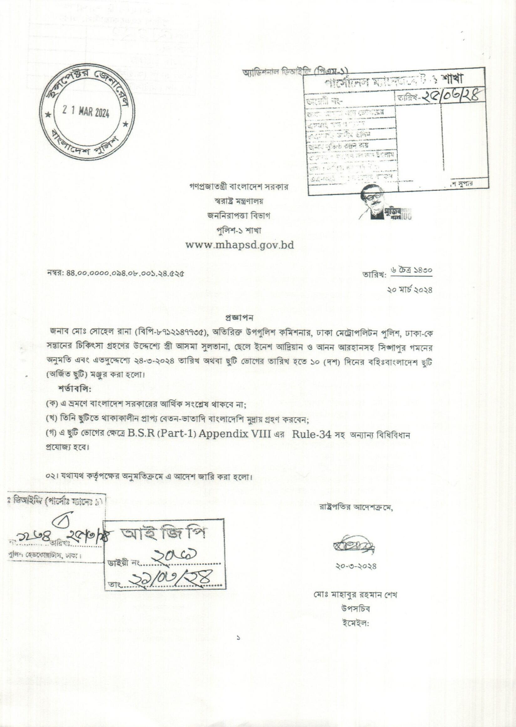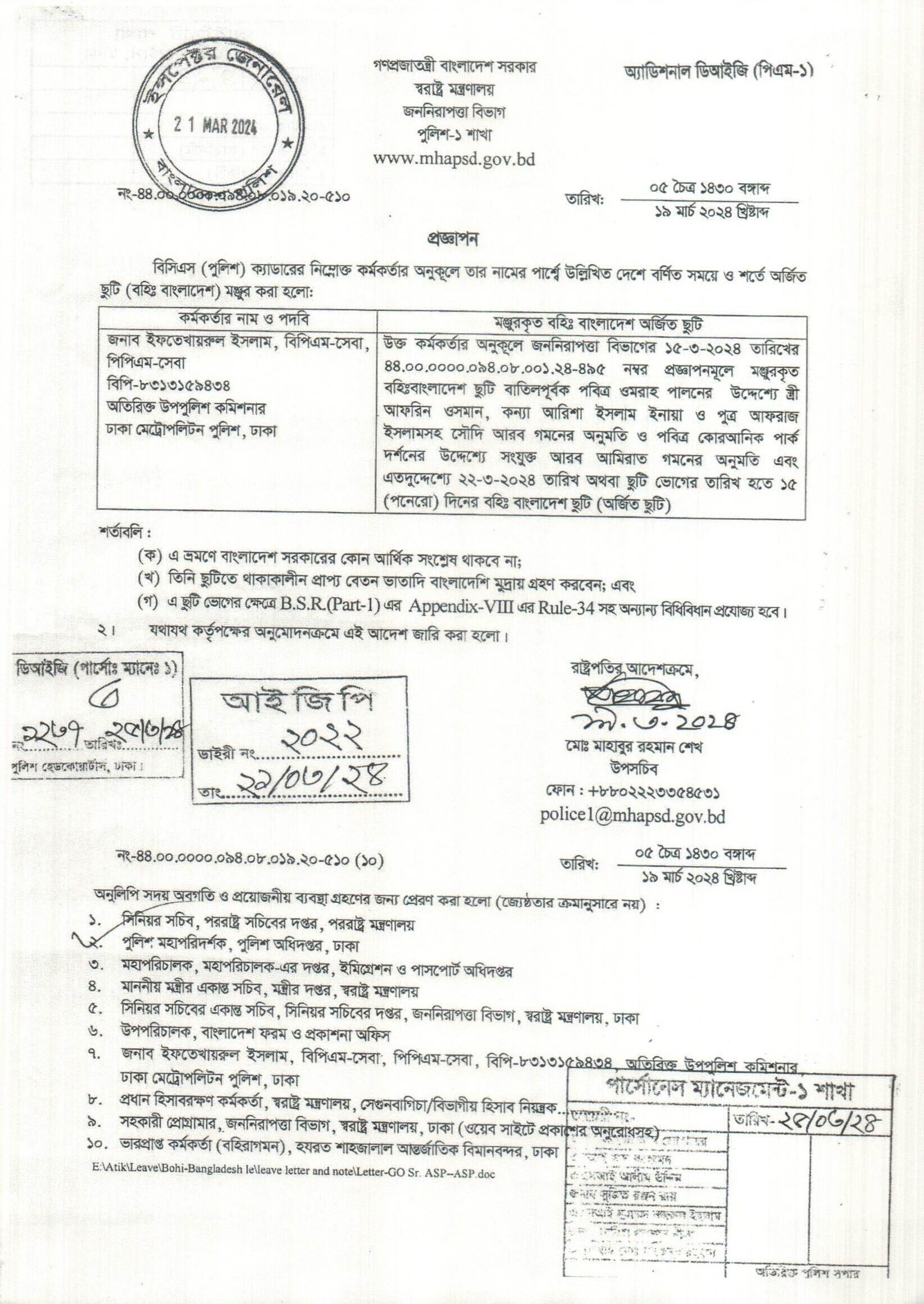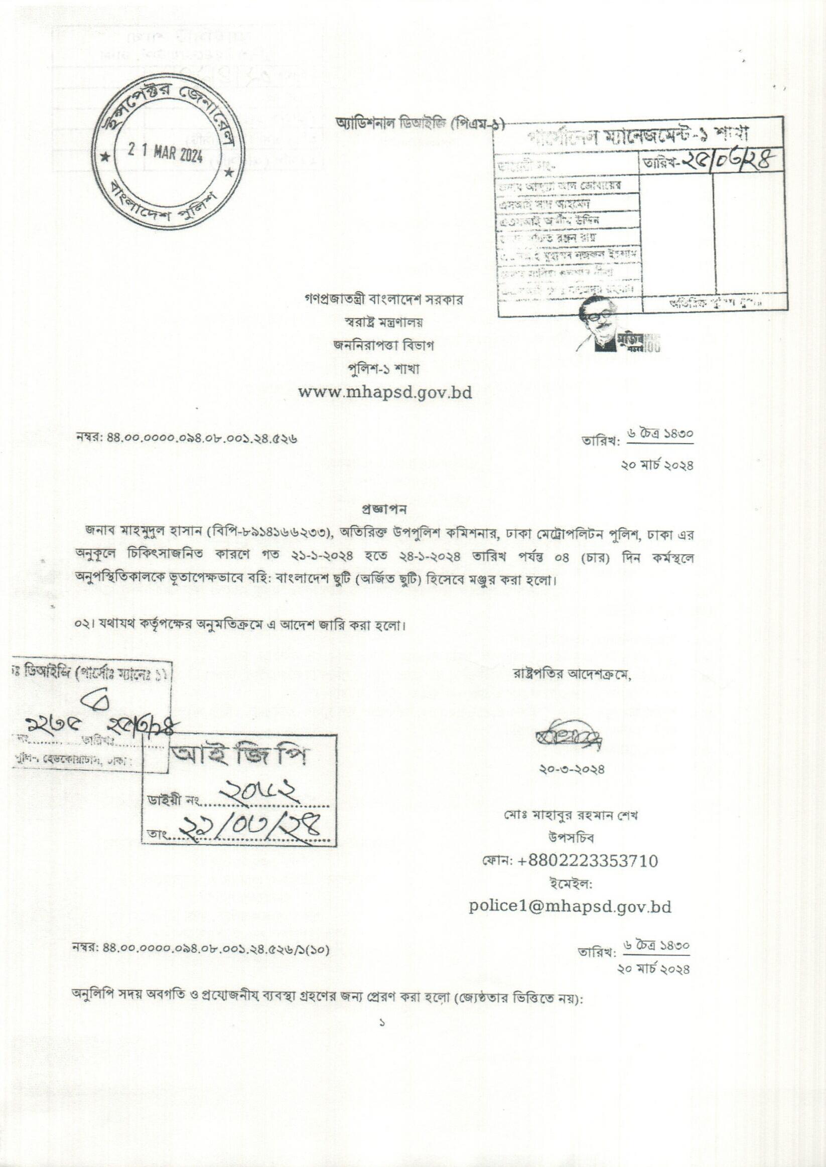 বহিঃ বাংলাদেশ ছুটি, প্রজ্ঞাপন নং- ৫৩১, তারিখঃ ২১/০৩/২০২৪ খ্রিঃ।