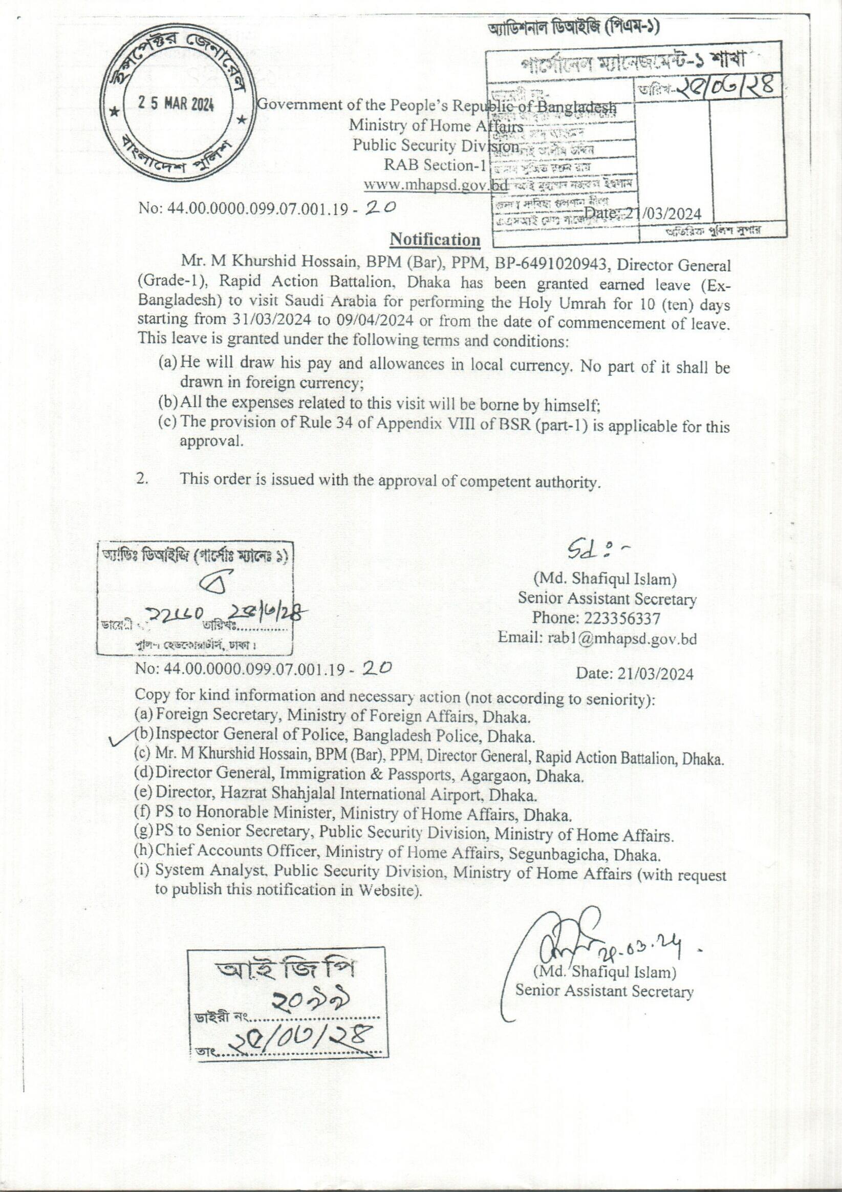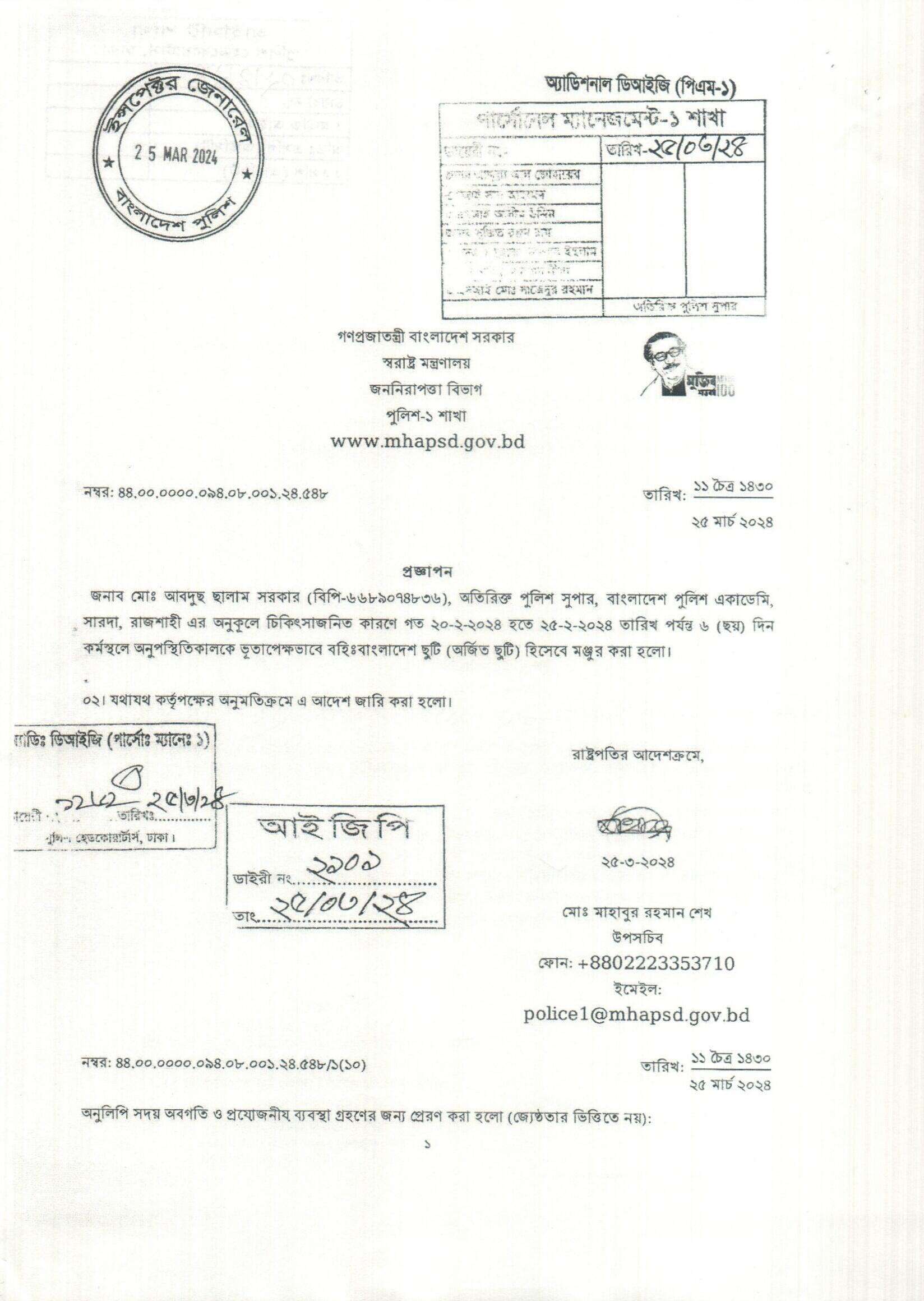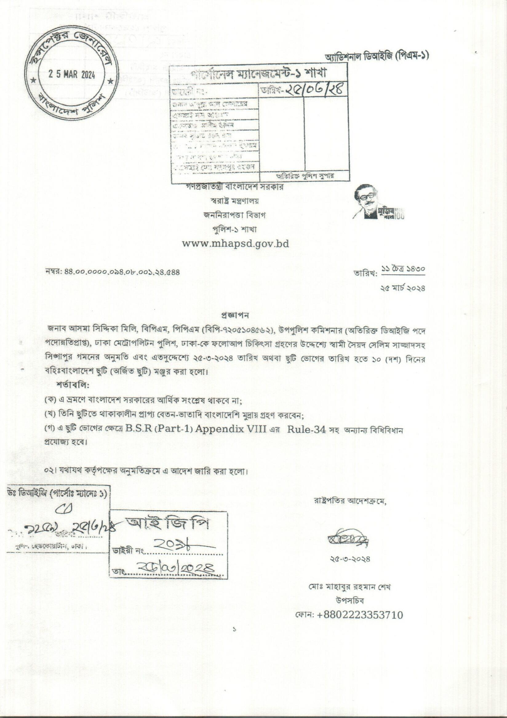 বহিঃ বাংলাদেশ ছুটি, প্রজ্ঞাপন নং- ৫৪৪, তারিখঃ ২৫/০৩/২০২৪ খ্রিঃ।