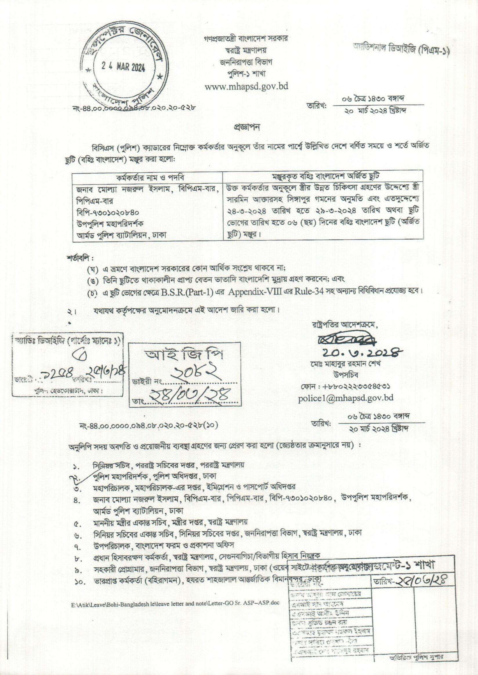 বহিঃ বাংলাদেশ ছুটি, প্রজ্ঞাপন নং- ৫২৮, তারিখঃ ২০/০৩/২০২৪ খ্রিঃ।