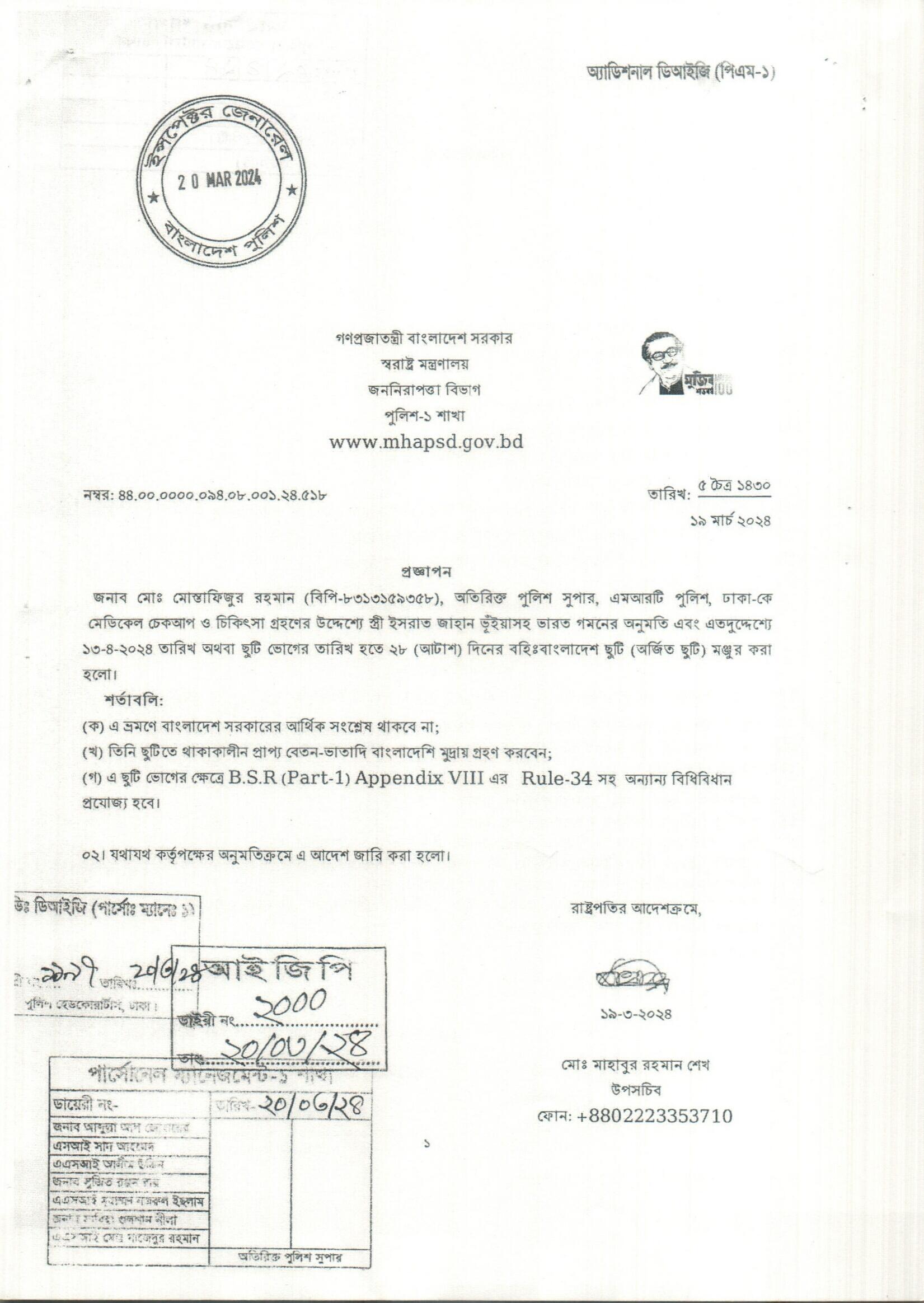 বহিঃ বাংলাদেশ ছুটি, প্রজ্ঞাপন নং- ৫০৮, তারিখঃ ১৯/০৩/২০২৪ খ্রিঃ।