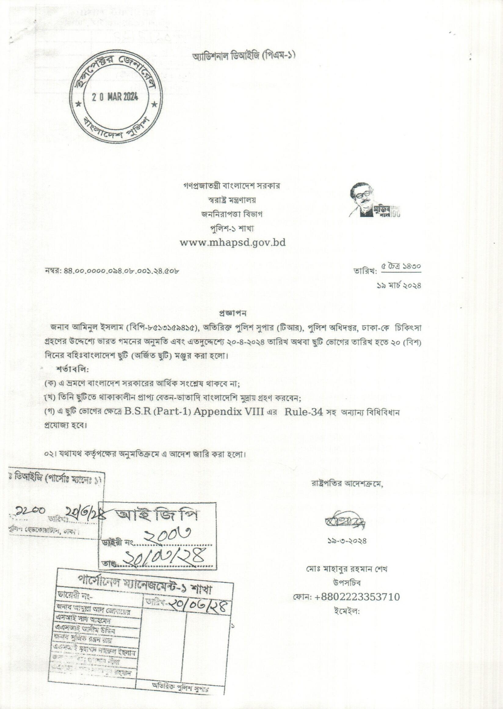 বহিঃ বাংলাদেশ ছুটি, প্রজ্ঞাপন নং- ২০, তারিখঃ ২১/০৩/২০২৪ খ্রিঃ।
