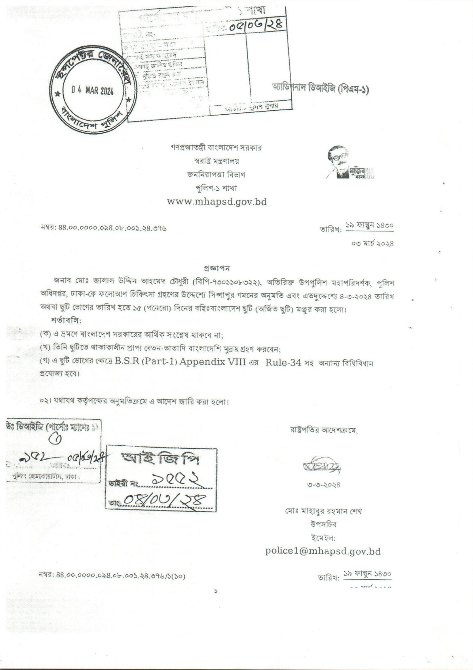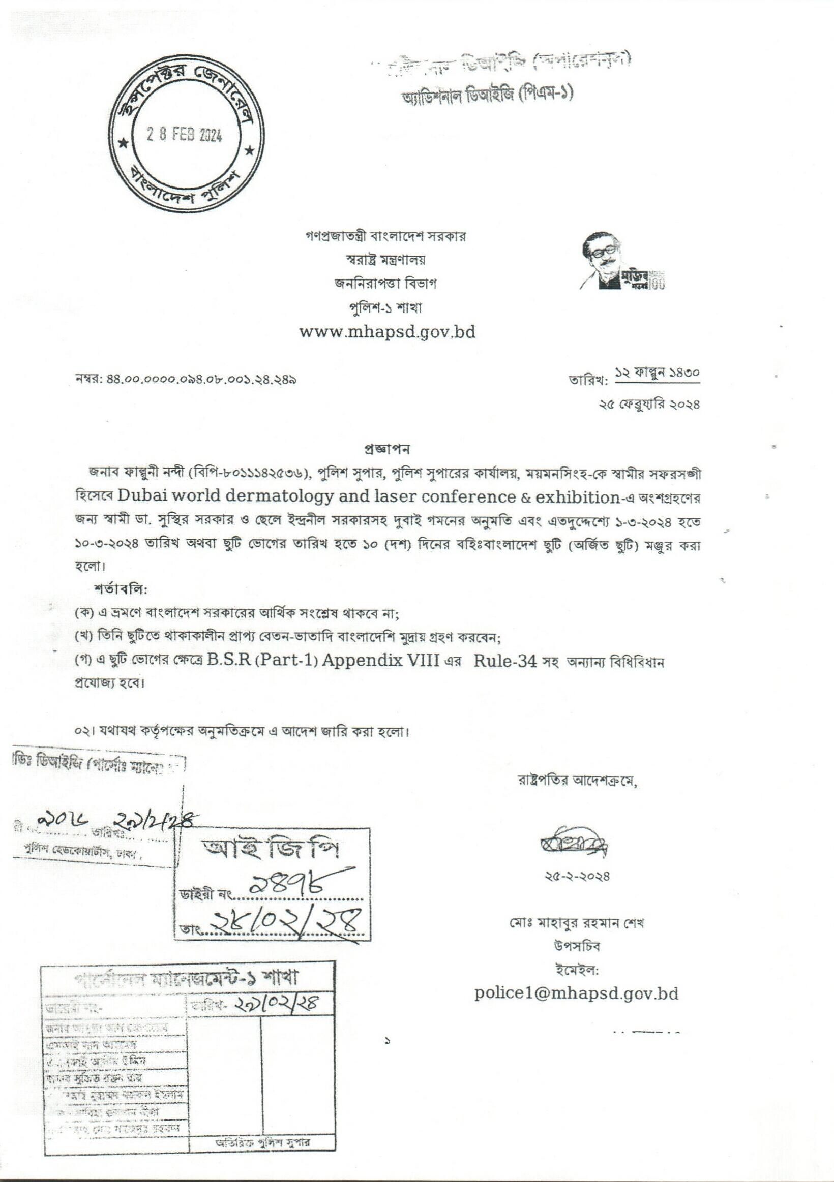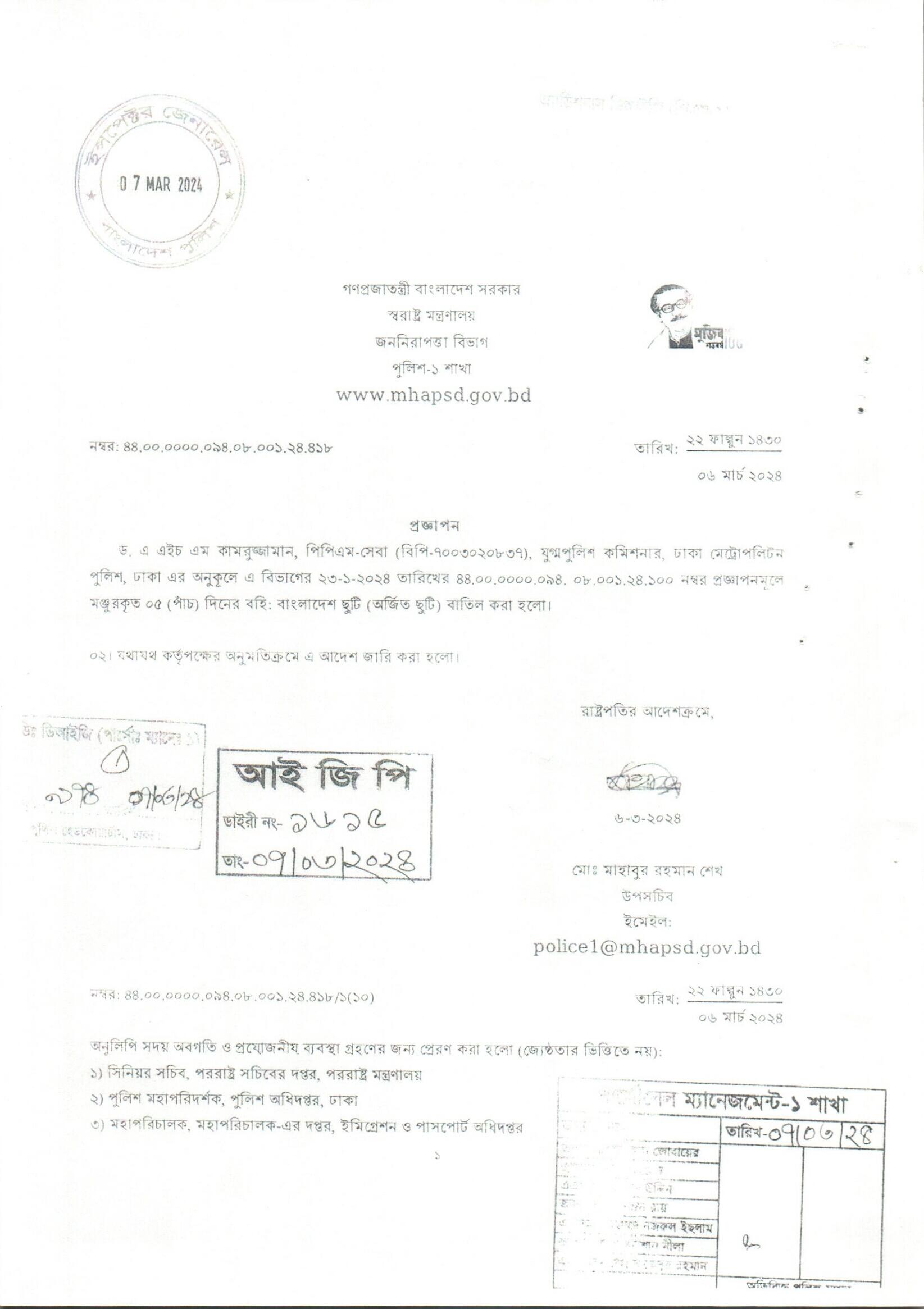 বহিঃ বাংলাদেশ ছুটি, প্রজ্ঞাপন নং- ২৪৯, তারিখঃ ২৫/০২/২০২৪ খ্রিঃ।