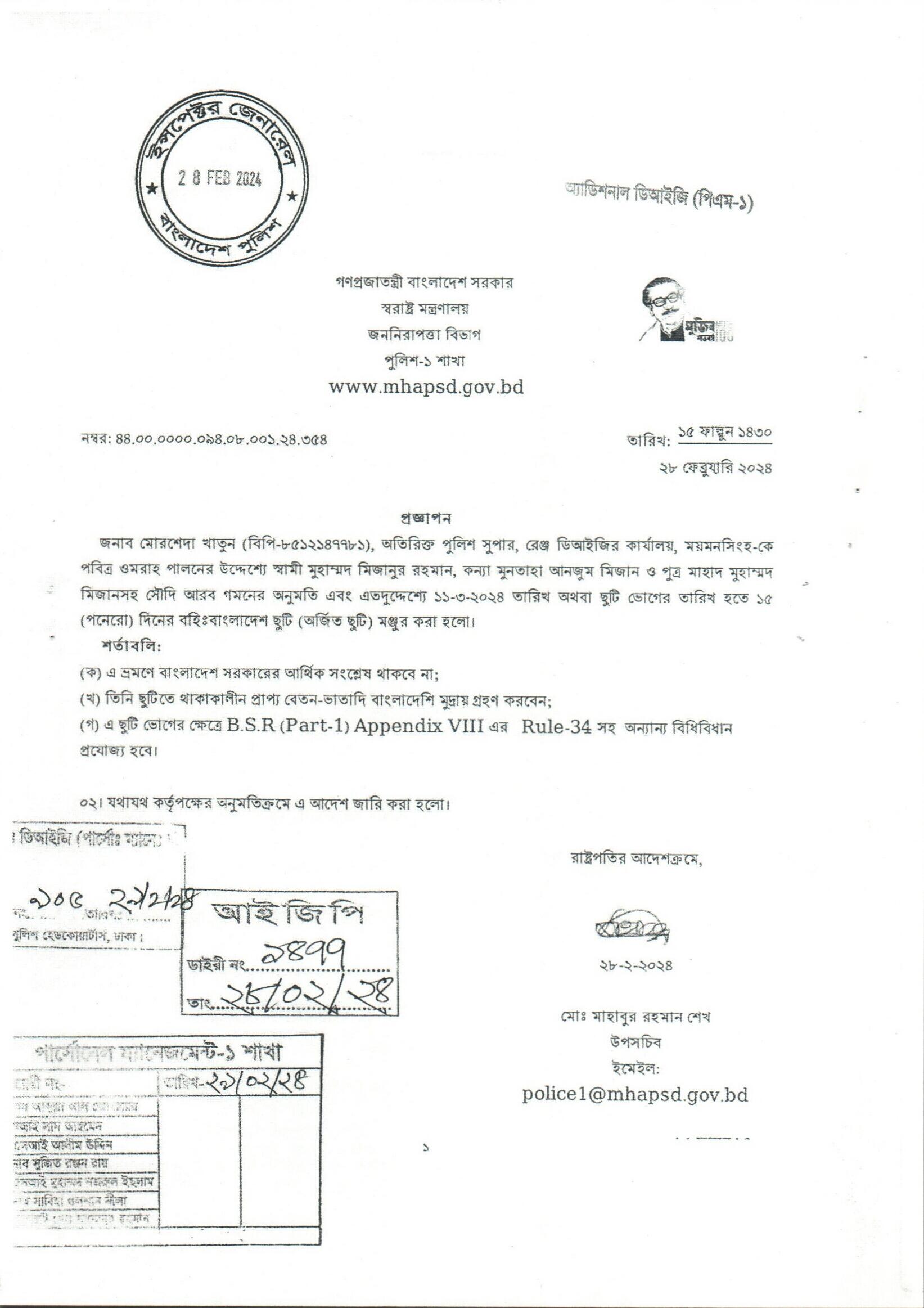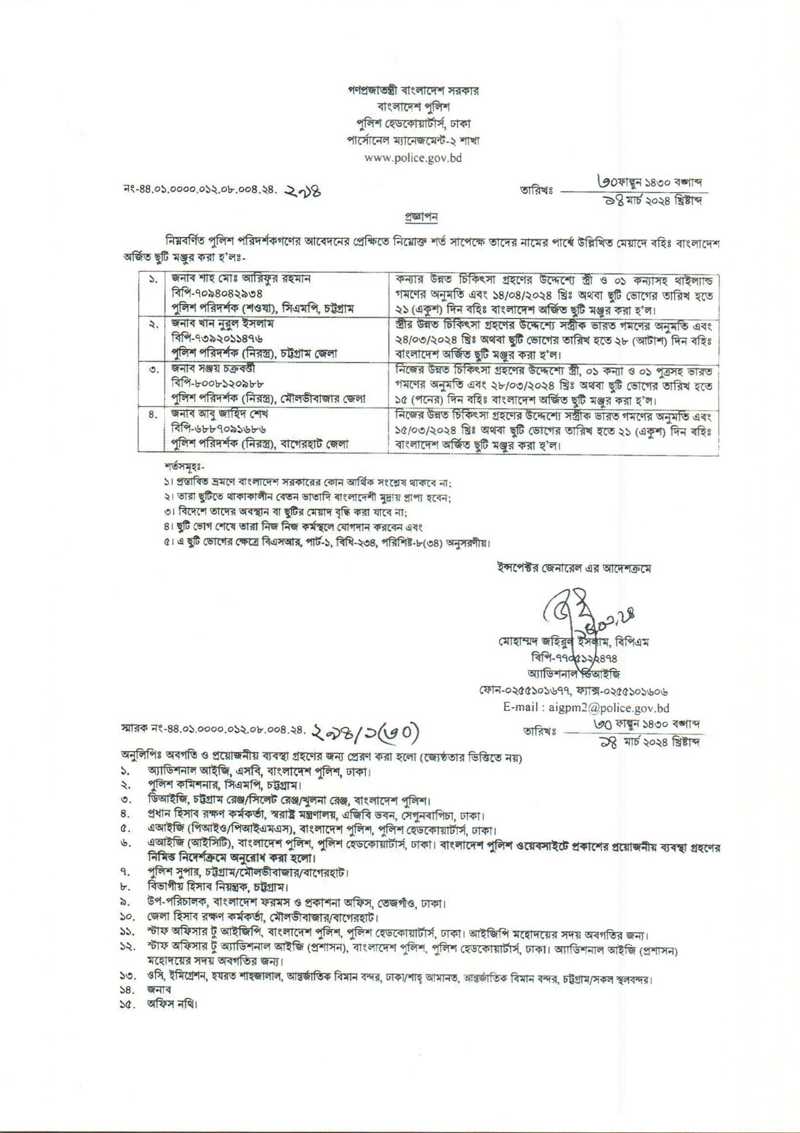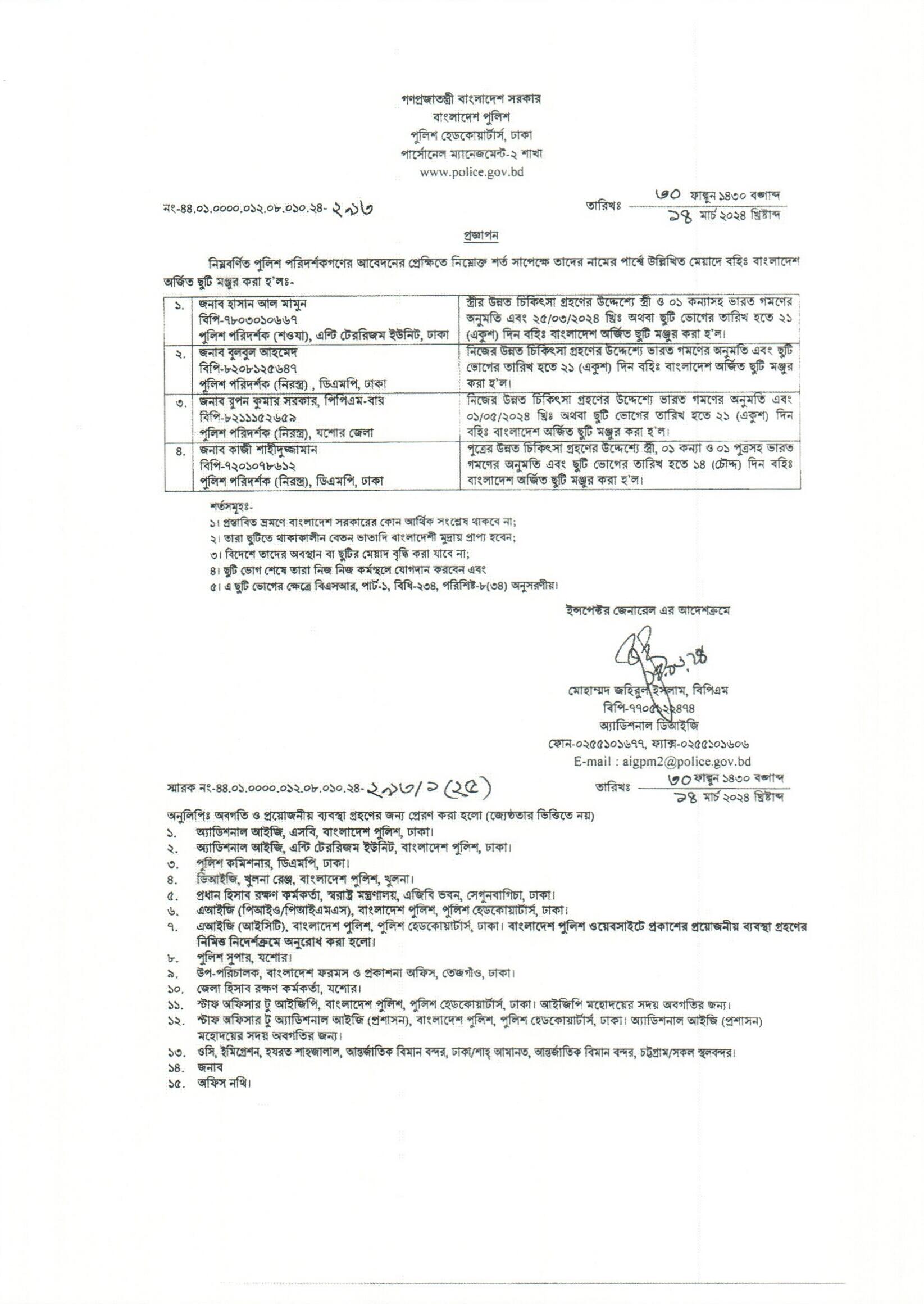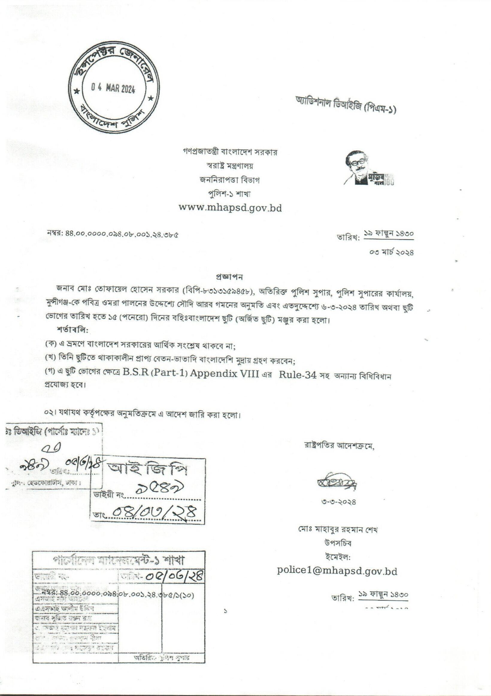 বহিঃ বাংলাদেশ ছুটি, প্রজ্ঞাপন নং- ৩৫৪, তারিখঃ ২৮/০২/২০২৪ খ্রিঃ।