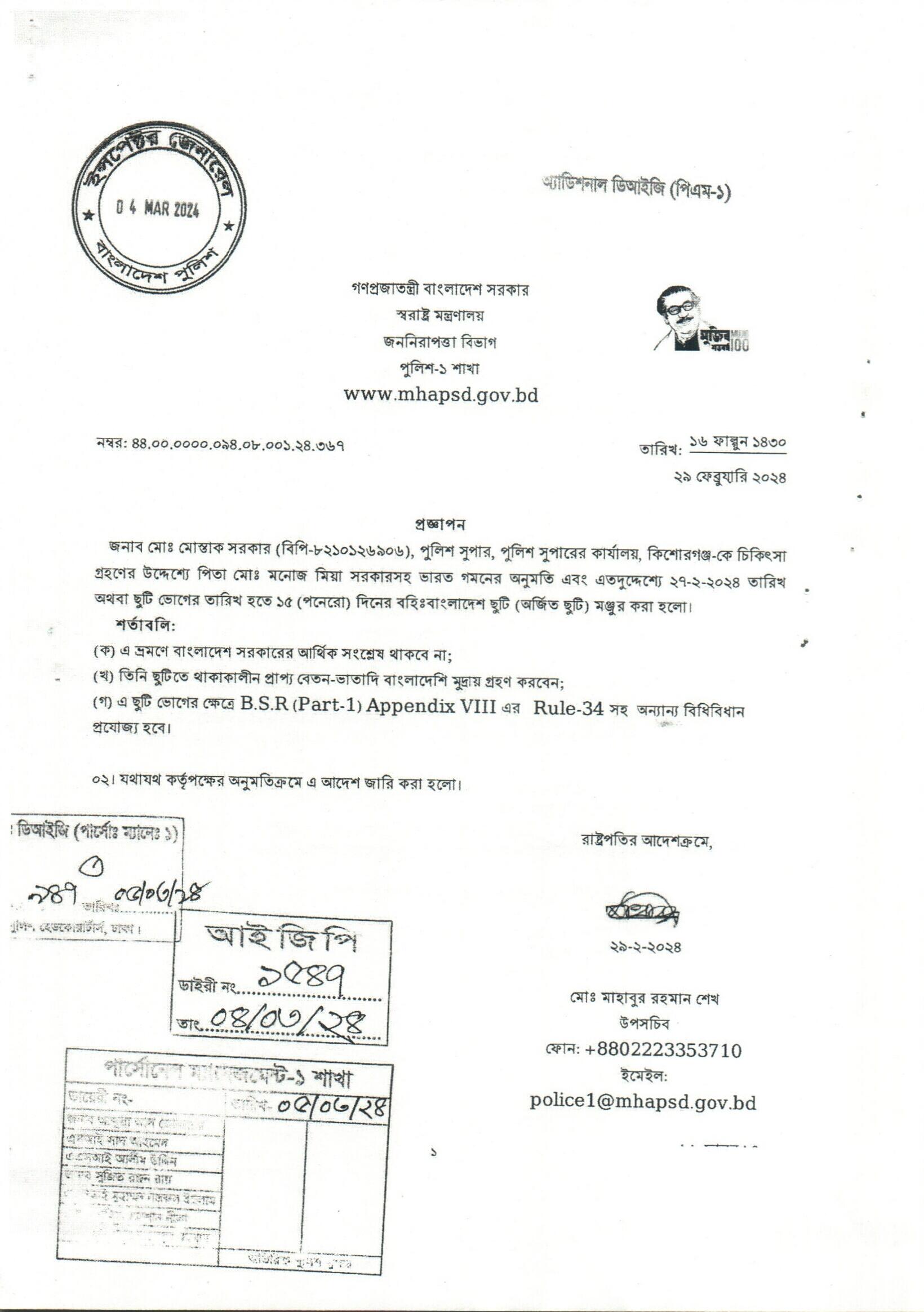 বহিঃ বাংলাদেশ ছুটি, প্রজ্ঞাপন নং- ৩৬৭, তারিখঃ ২৯/০২/২০২৪ খ্রিঃ।