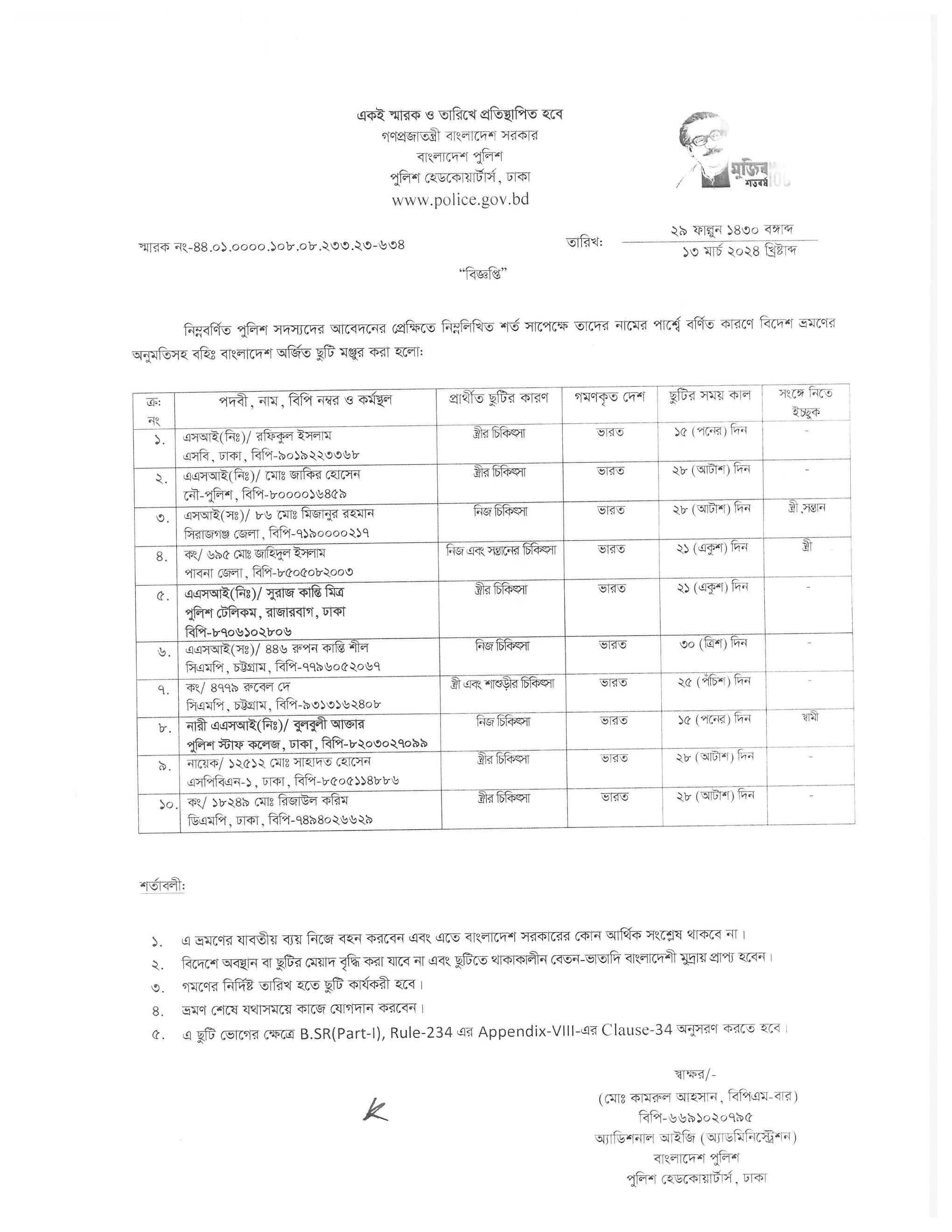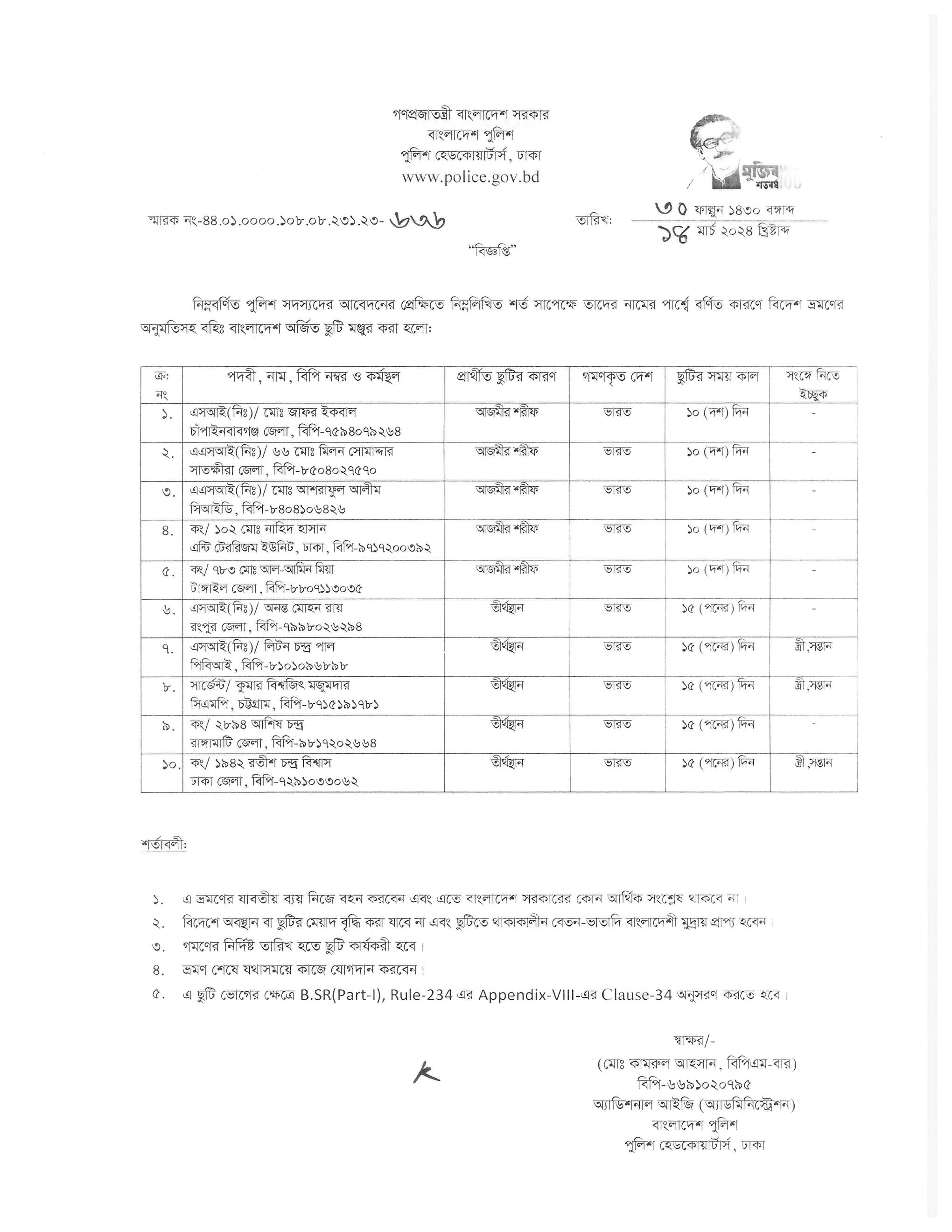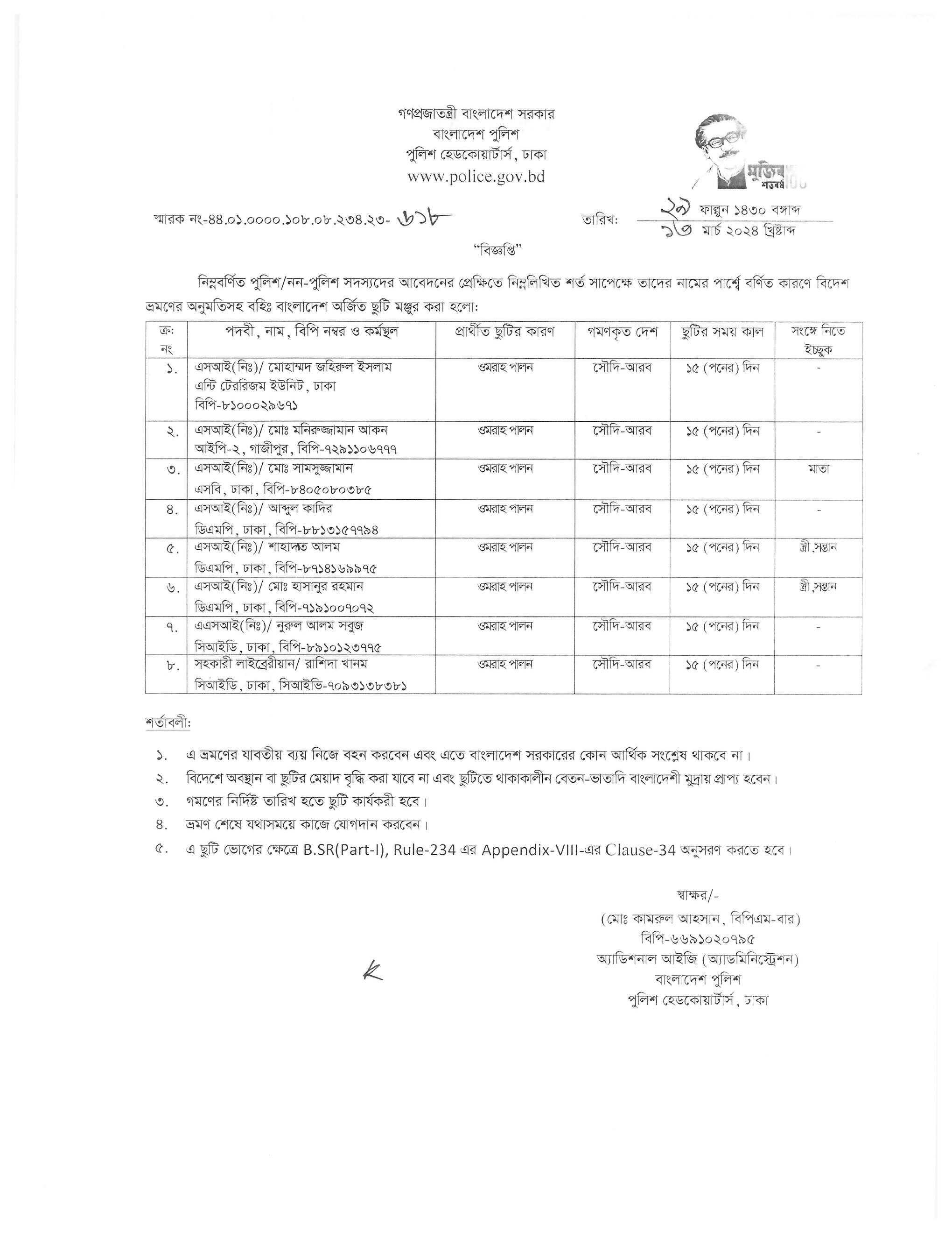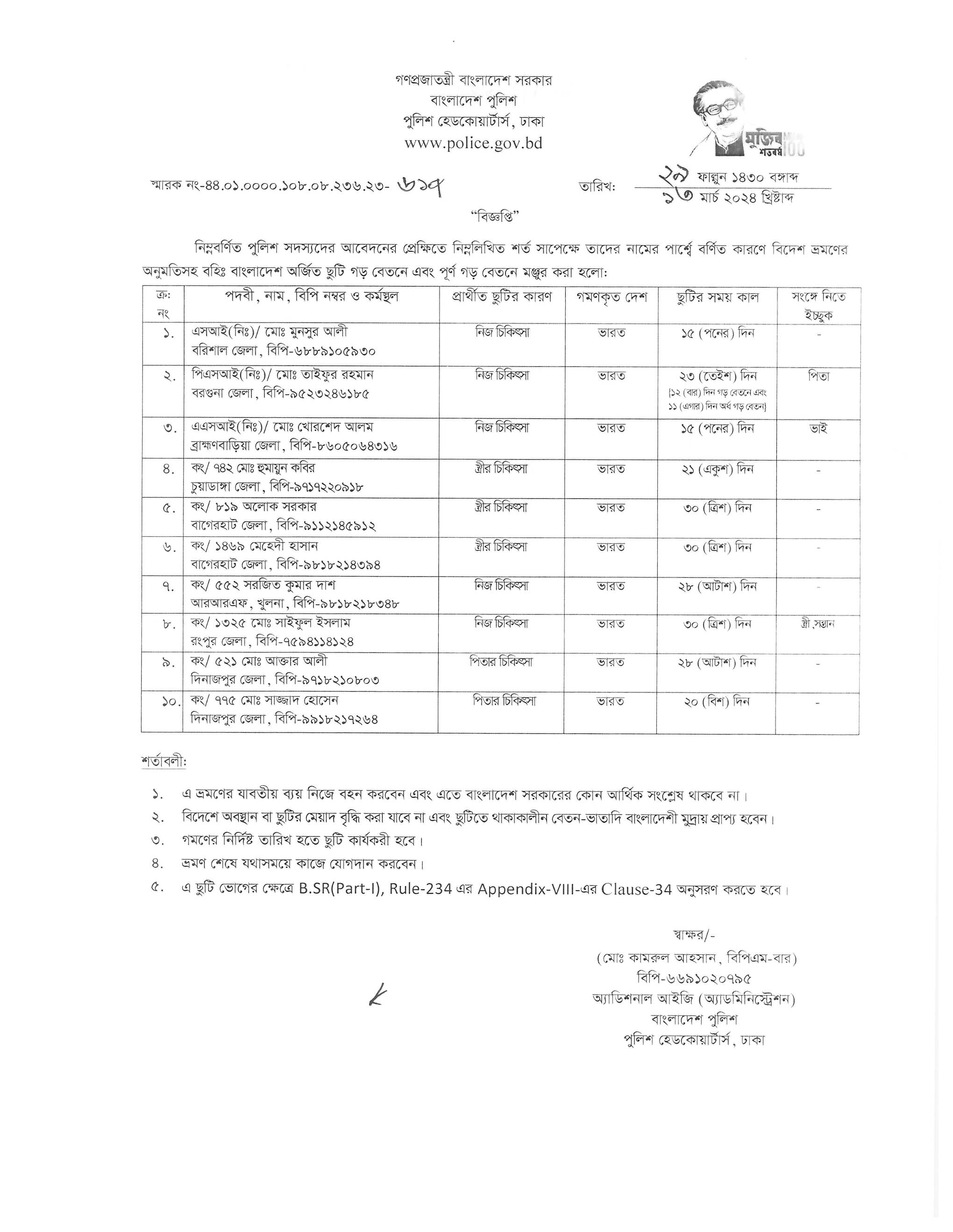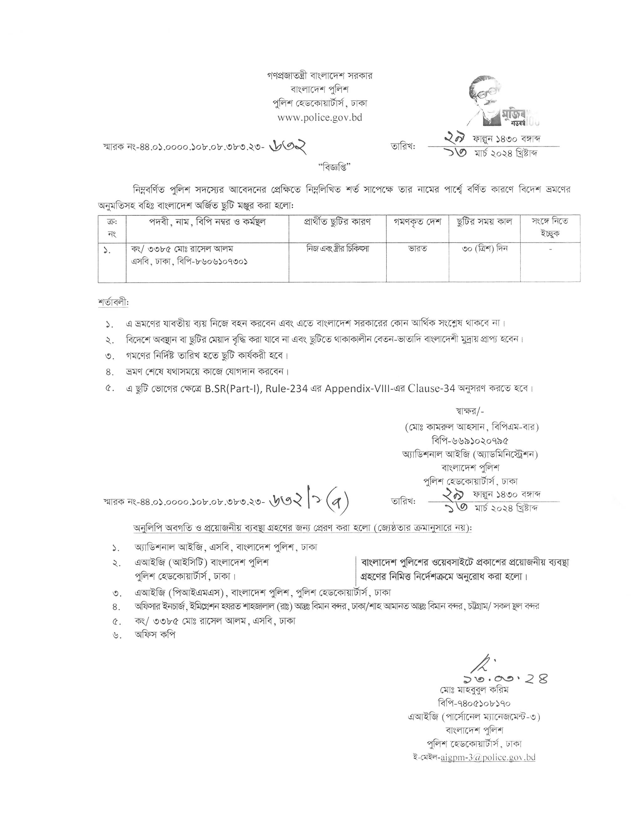 বহিঃ বাংলাদেশ ছুটি, বিজ্ঞপ্তি নং-৬৩৬ , তারিখঃ ১৩/০৩/২০২৪ খ্রিঃ।
