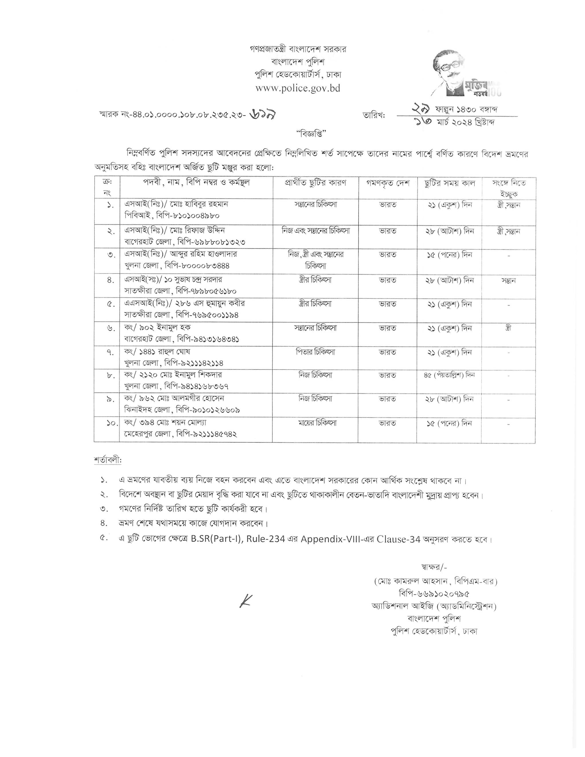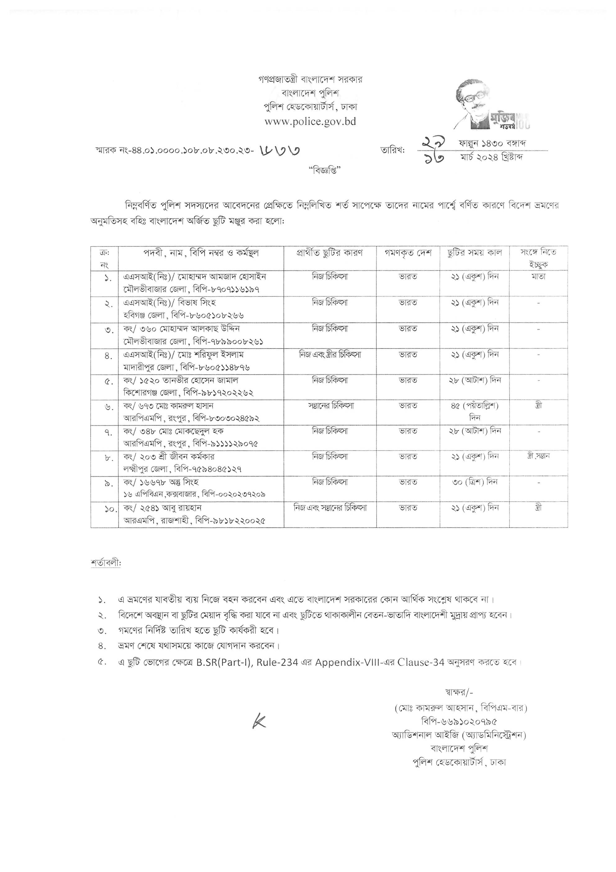 বহিঃ বাংলাদেশ ছুটি, বিজ্ঞপ্তি নং-৬৩২ , তারিখঃ ১৩/০৩/২০২৪ খ্রিঃ।