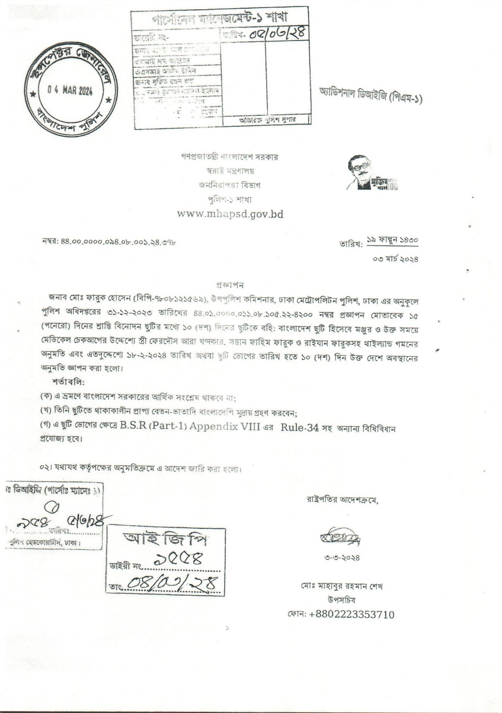 বহিঃ বাংলাদেশ ছুটি, বিজ্ঞপ্তি নং-৬৩৪ , তারিখঃ ১৩/০৩/২০২৪ খ্রিঃ।