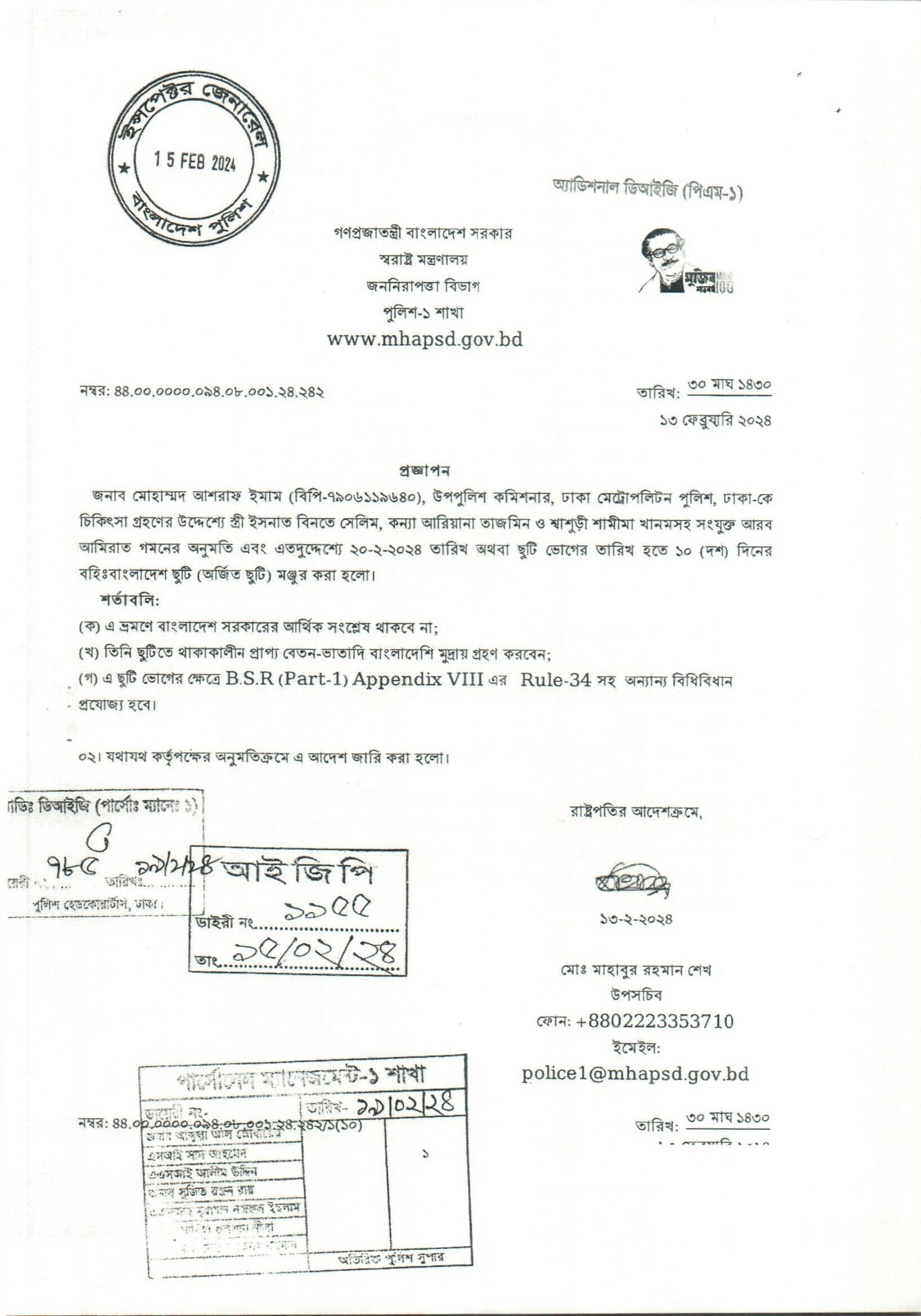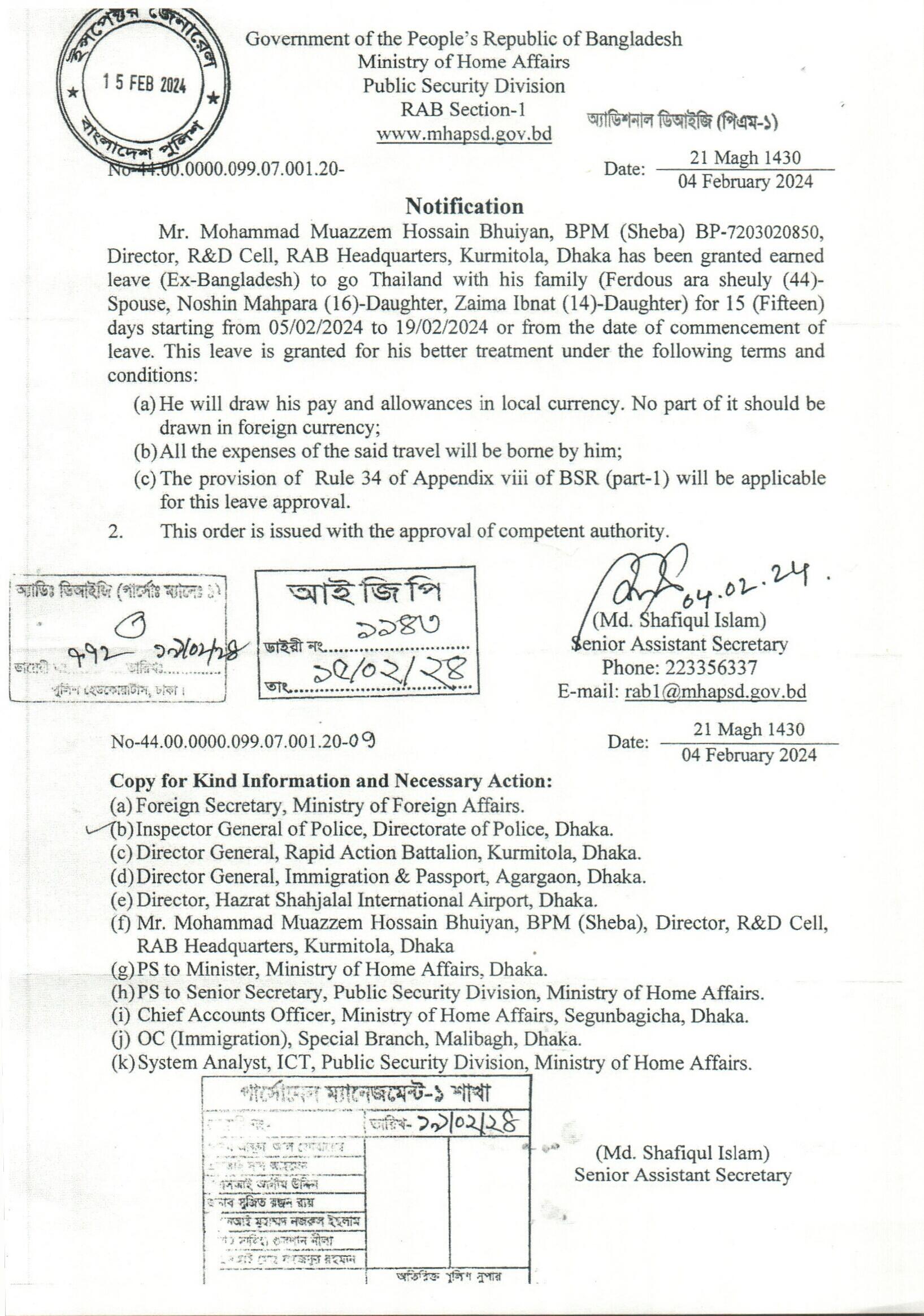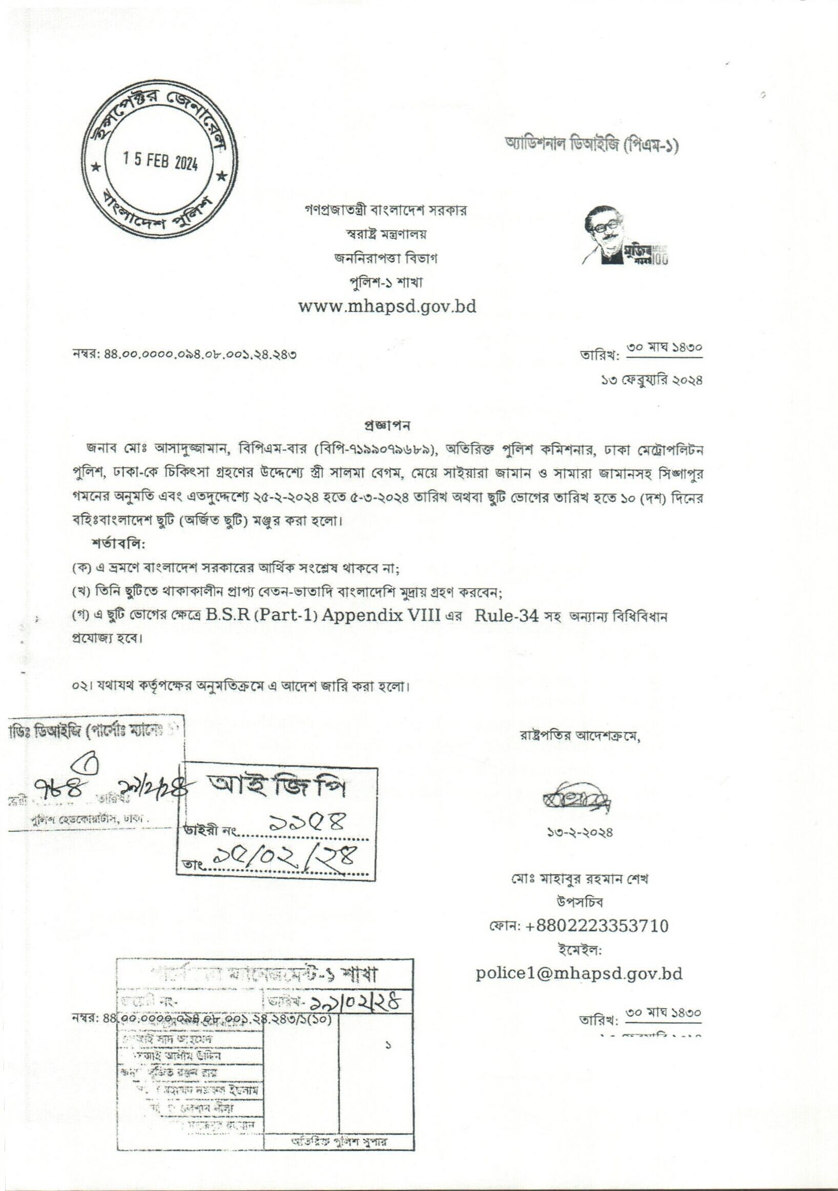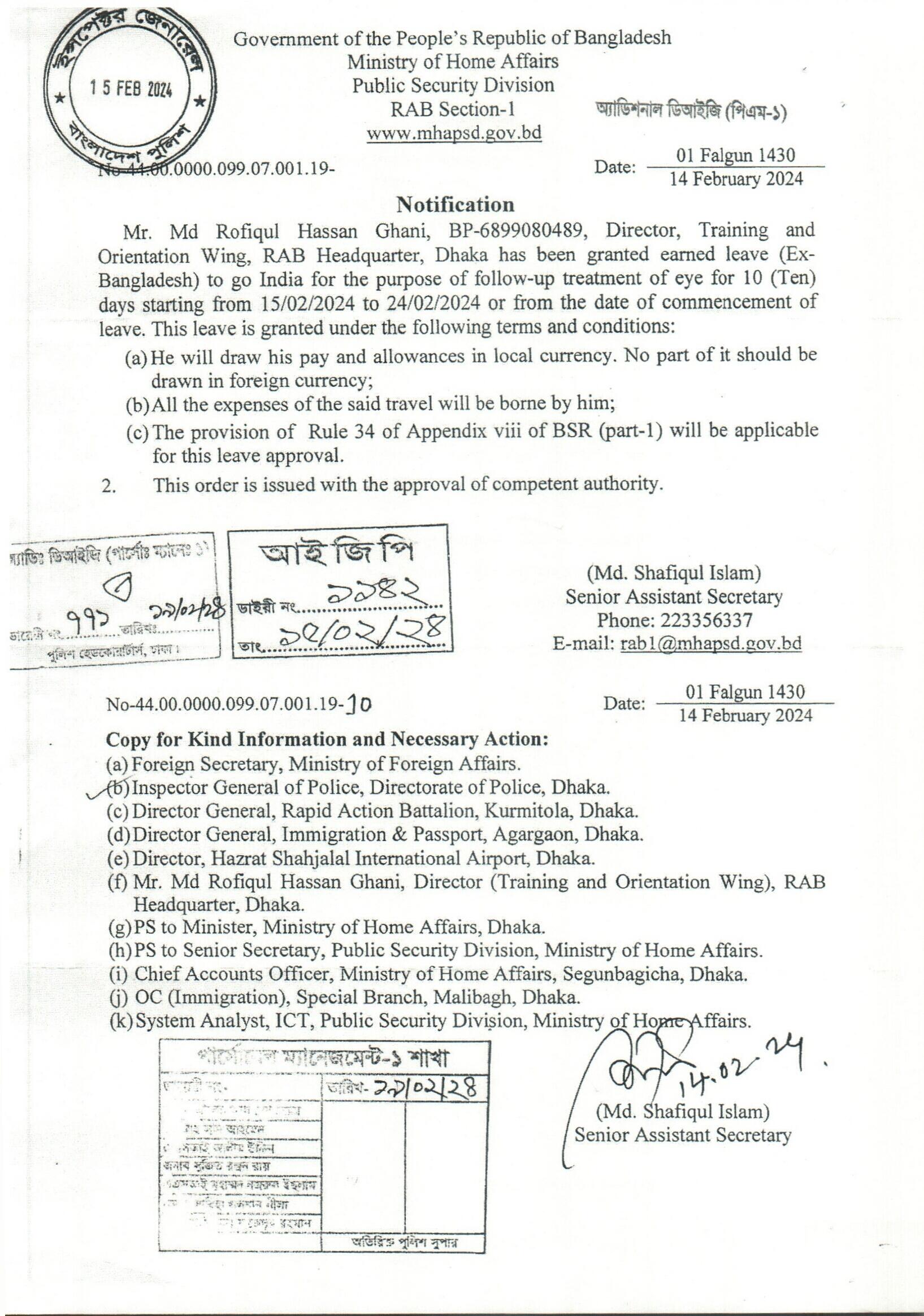 বহিঃ বাংলাদেশ ছুটি, প্রজ্ঞাপন নং- ১০, তারিখঃ ১৪/০২/২০২৪ খ্রিঃ।