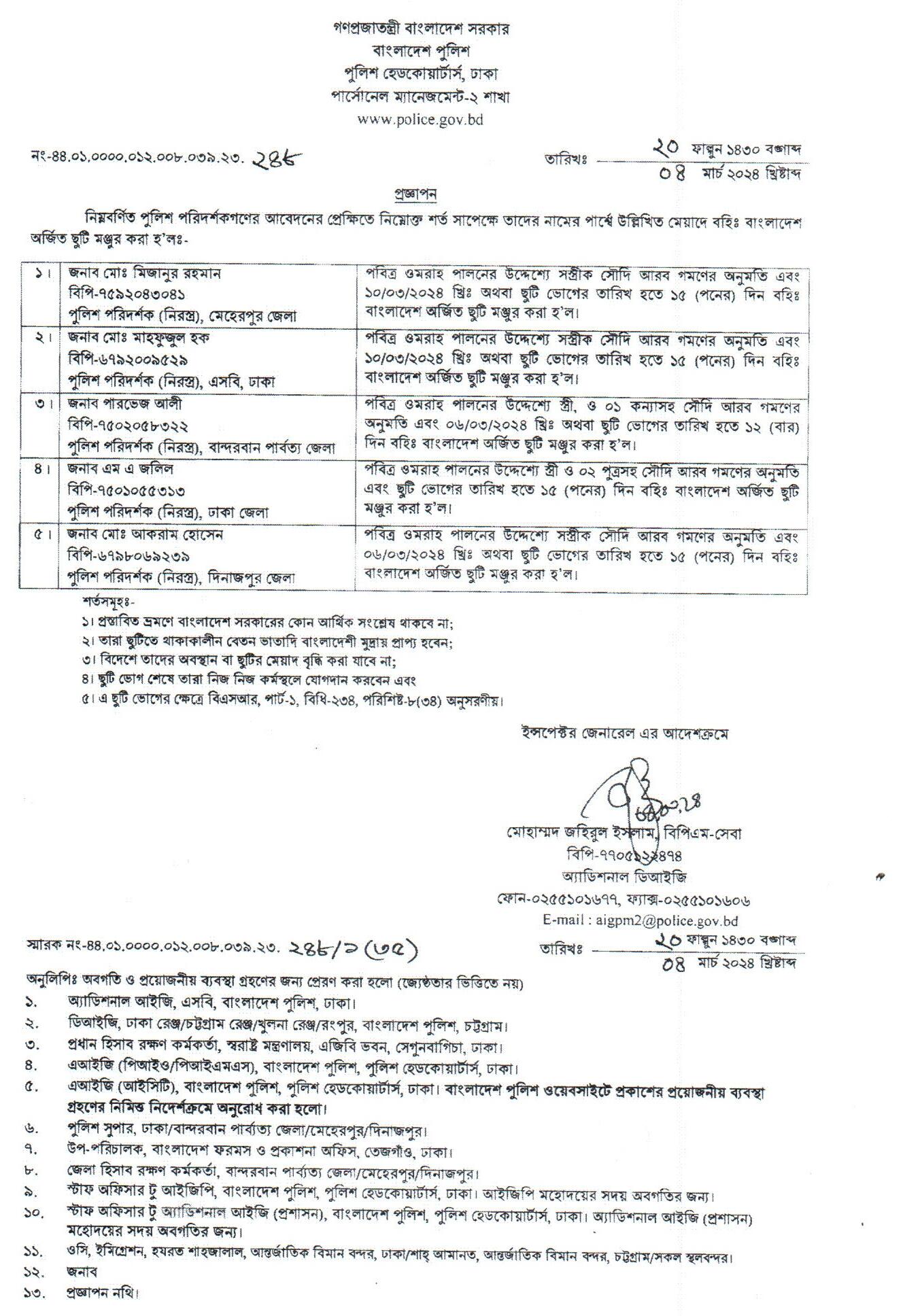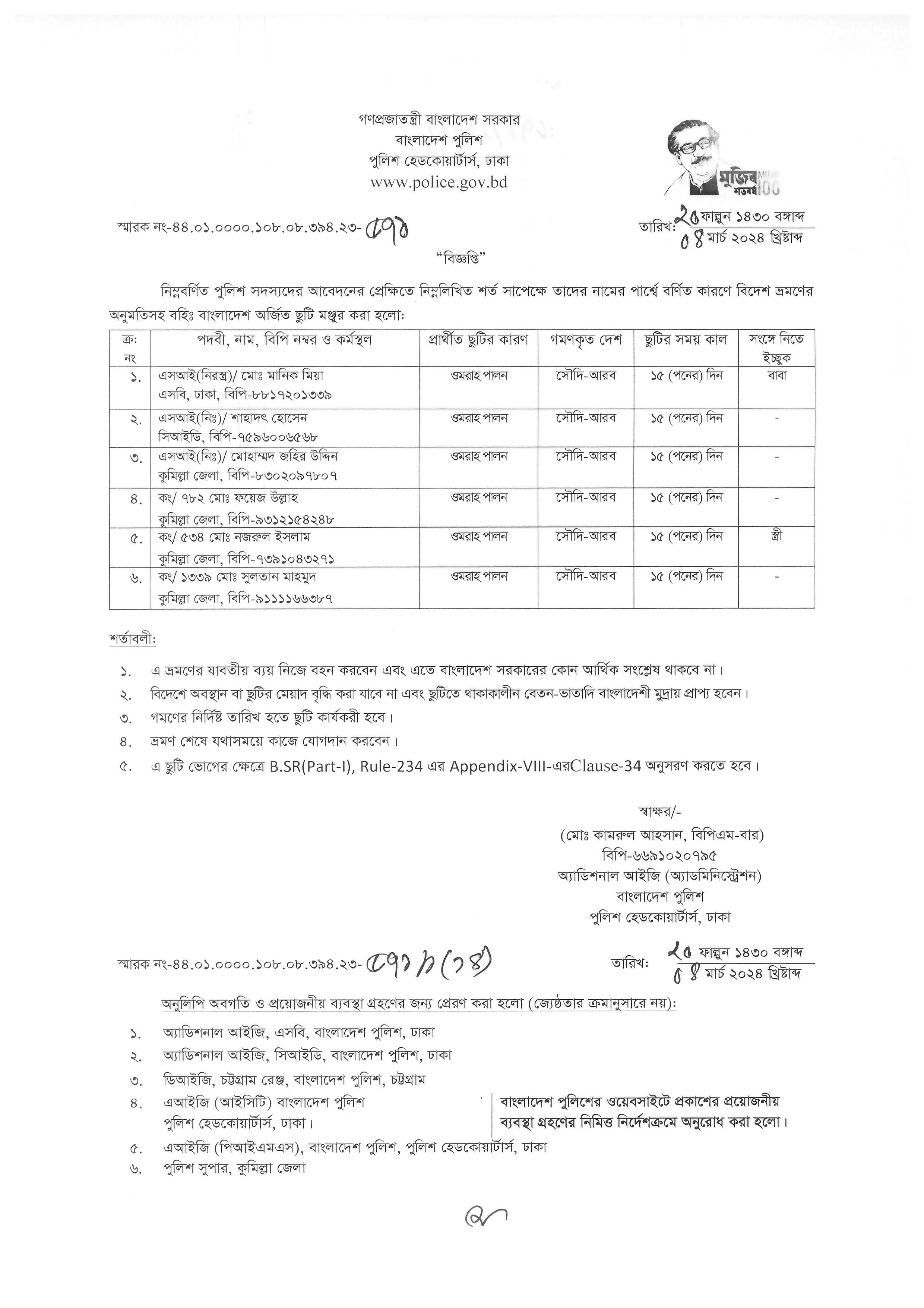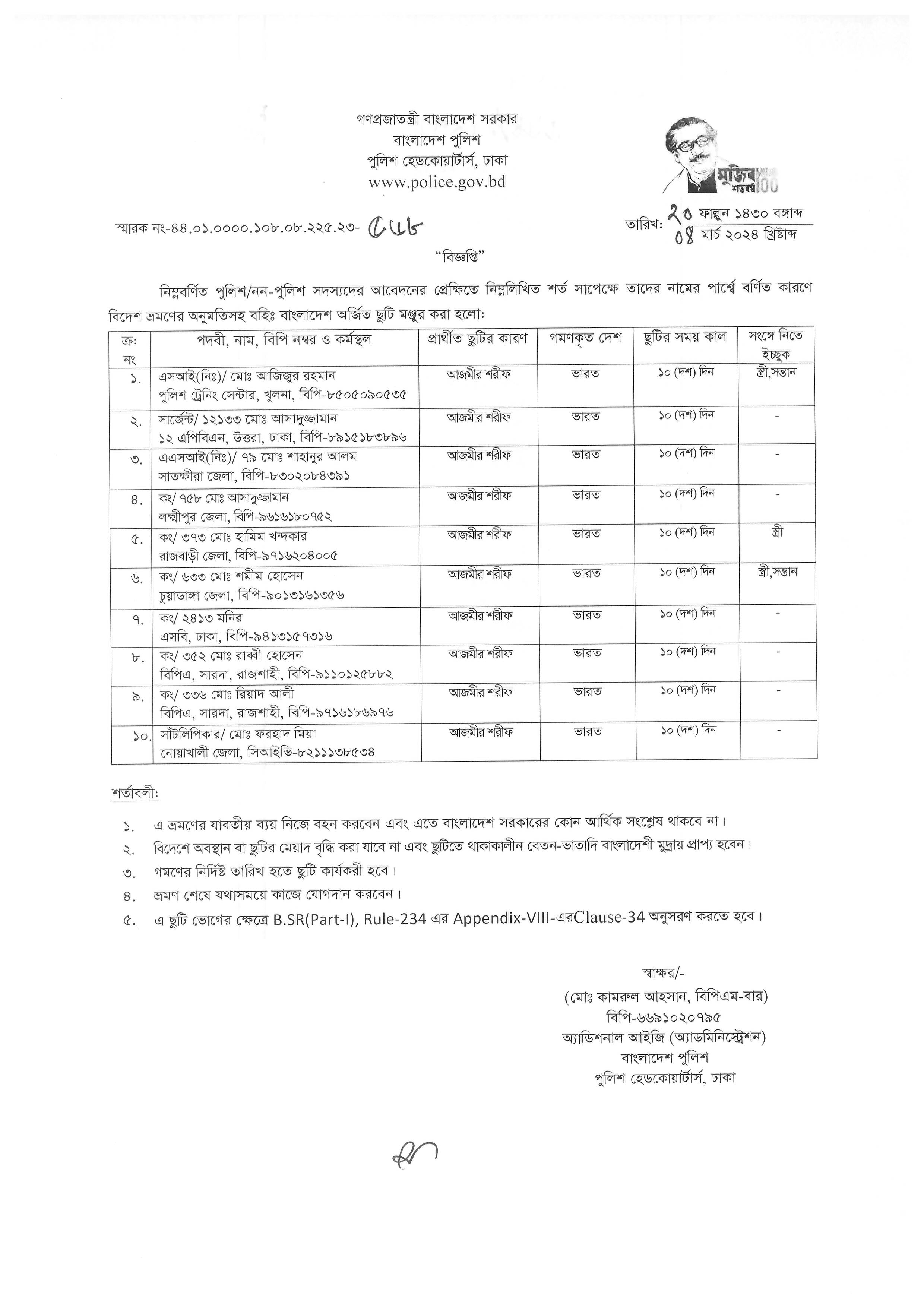 বহিঃ বাংলাদেশ ছুটি, বিজ্ঞপ্তি নং-৫৬৭ , তারিখঃ ০৪/০৩/২০২৪ খ্রিঃ।