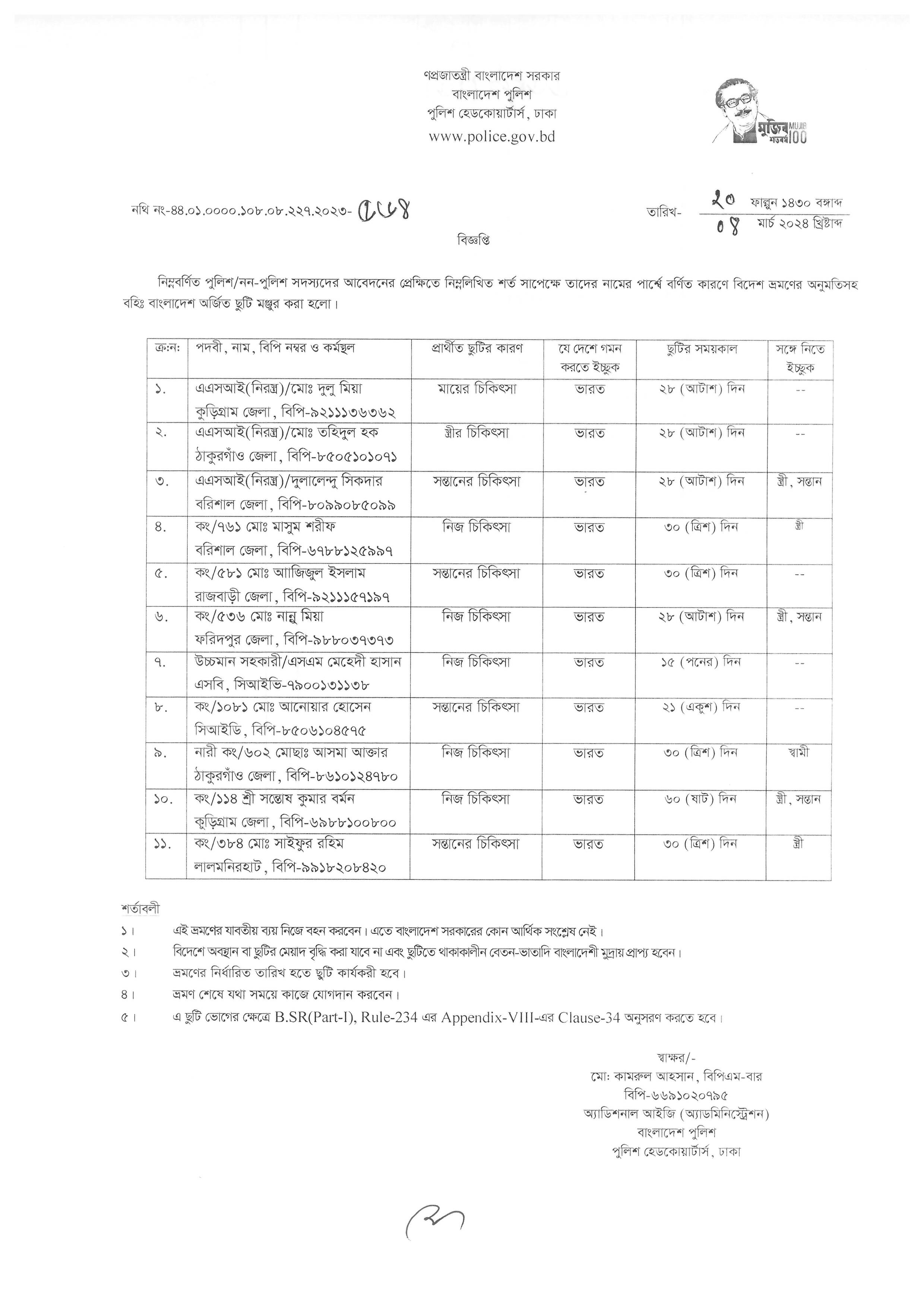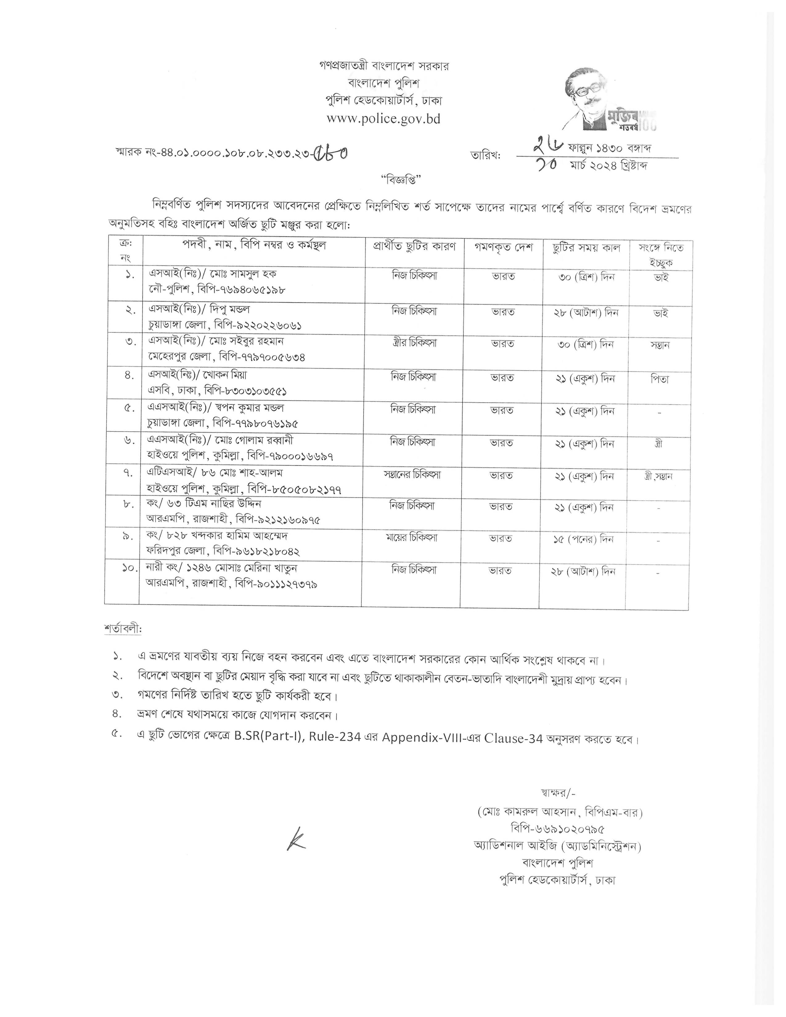 বহিঃ বাংলাদেশ ছুটি, বিজ্ঞপ্তি নং-৫৬৮ , তারিখঃ ০৪/০৩/২০২৪ খ্রিঃ।