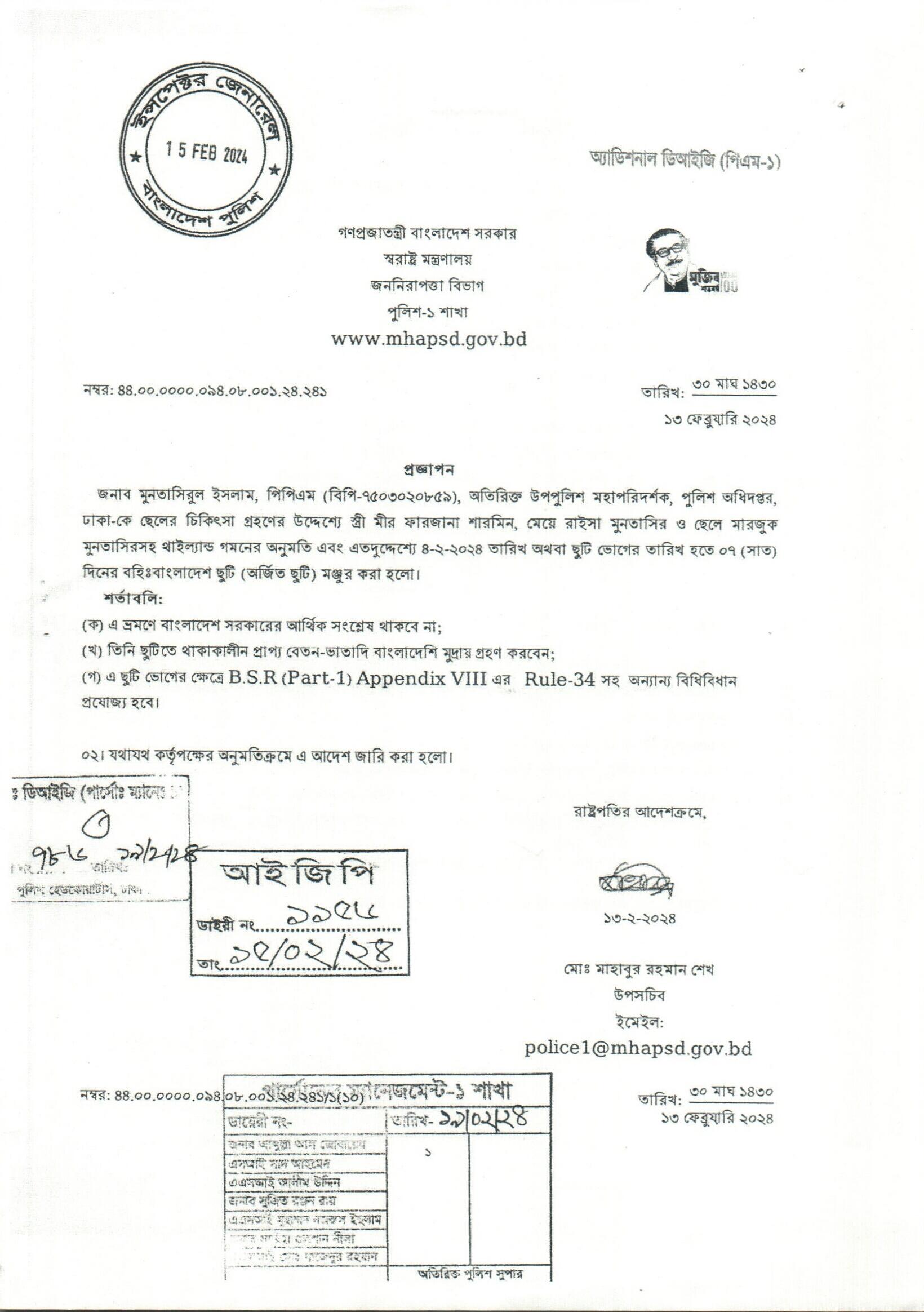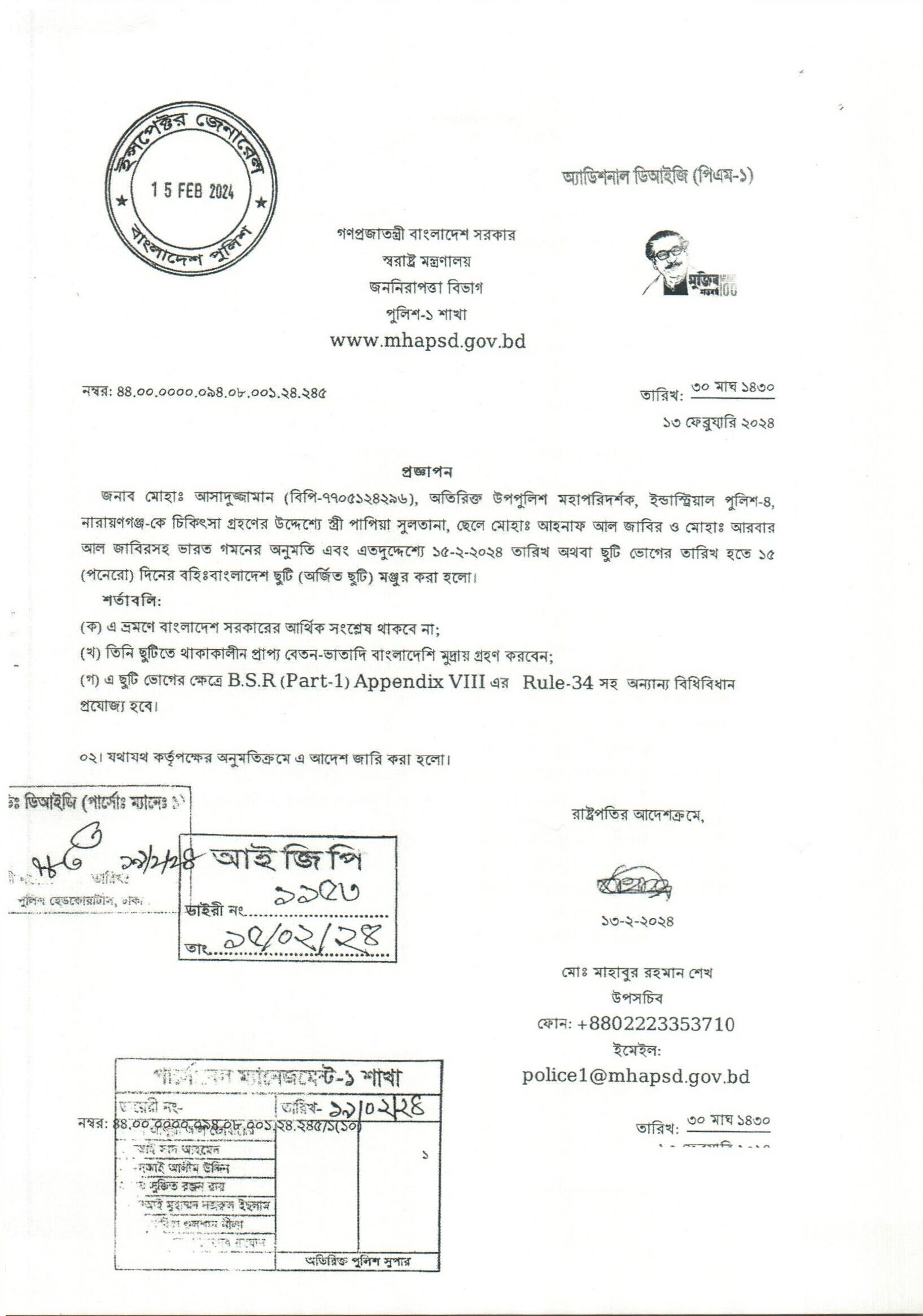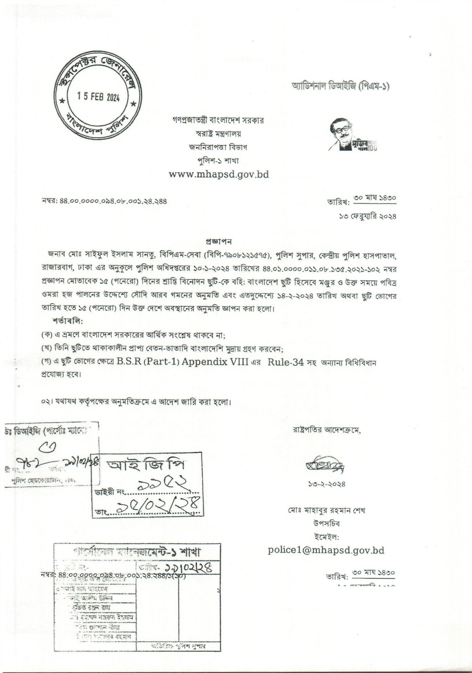বহিঃ বাংলাদেশ ছুটি, প্রজ্ঞাপন নং- ২৪৫, তারিখঃ ১৩/০২/২০২৪ খ্রিঃ।