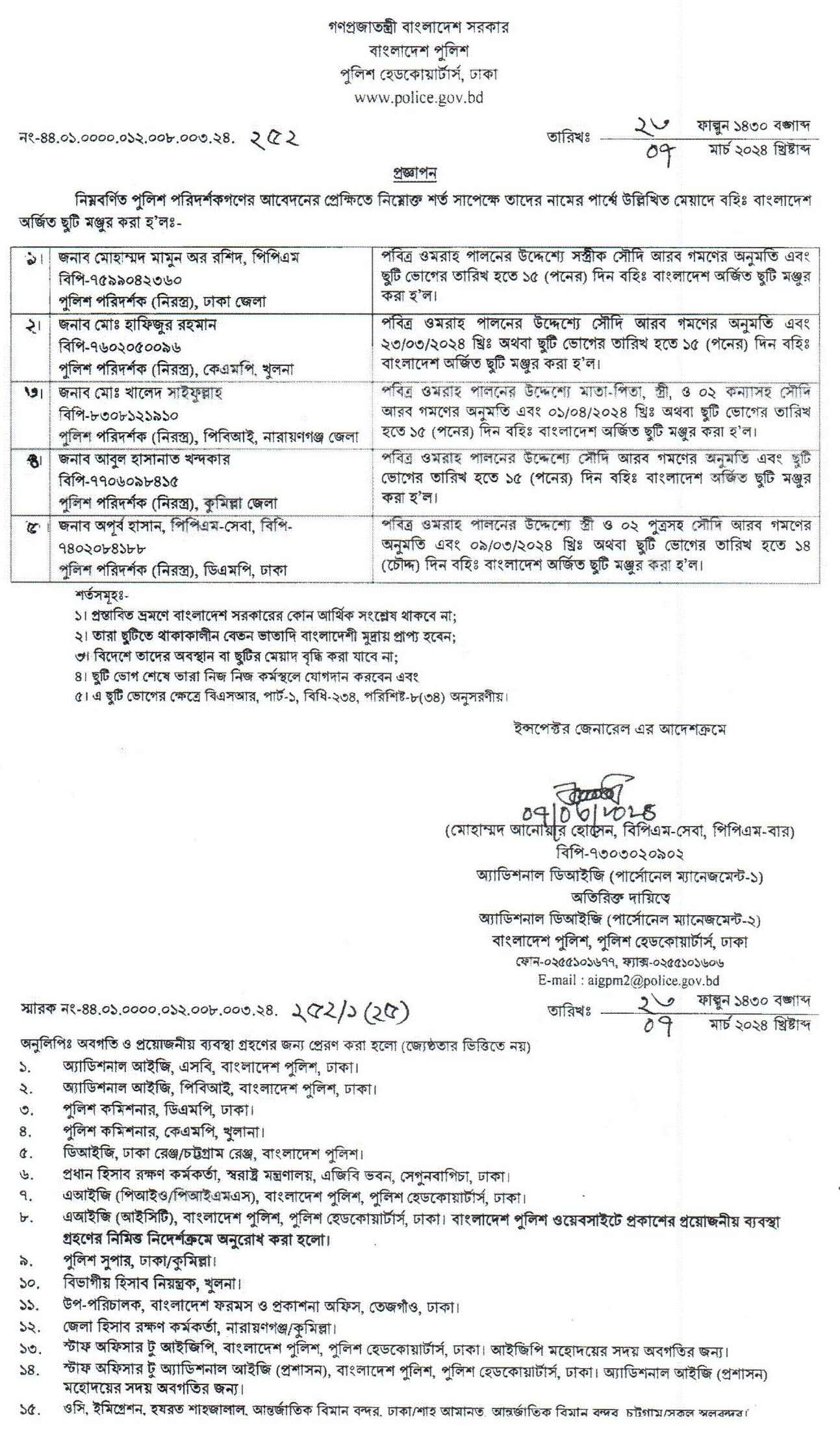 বহিঃ বাংলাদেশ ছুটি, প্রজ্ঞাপন নং- ২৫২, তারিখঃ ০৭/০৩/২০২৪ খ্রিঃ।