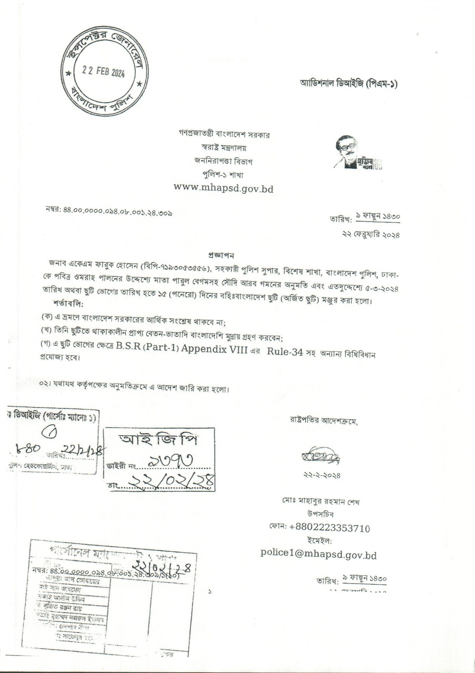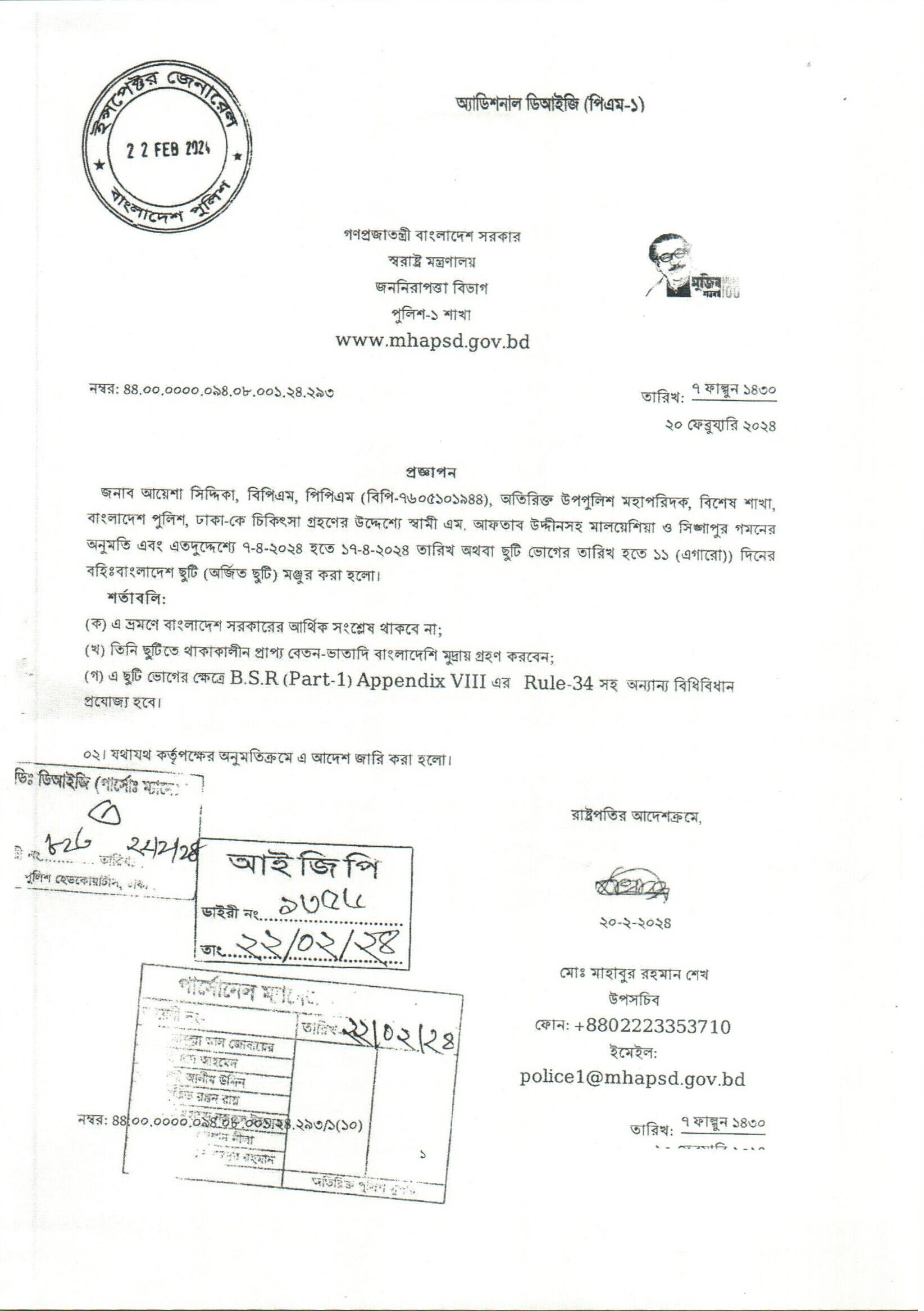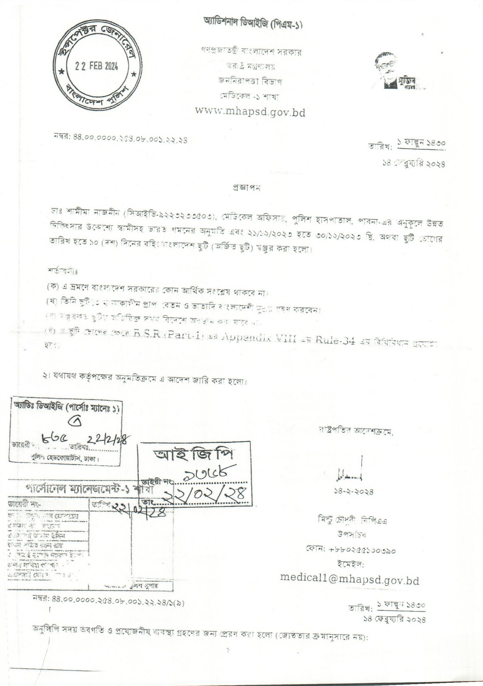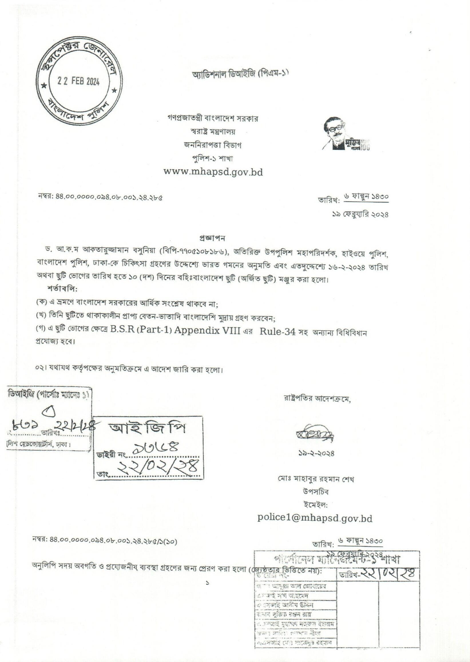 বহিঃ বাংলাদেশ ছুটি, প্রজ্ঞাপন নং- ২৭৬, তারিখঃ ১৯/০২/২০২৪ খ্রিঃ।
