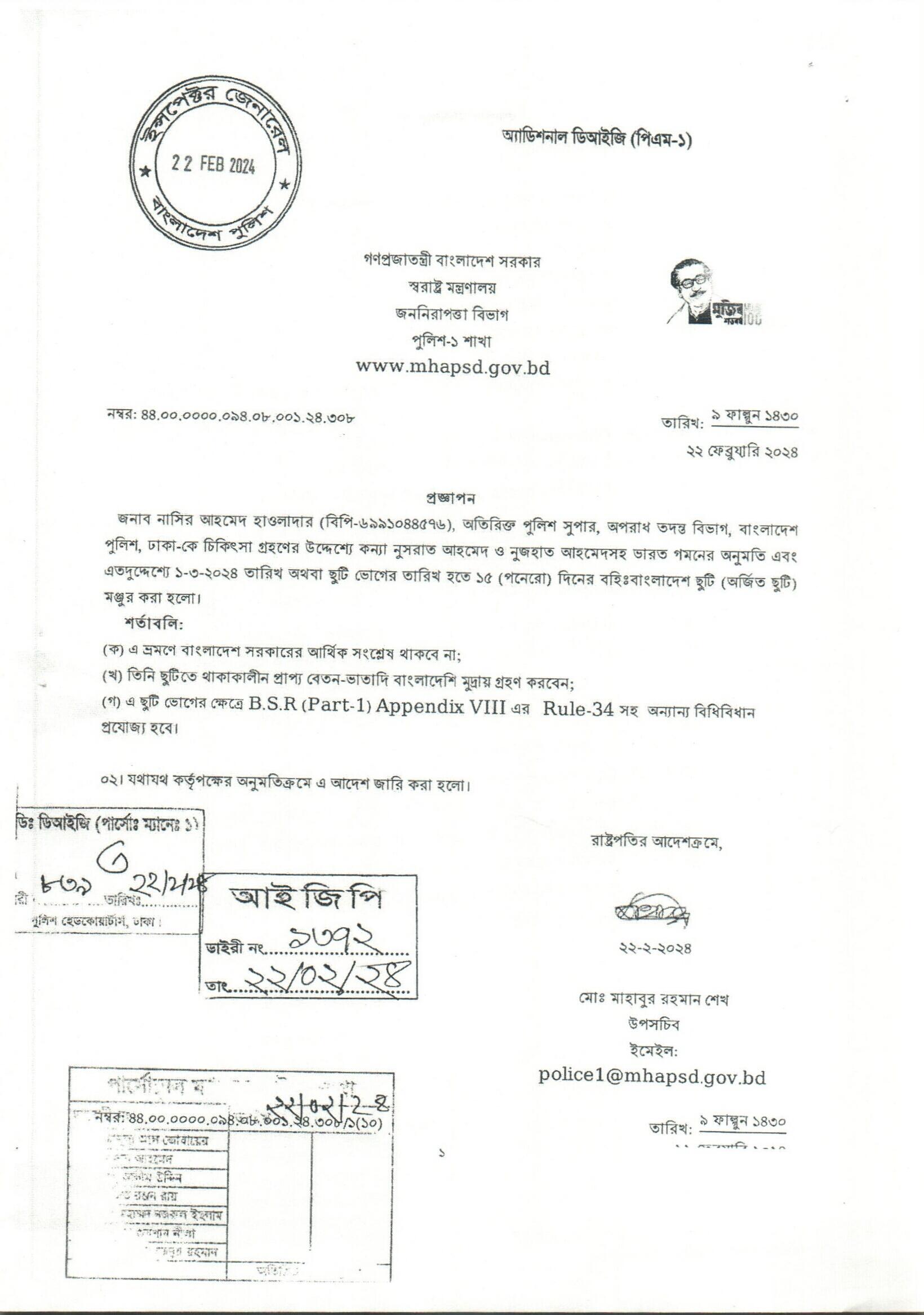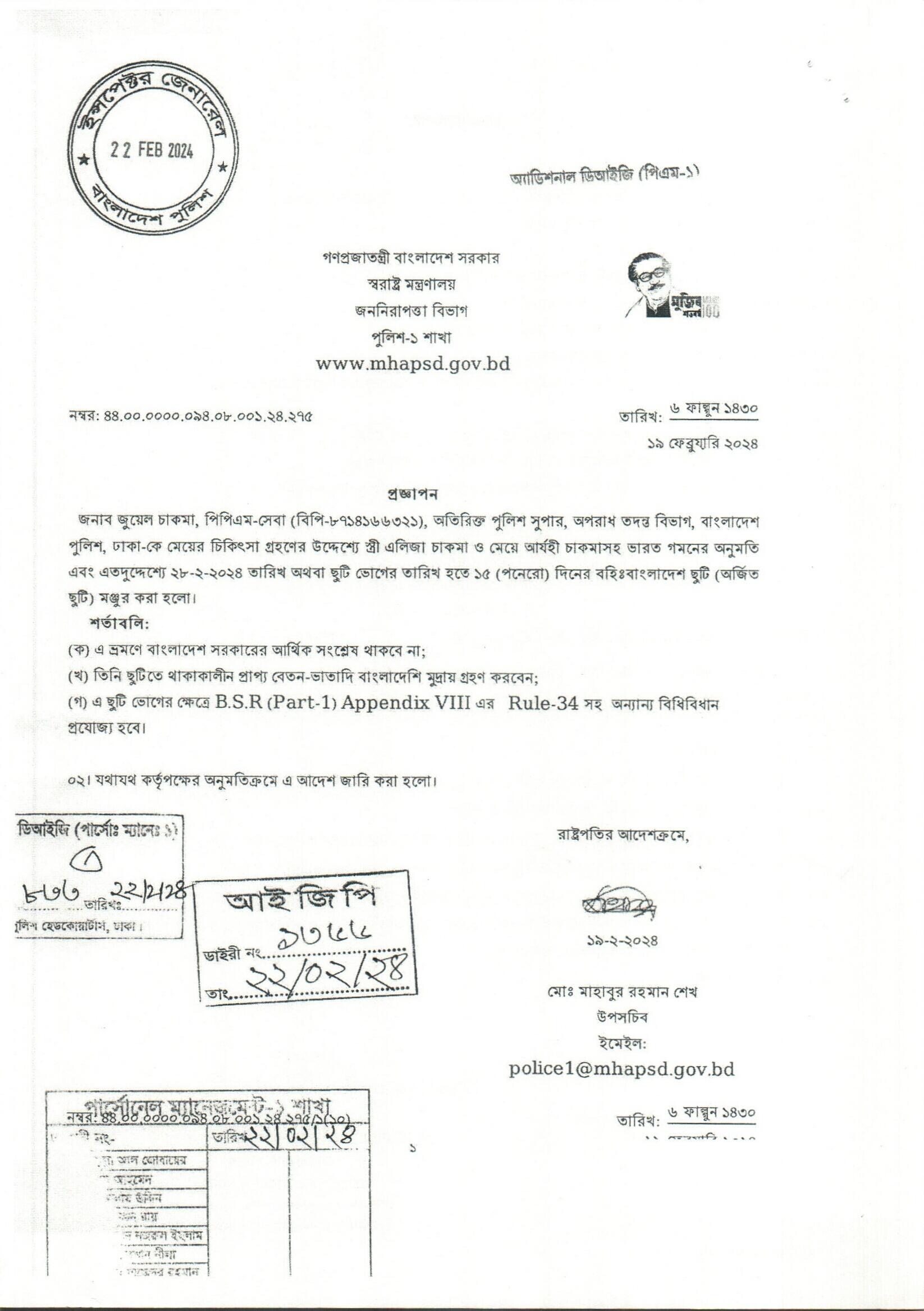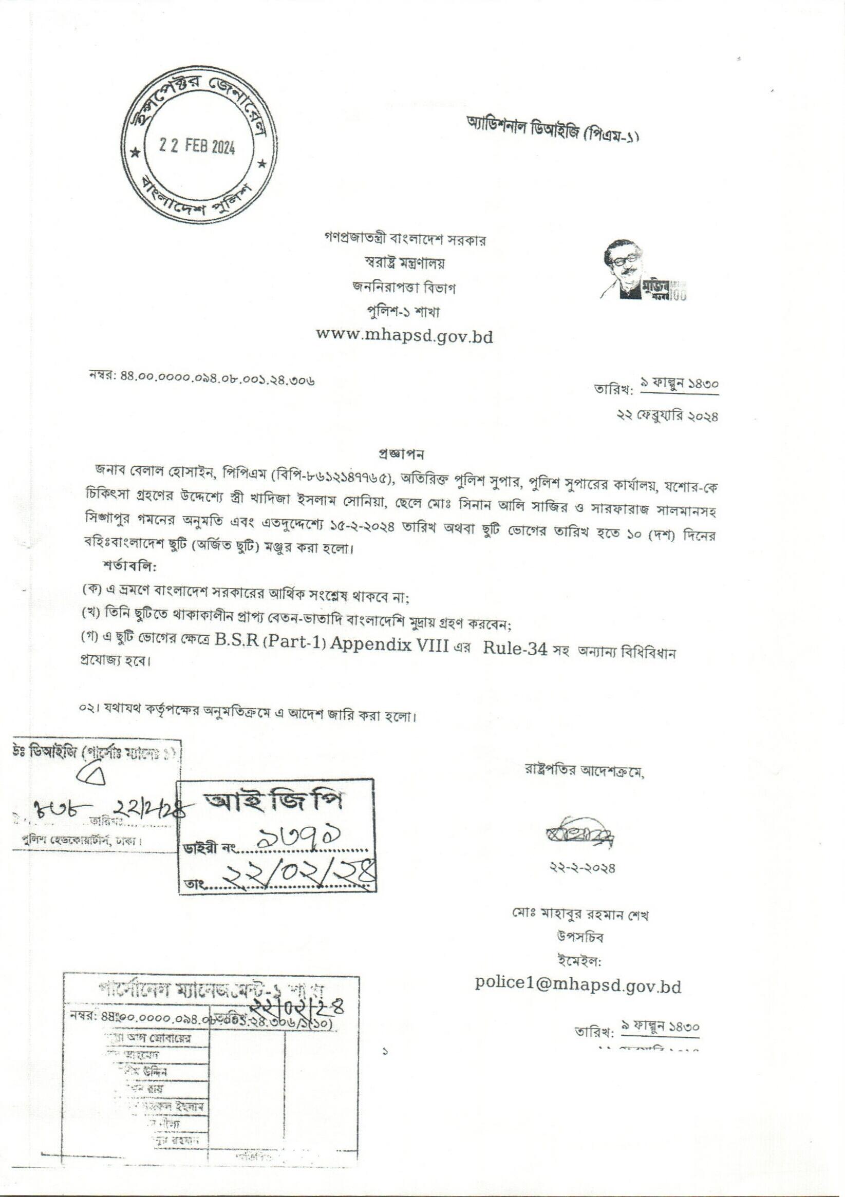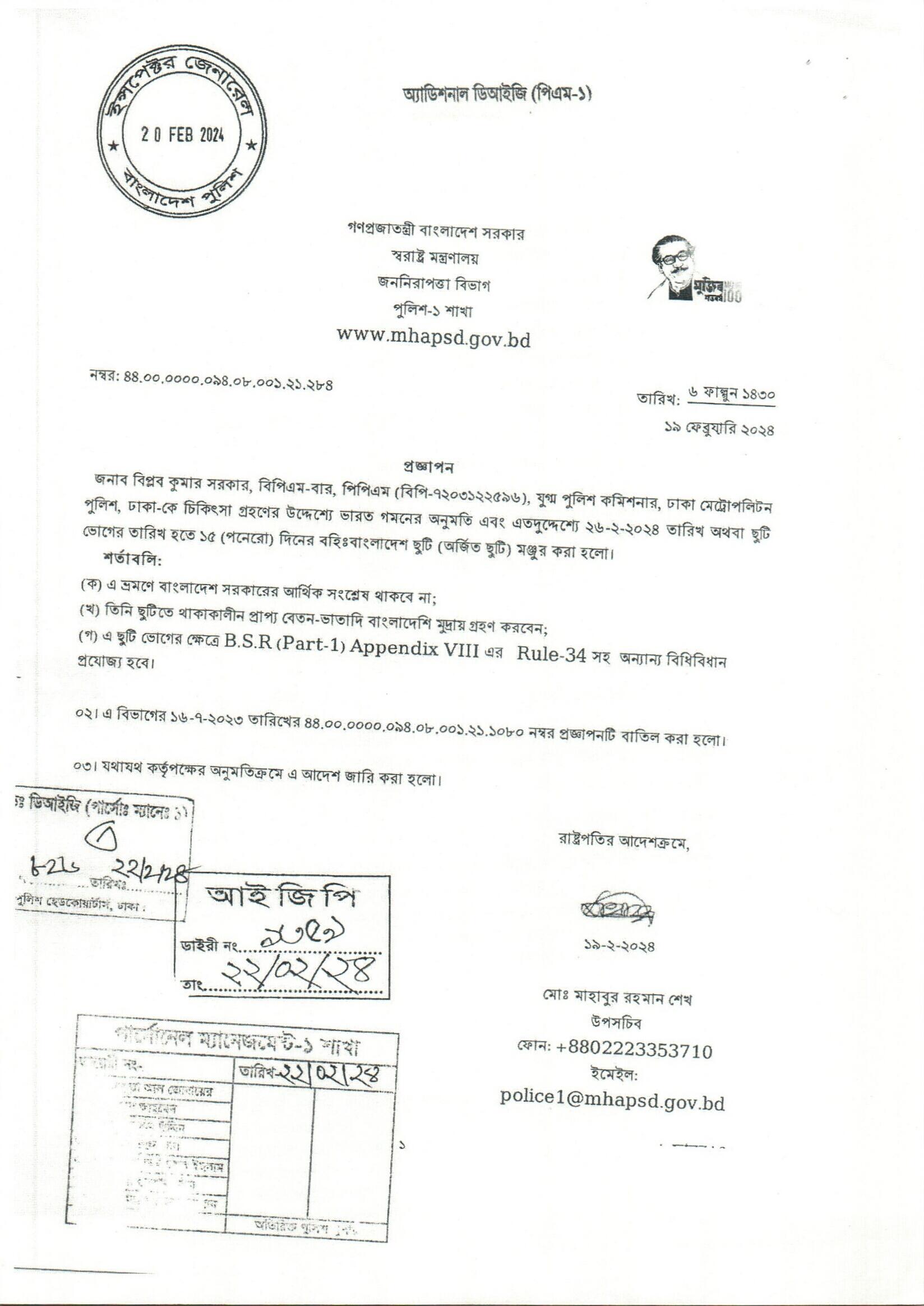বহিঃ বাংলাদেশ ছুটি, প্রজ্ঞাপন নং- ২৭৬, তারিখঃ ১৯/০২/২০২৪ খ্রিঃ।