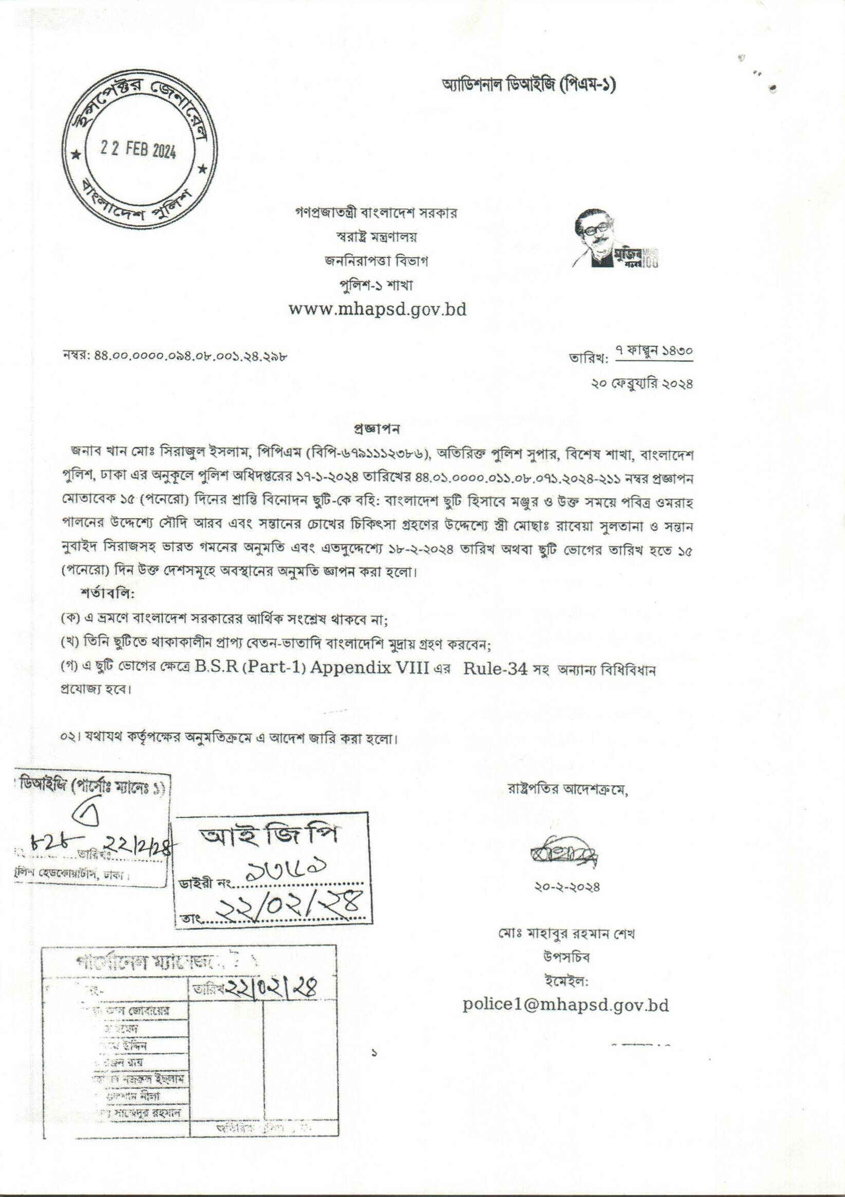 বহিঃ বাংলাদেশ ছুটি, প্রজ্ঞাপন নং- ২৫, তারিখঃ ২০/০২/২০২৪ খ্রিঃ।