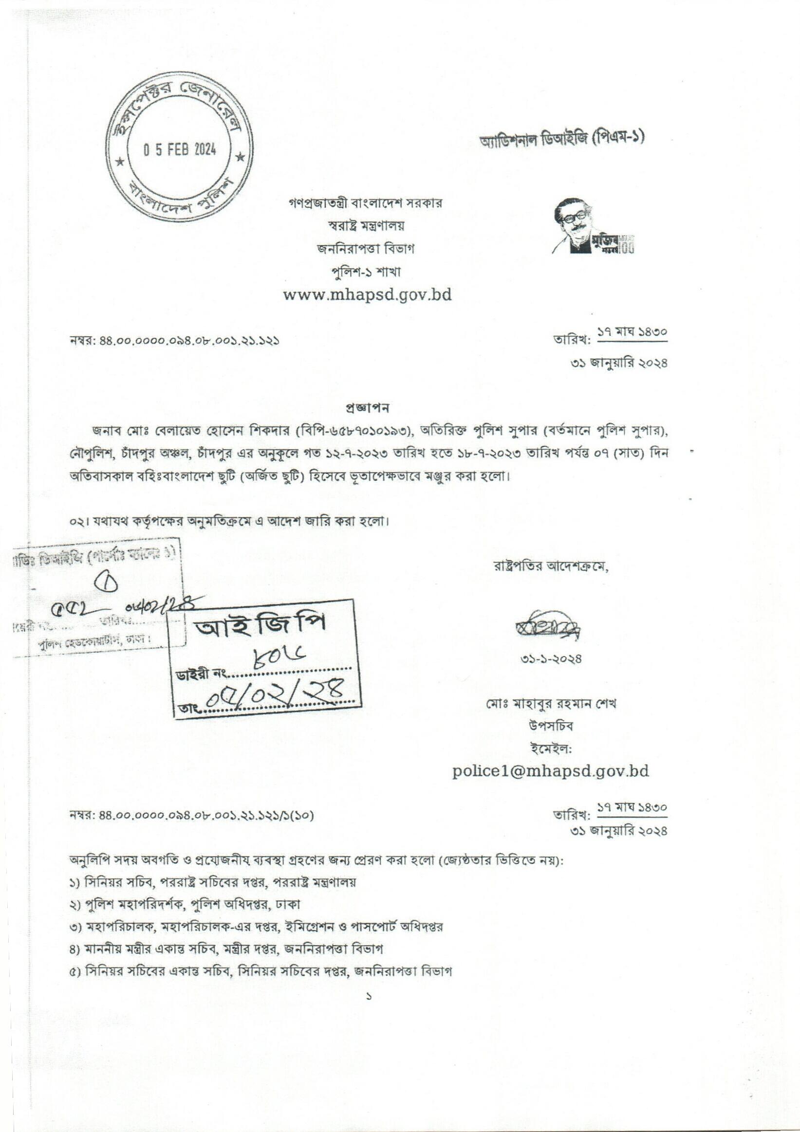 বহিঃ বাংলাদেশ ছুটি, প্রজ্ঞাপন নং- ১৪৫, তারিখঃ ৩০/০১/২০২৪ খ্রিঃ।