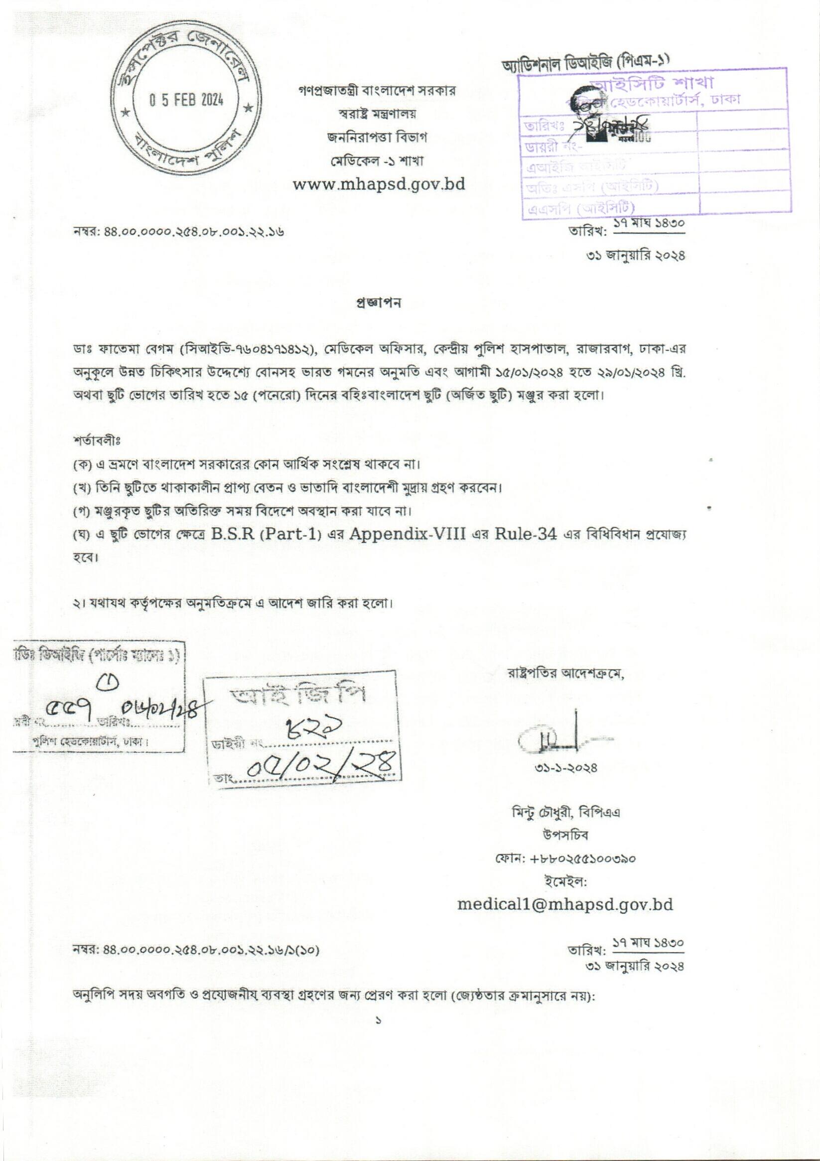 বহিঃ বাংলাদেশ ছুটি, প্রজ্ঞাপন নং- ১৫৩, তারিখঃ ৩১/০১/২০২৪ খ্রিঃ।