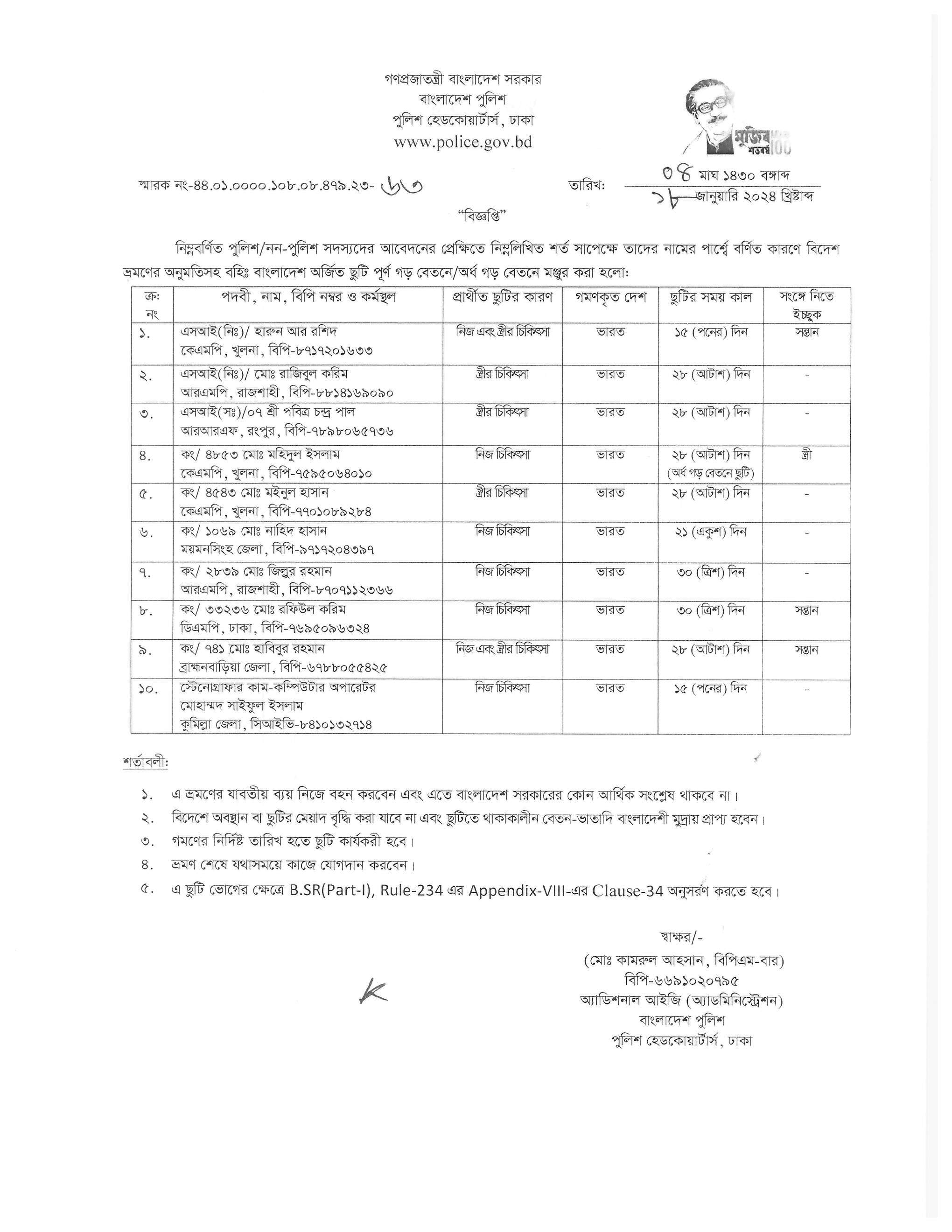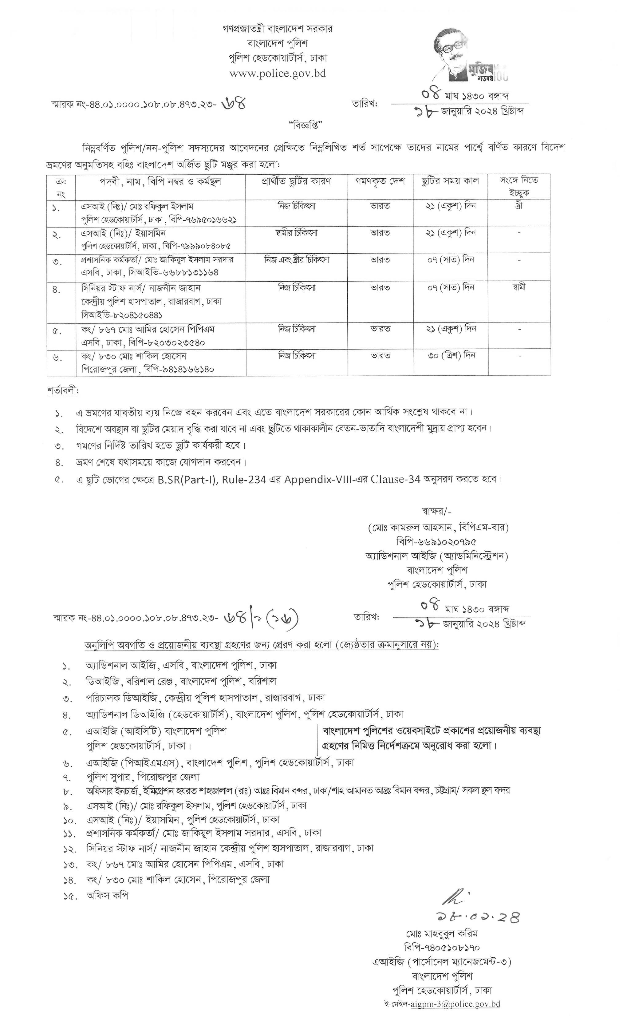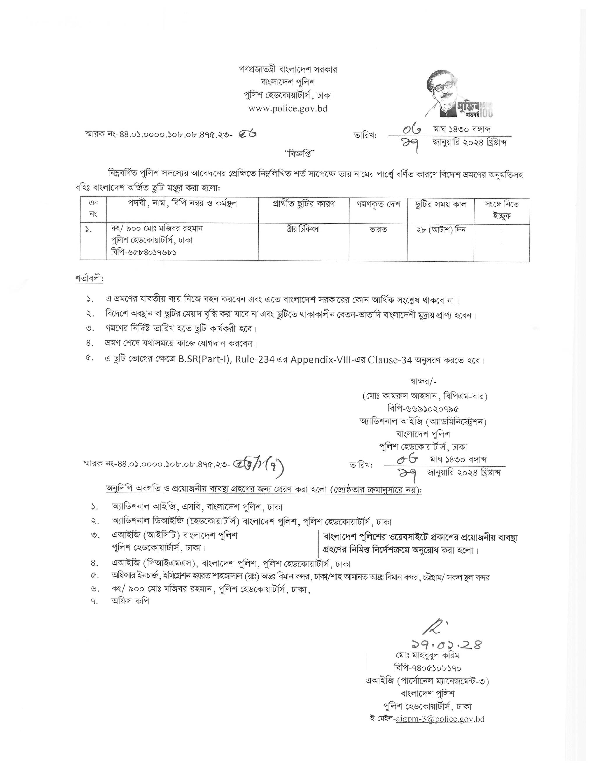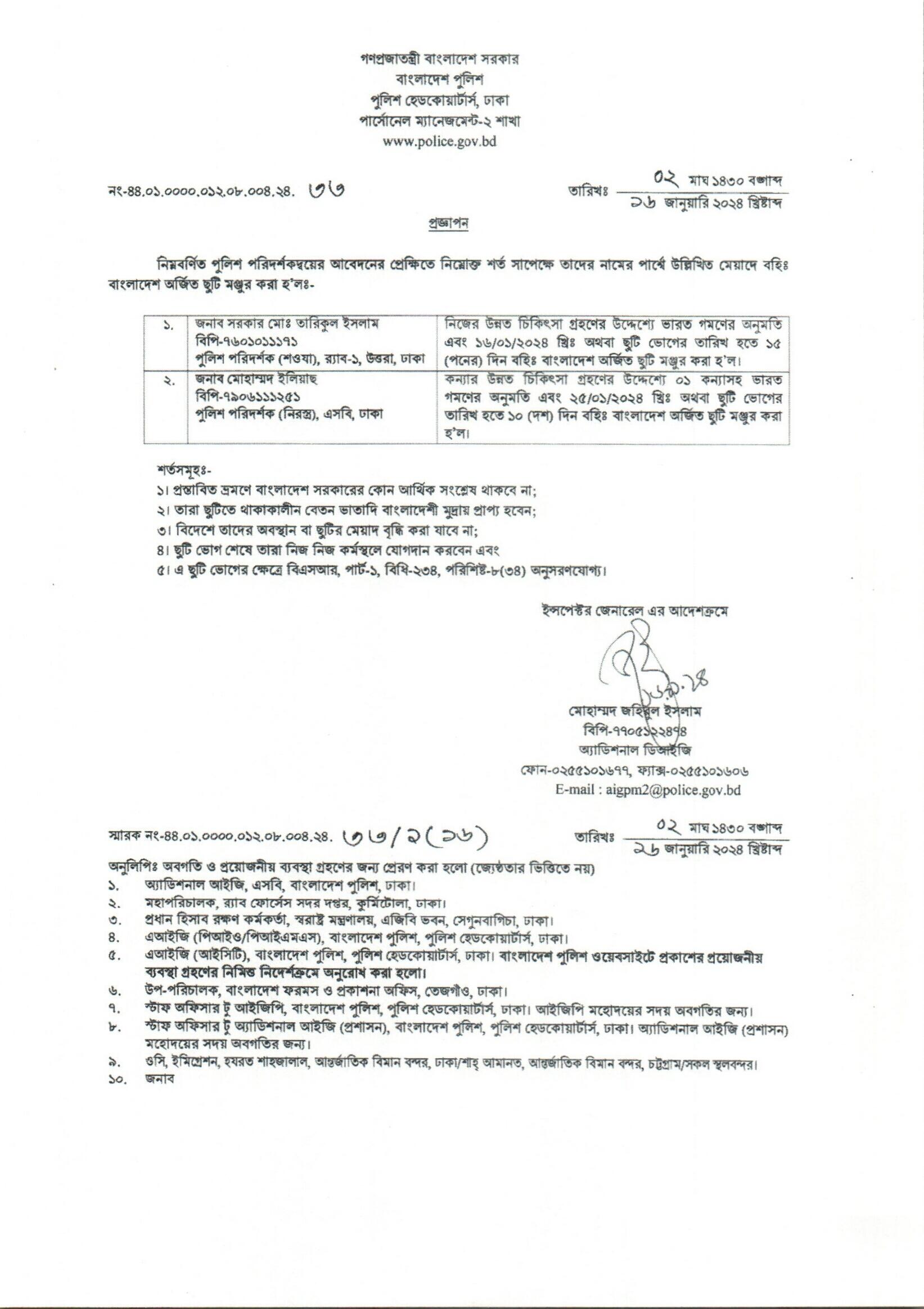 বহিঃ বাংলাদেশ ছুটি, বিজ্ঞপ্তি নং- ৪৯, তারিখঃ ১৬/০১/২০২৪ খ্রিঃ।
