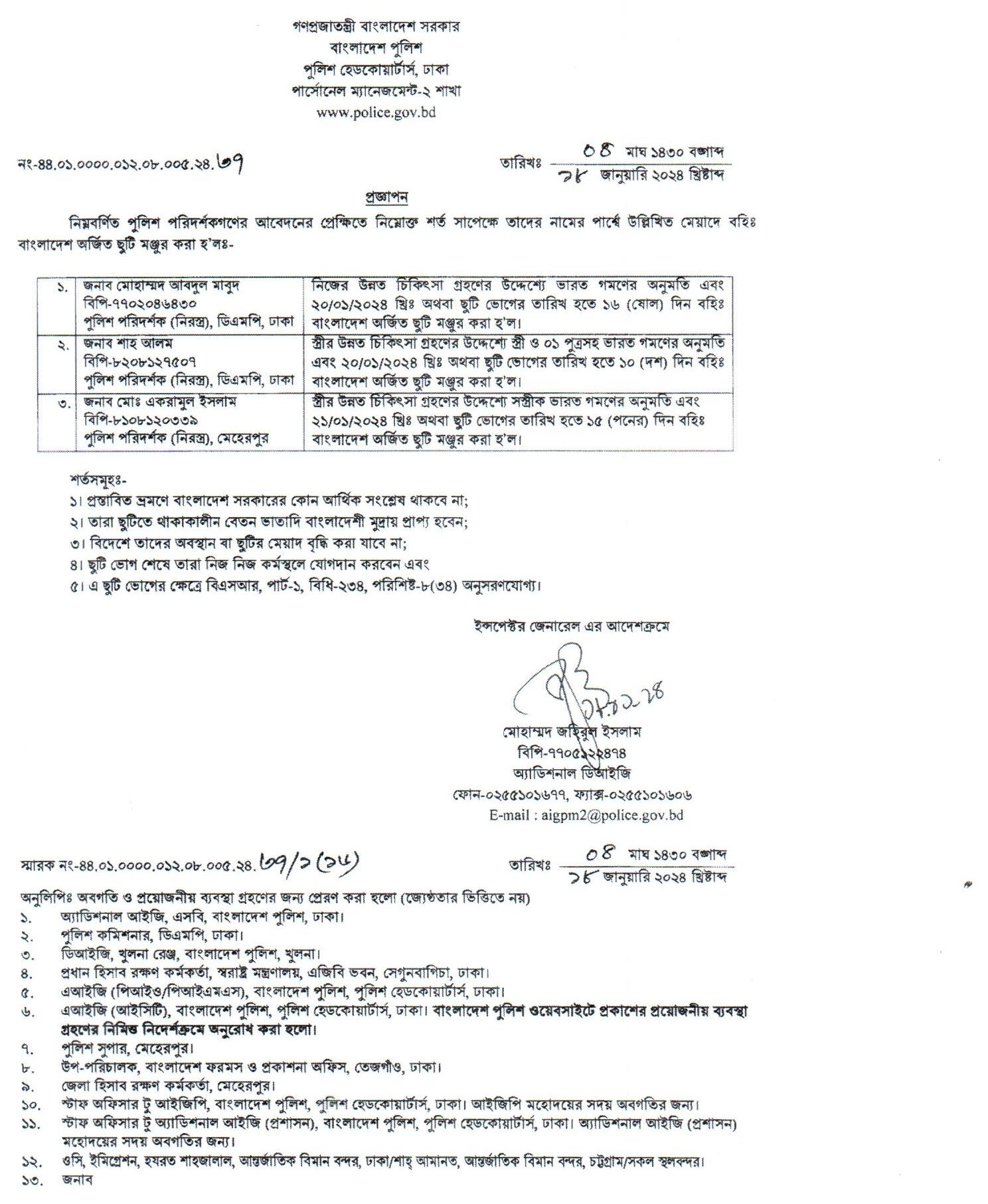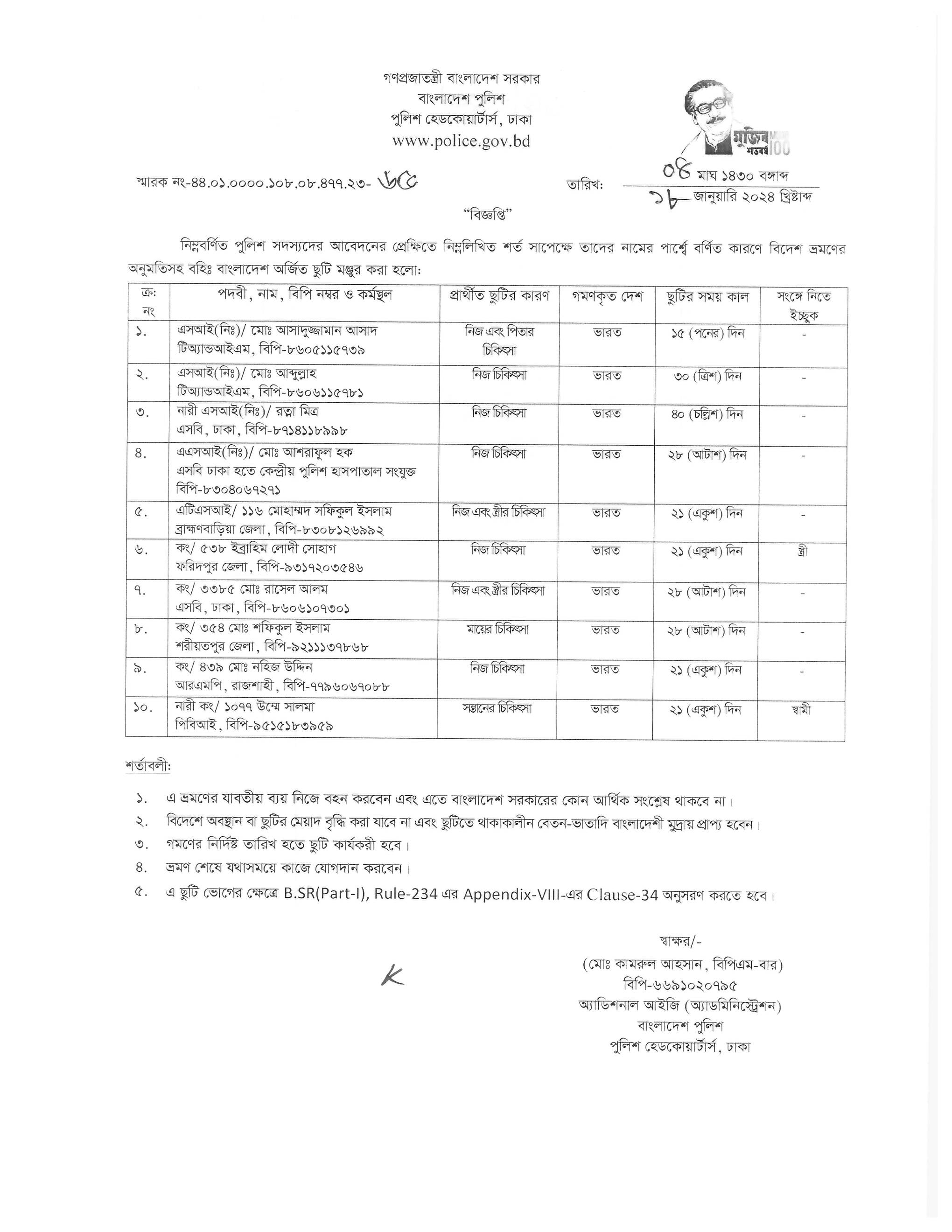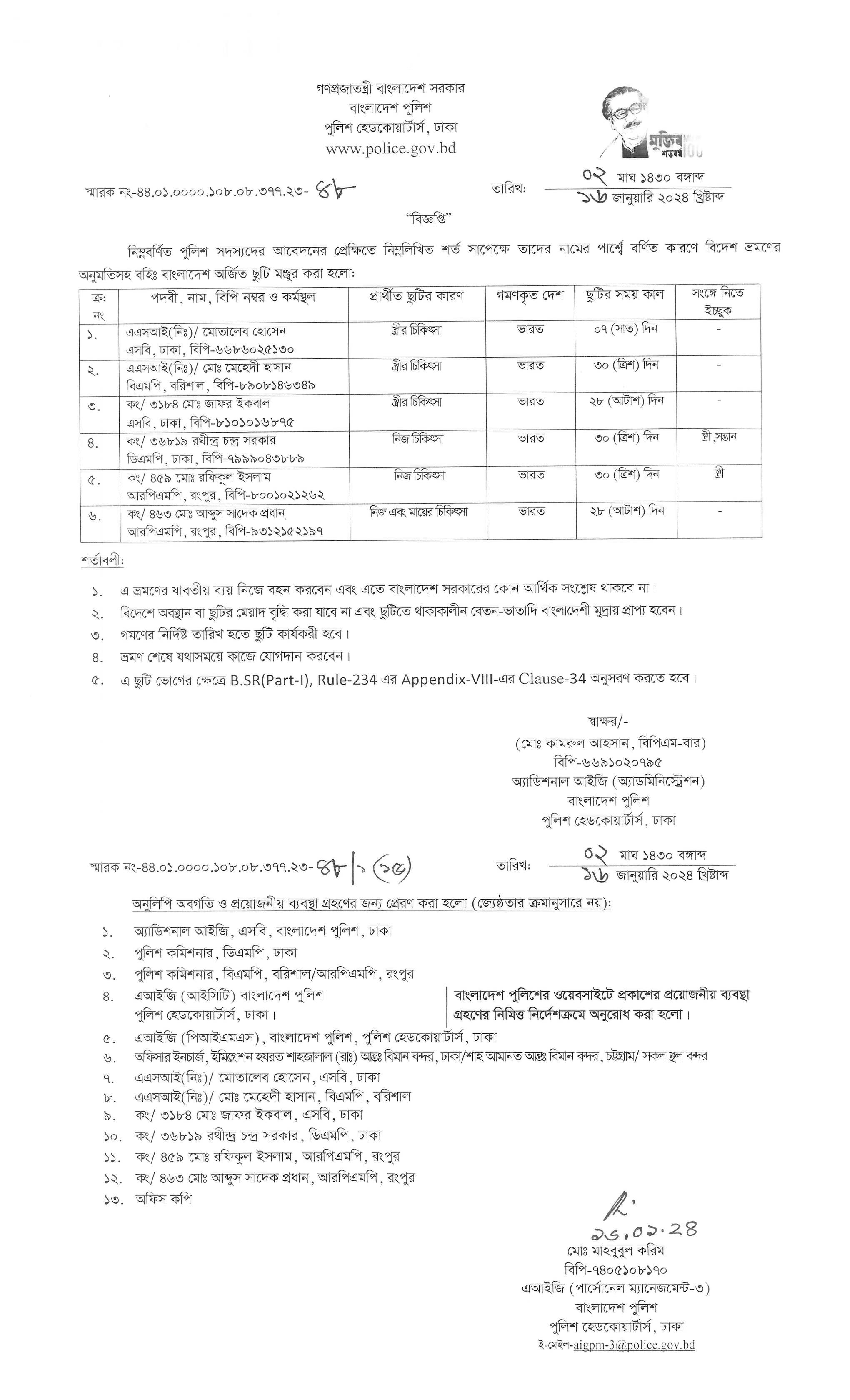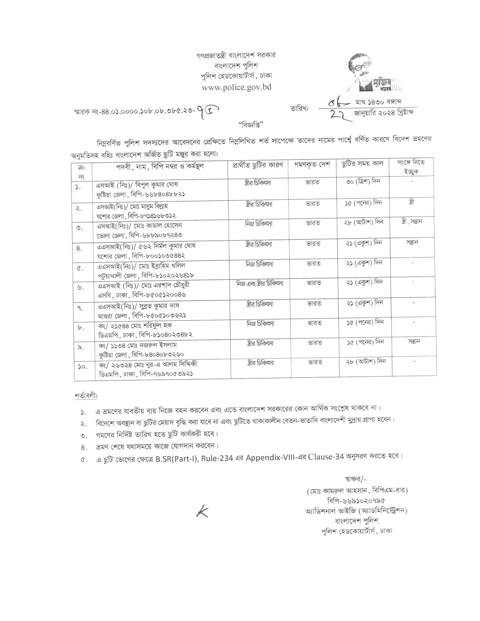 বহিঃ বাংলাদেশ ছুটি, বিজ্ঞপ্তি নং- ৪৯, তারিখঃ ১৬/০১/২০২৪ খ্রিঃ।