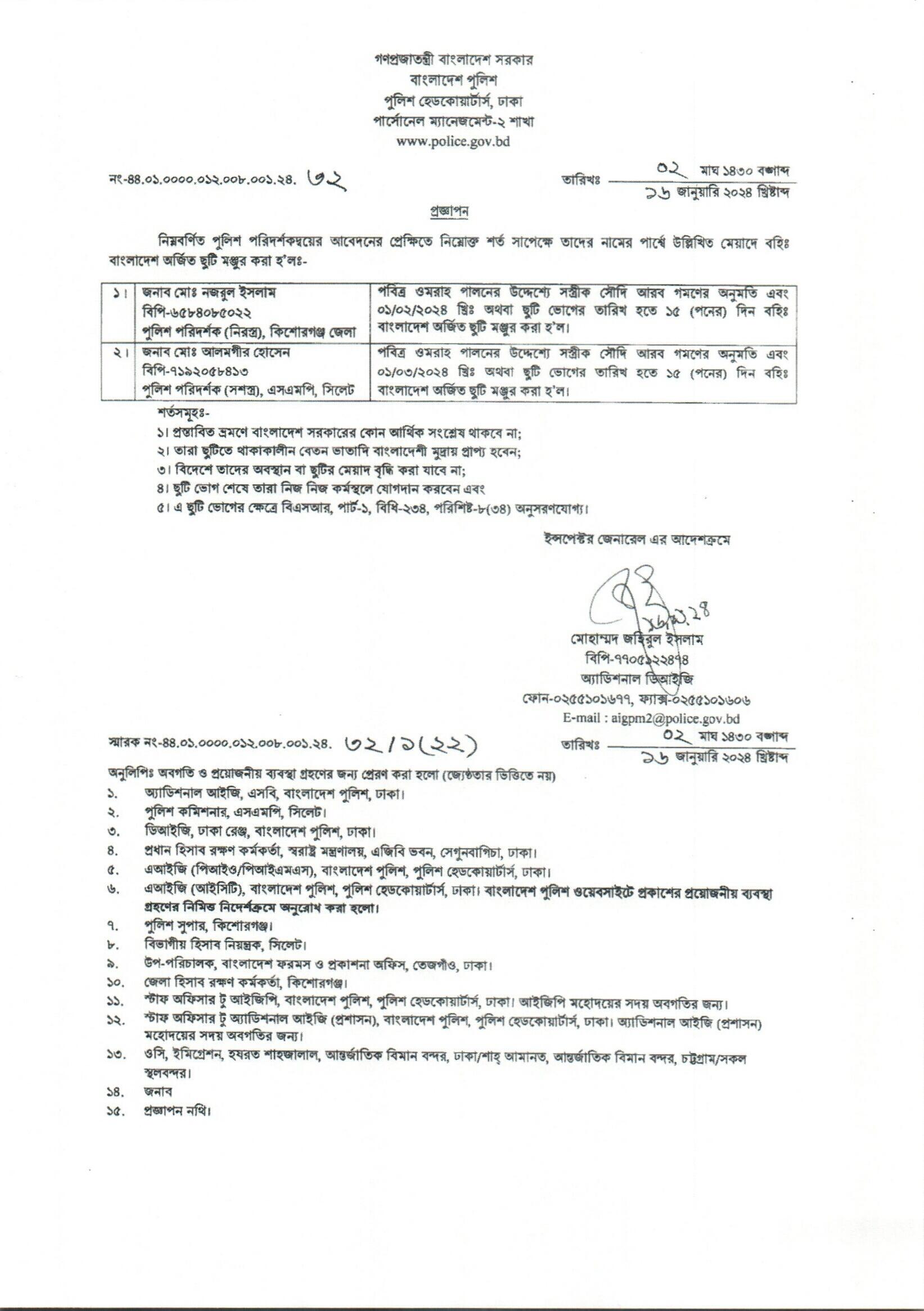 বহিঃ বাংলাদেশ ছুটি, প্রজ্ঞাপন নং- ৩২, তারিখঃ ১৬/০১/২০২৪ খ্রিঃ।