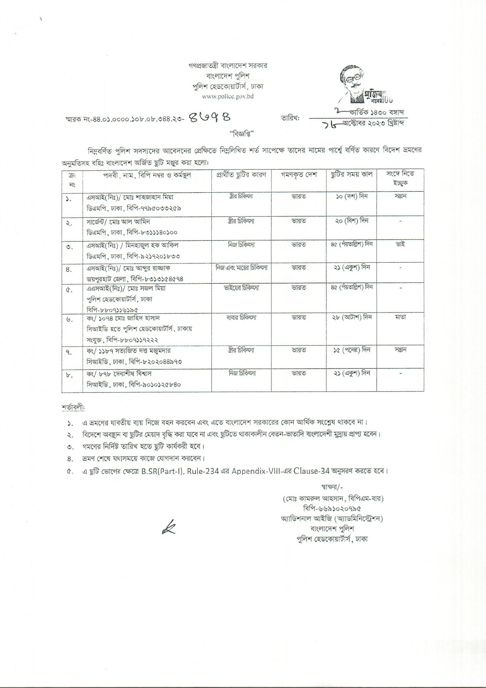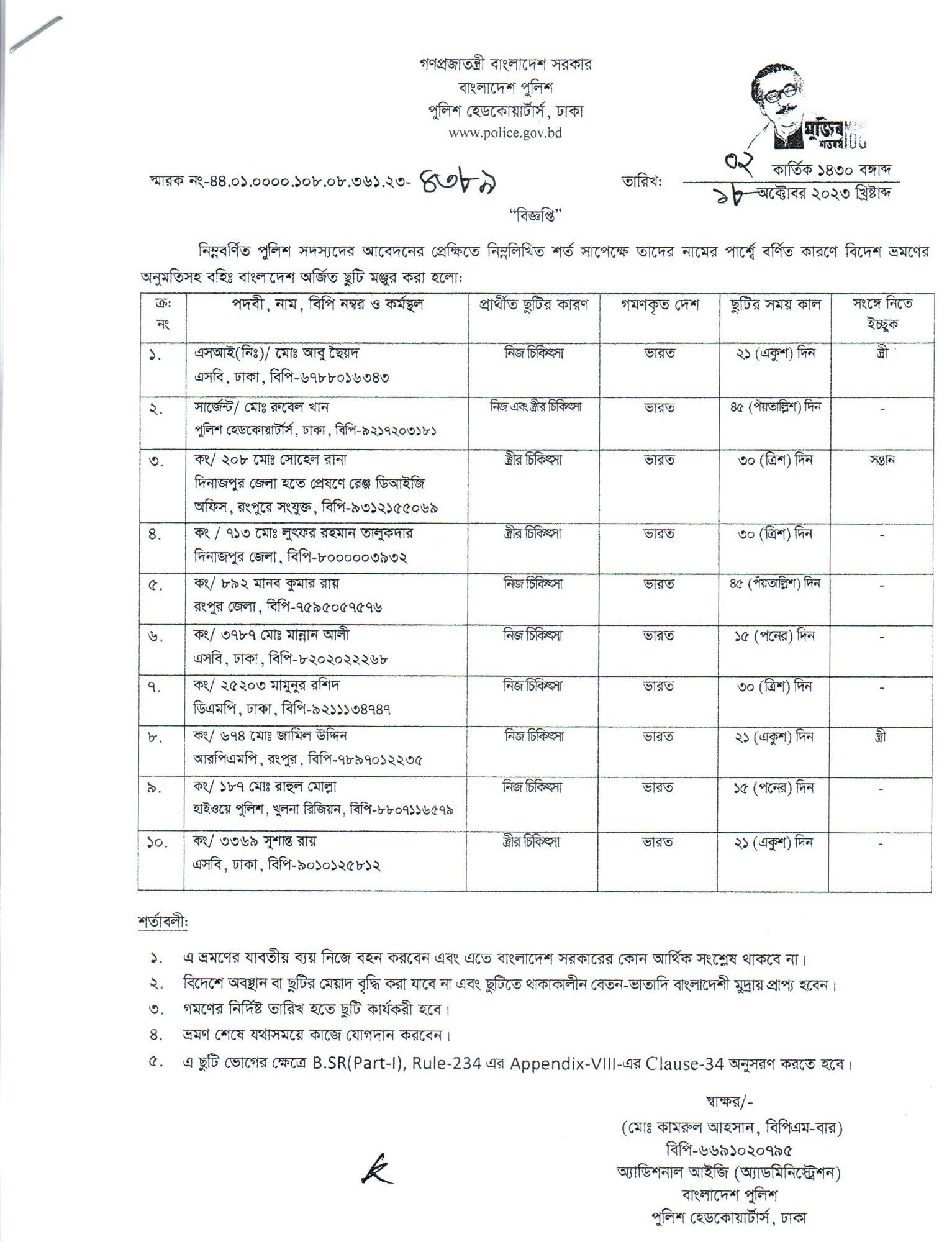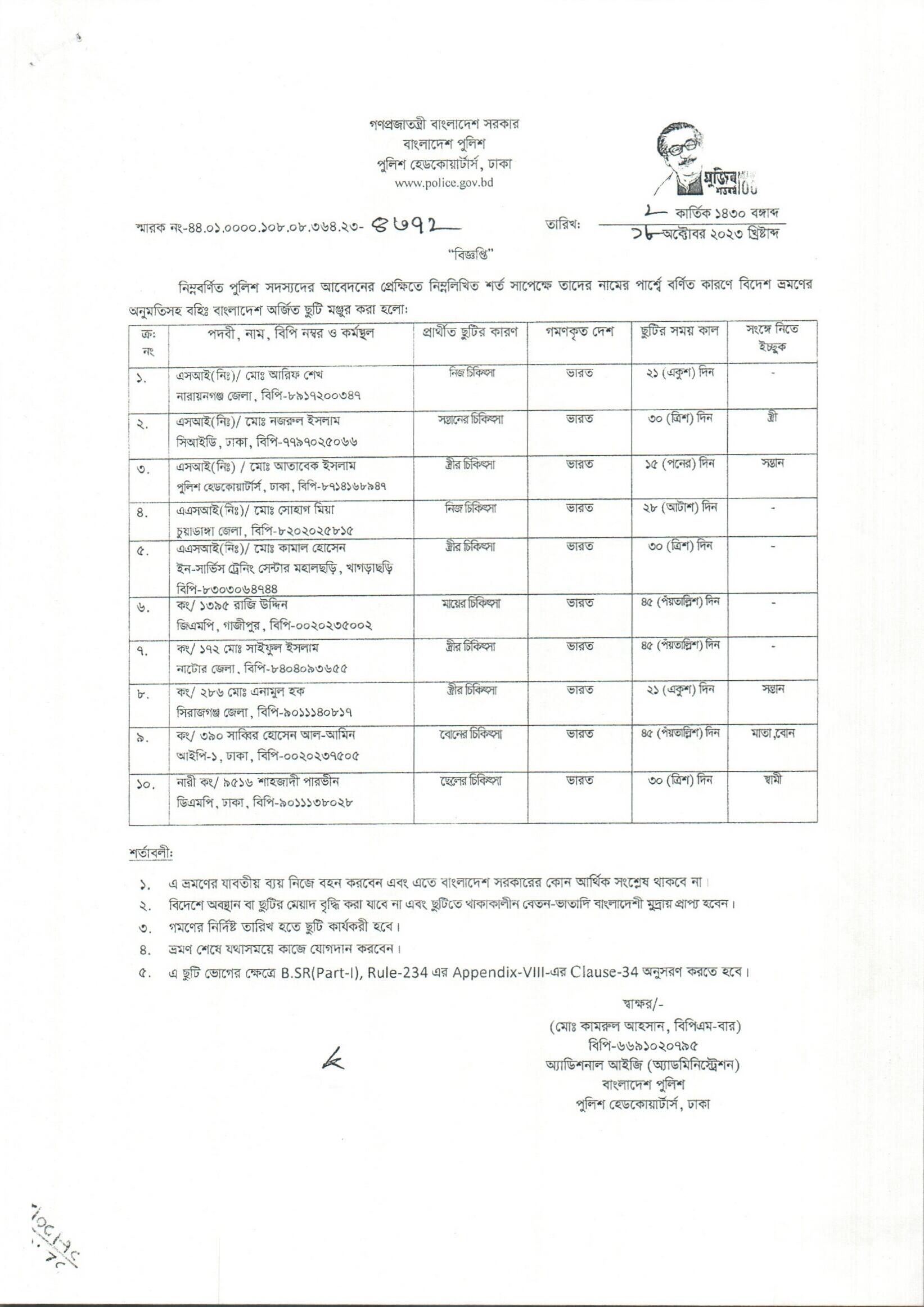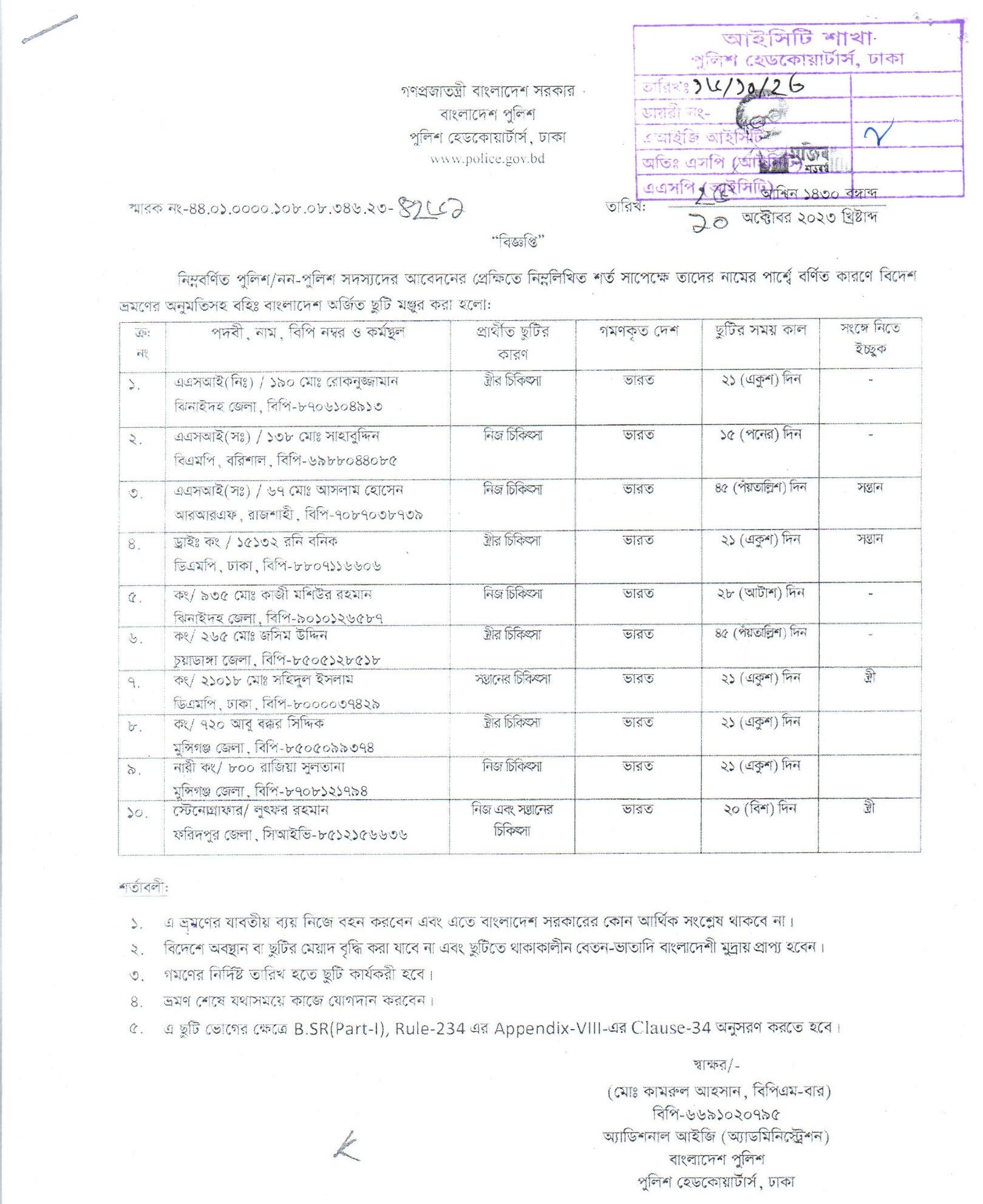 বহিঃ বাংলাদেশ ছুটি, বিজ্ঞপ্তি নং-৪২৩২ তারিখঃ ০৯/১০/২০২৩ খ্রিঃ।
