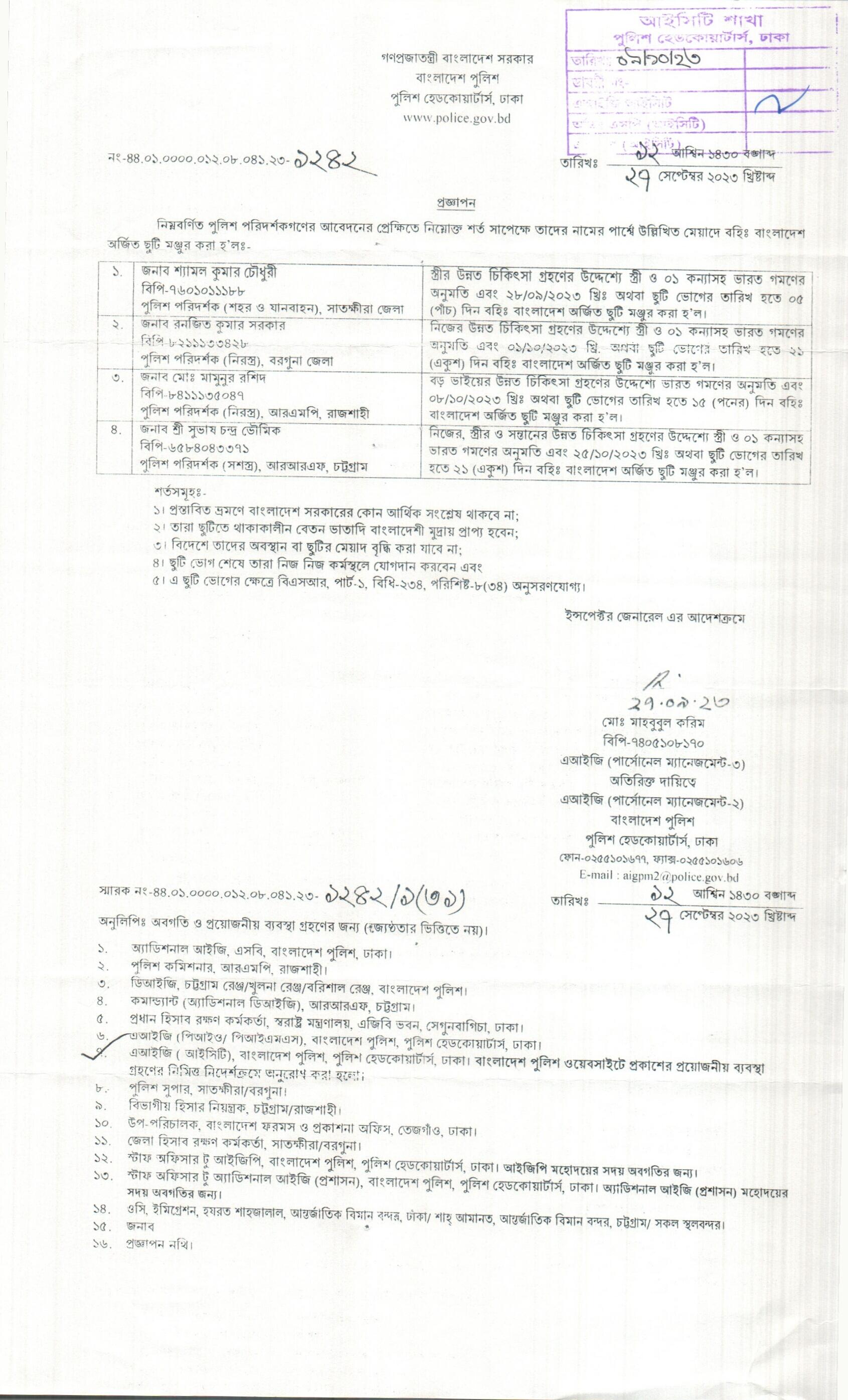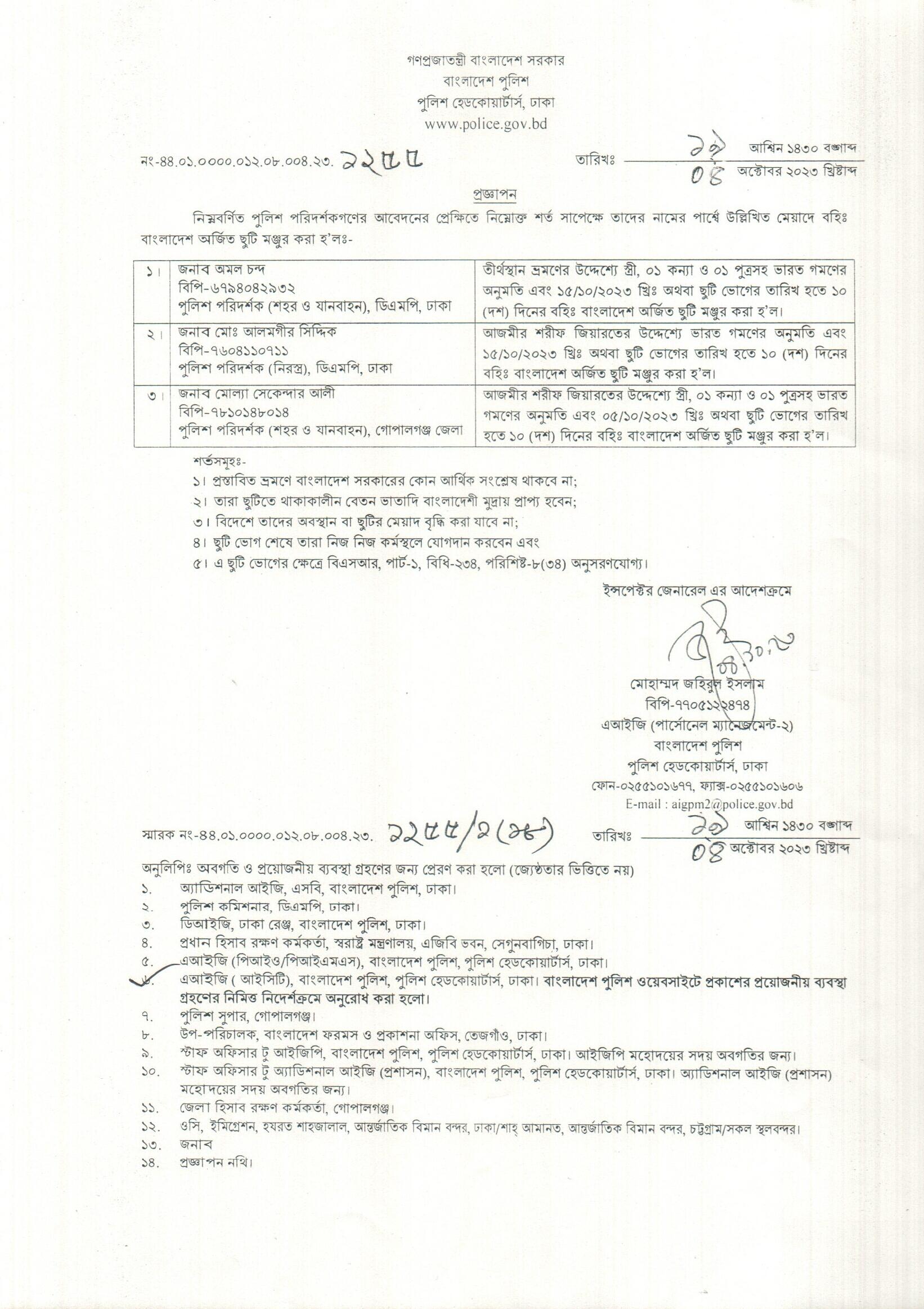 বহিঃ বাংলাদেশ ছুটি, বিজ্ঞপ্তি নং-৪১৩৫ তারিখঃ ০৩/১০/২০২৩ খ্রিঃ।