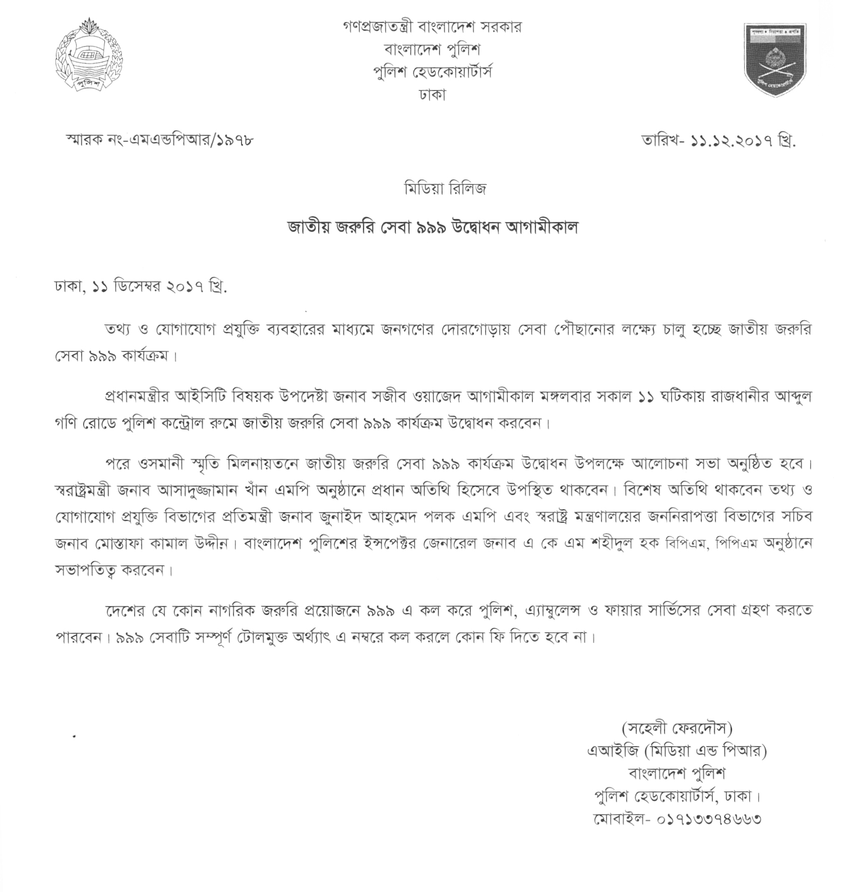 | 268 | Press Release 2017 | 11-12-2017 | View |