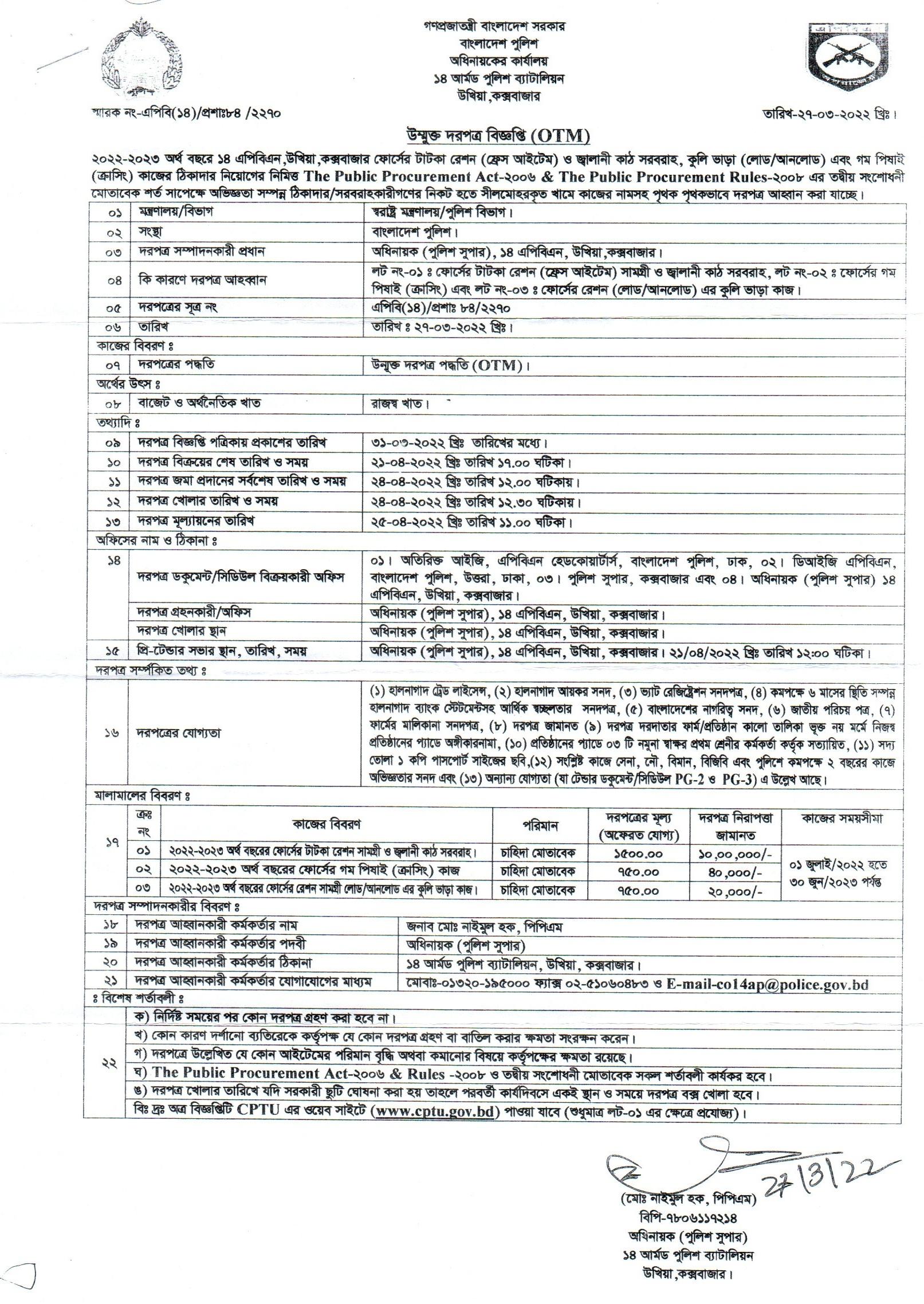 | 1344 | দরপত্র বিজ্ঞপ্তি, ট্যুরিস্ট পুলিশ। | 25-04-2022 | 25-04-2022 | View | Download |