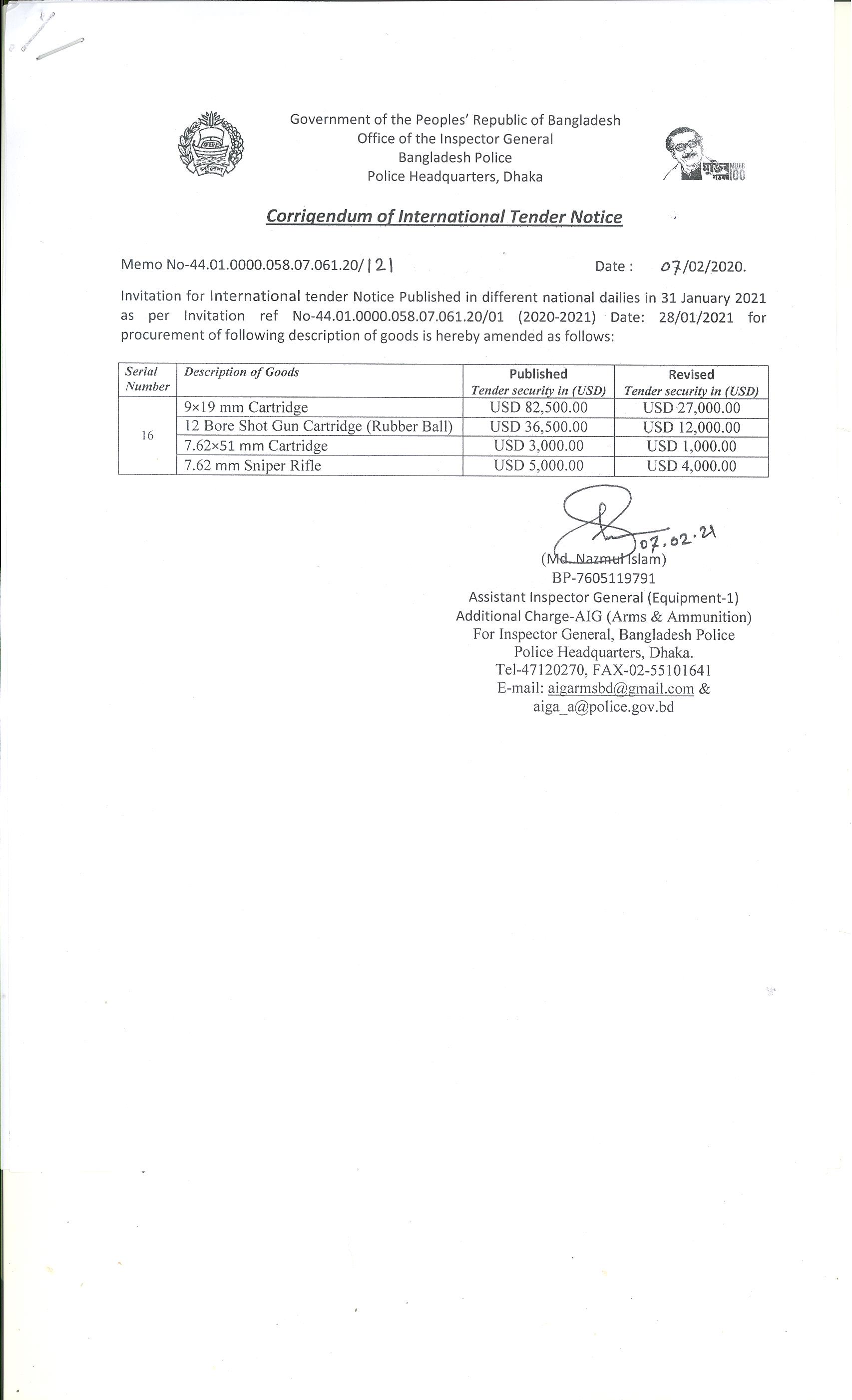 | 1723 | To Purchase (Arms & Ammunition) for Bangladesh Police. (PHQ) | 22-03-2021 | 22-03-2021 | View | Download |
