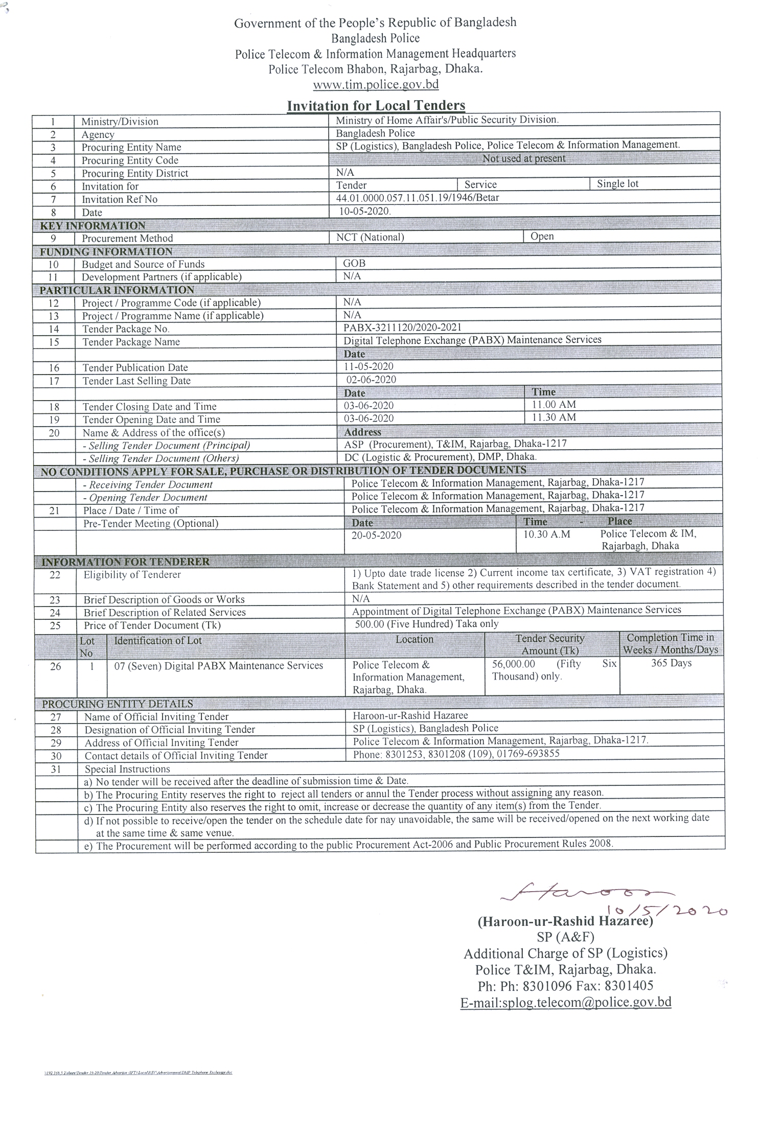 | 1930 | Invitation for Local Tender. (T&IM, Rajarbag, Dhaka) | 03-06-2020 | 03-06-2020 | View | Download |