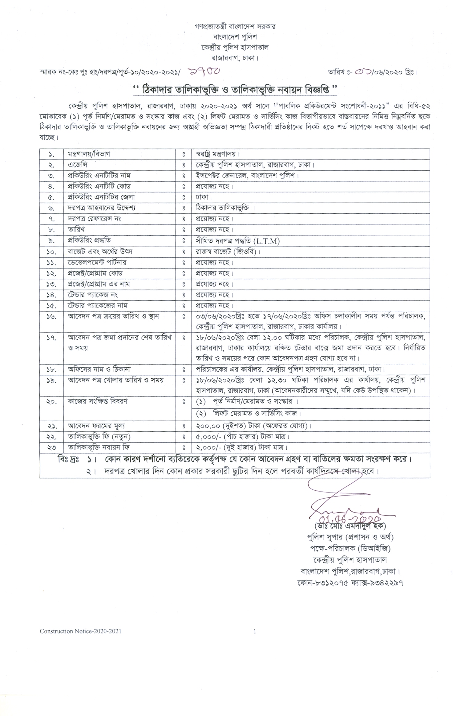 | 1932 | ১। পূর্ত নির্মান/ মেরামত ও সংস্কার। ২। লিফট মেরামত ও সার্ভিসিং(কেন্দ্রীয় পুলিশ হাসঃ ঢাকা) | 18-06-2020 | 18-06-2020 | View | Download |