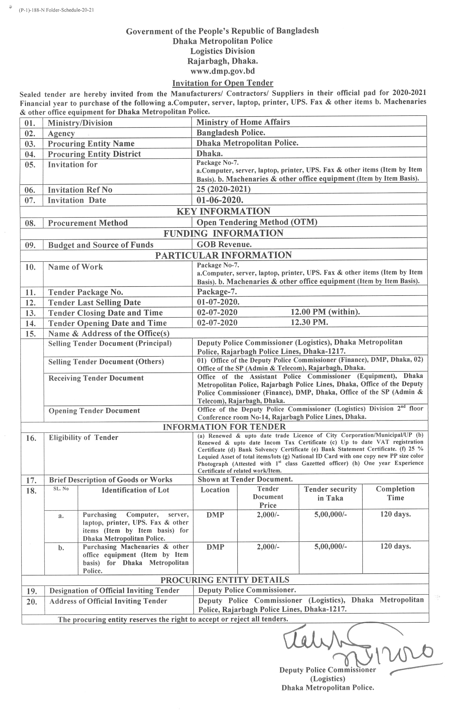 | 1933 | Invitation for open Tender,(DMP,Dhaka) | 02-07-2020 | 02-07-2020 | View | Download |
