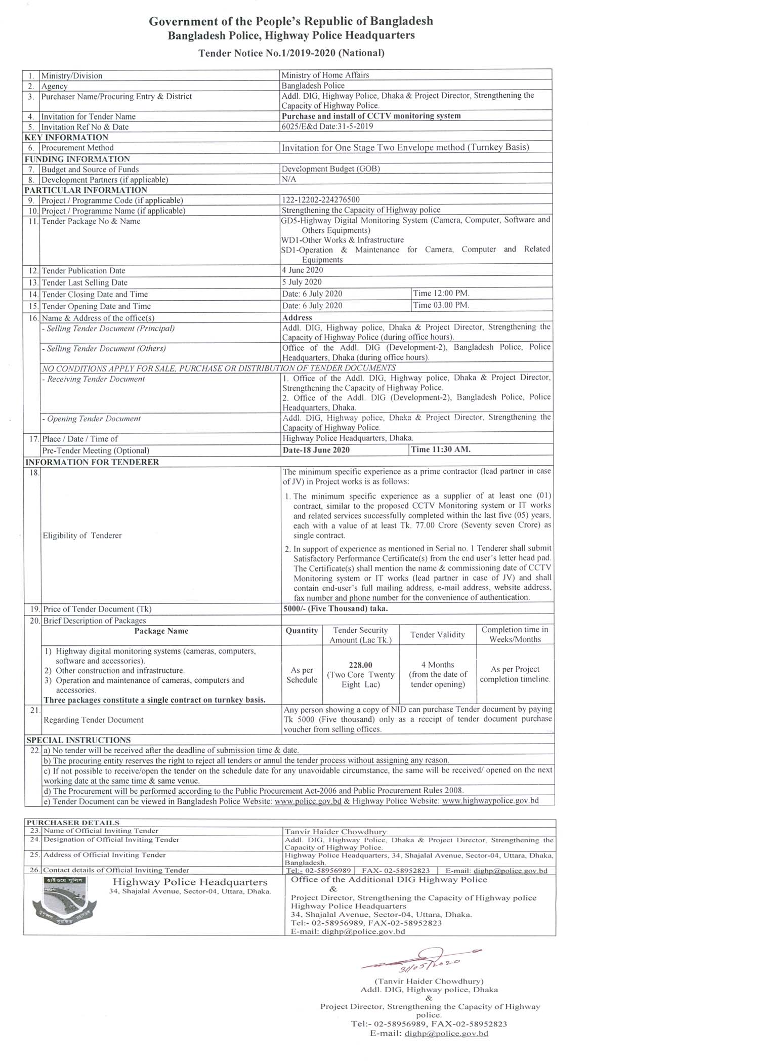 | 1934 | Purchase and install of CCTV monitoring system.(Highway Police HQ) | 06-07-2020 | 06-07-2020 | View | Download |