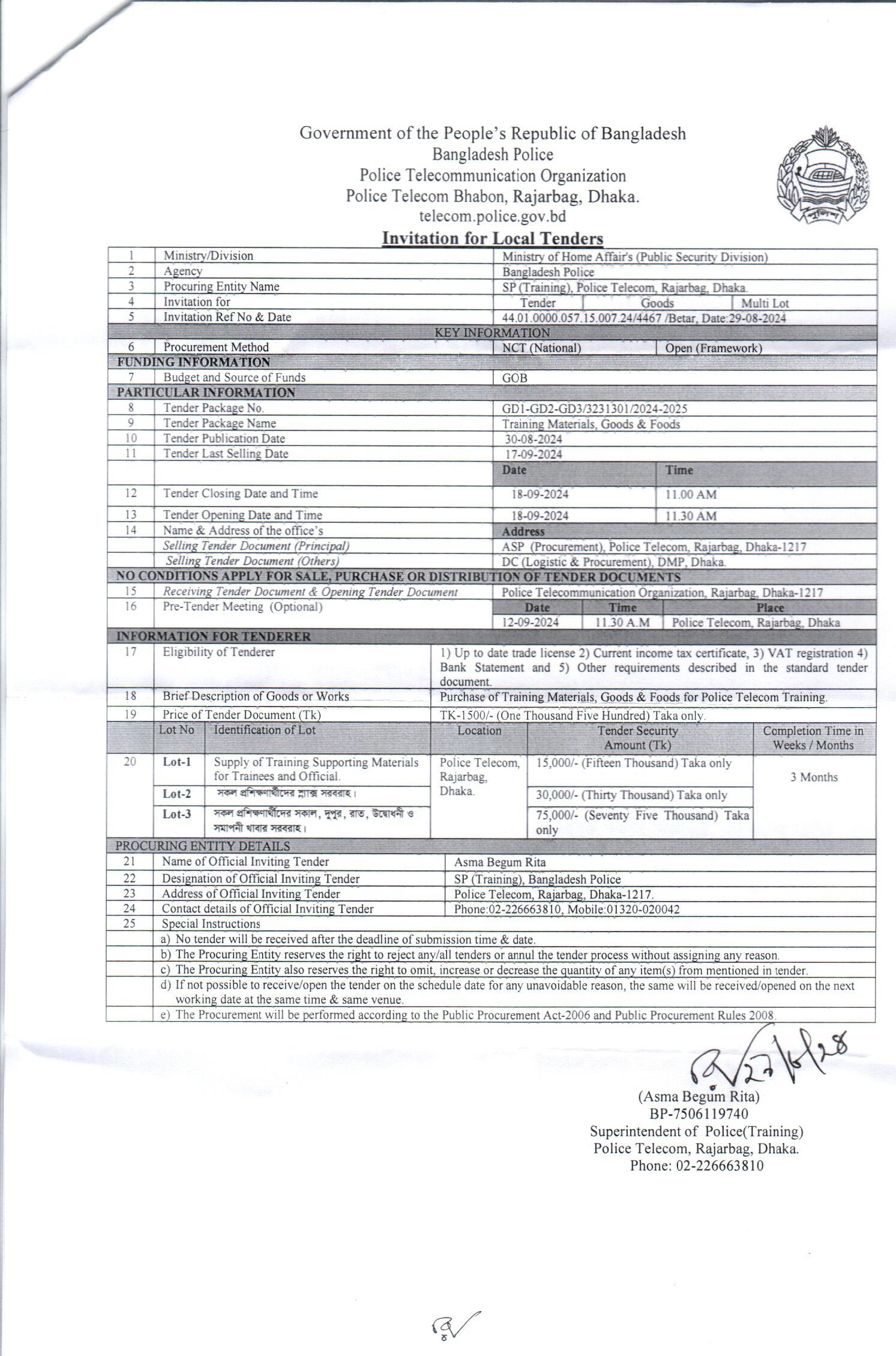 | 434 | Purchase of Training Materials, Goods & Foods (Telecom, Dhaka) | 18-09-2024 | 18-09-2024 | View | Download |