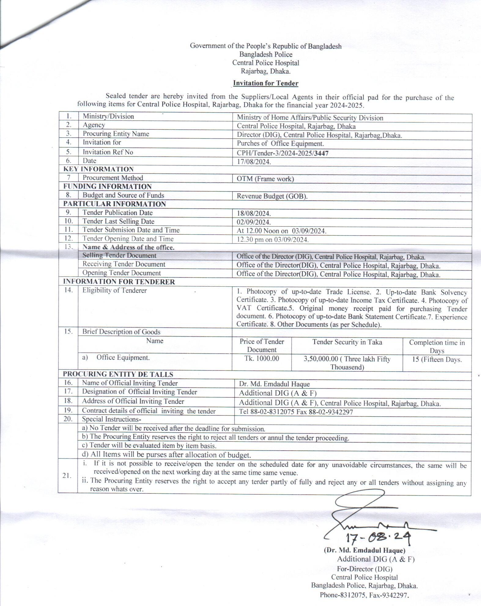 | 449 | Purchase of Office Equipment (CPH, Dhaka) | 03-09-2024 | 03-09-2024 | View | Download |