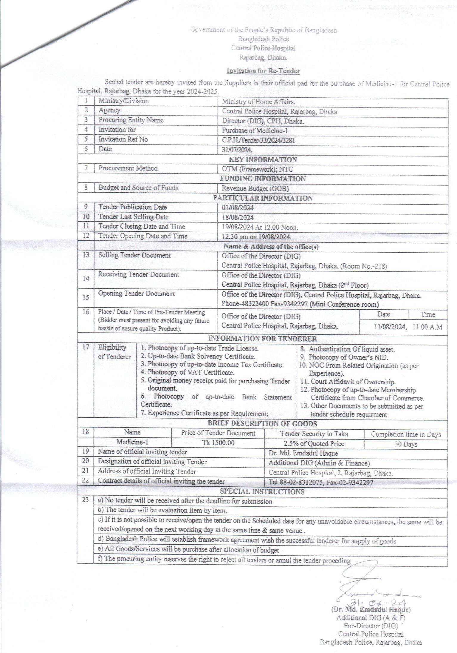 | 453 | Purchase of Medicine, (CPH, Dhaka) | 19-08-2024 | 19-08-2024 | View | Download |