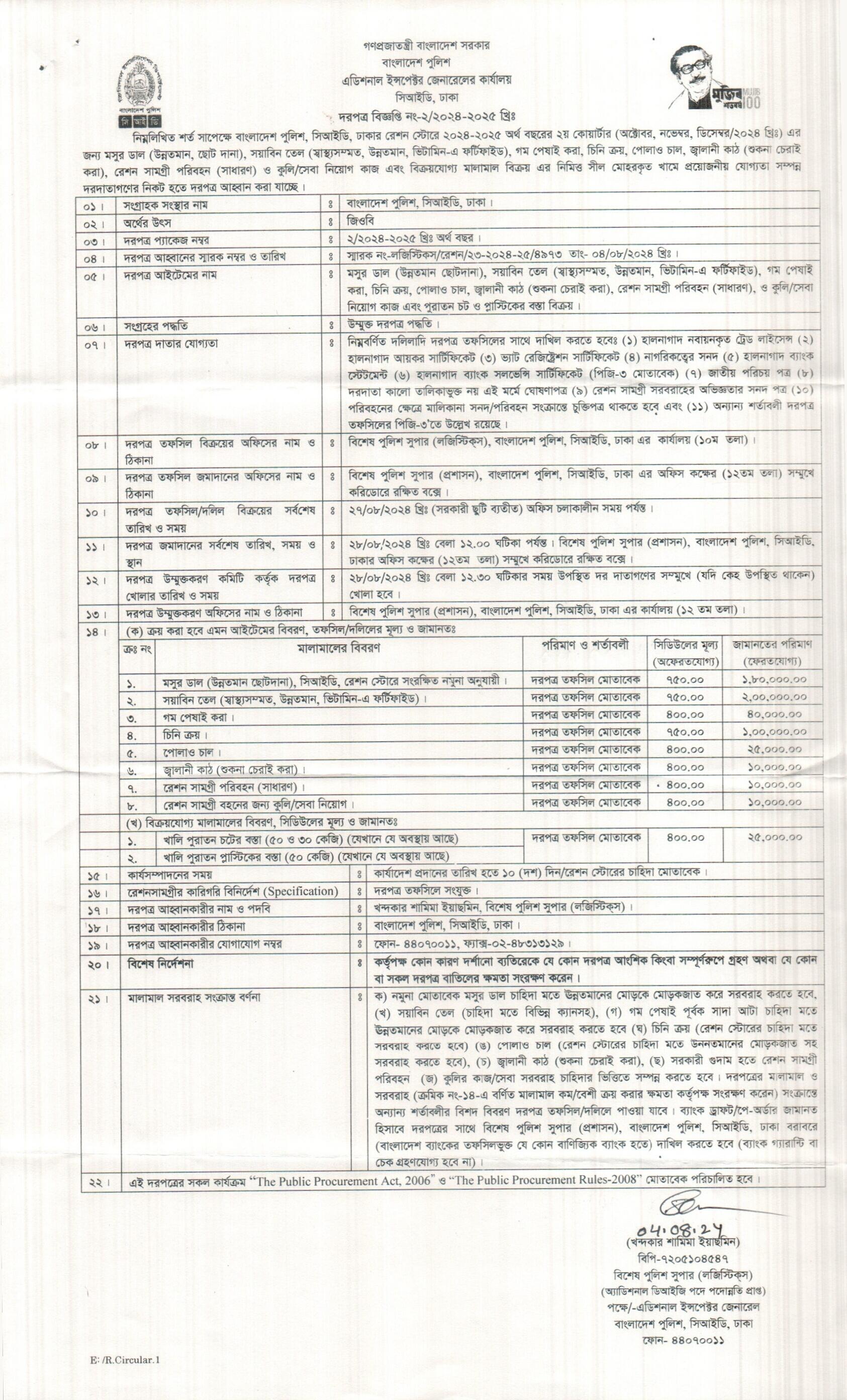| 452 | রেশন সামগ্রী সরবরাহ (CID, Dhaka) | 28-08-2024 | 28-08-2024 | View | Download |